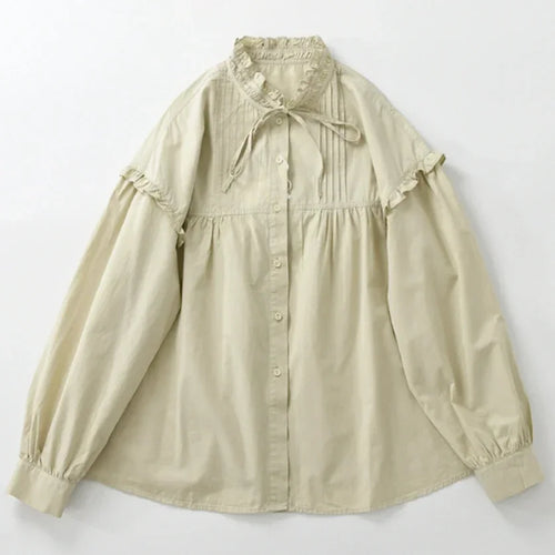 100% Cotton Vintage Elegant Chic Long Puff Sleeve Ruffled Collar Loose Blouse 2025 Fall Spring Sweet Victorian Edwardian Shirt