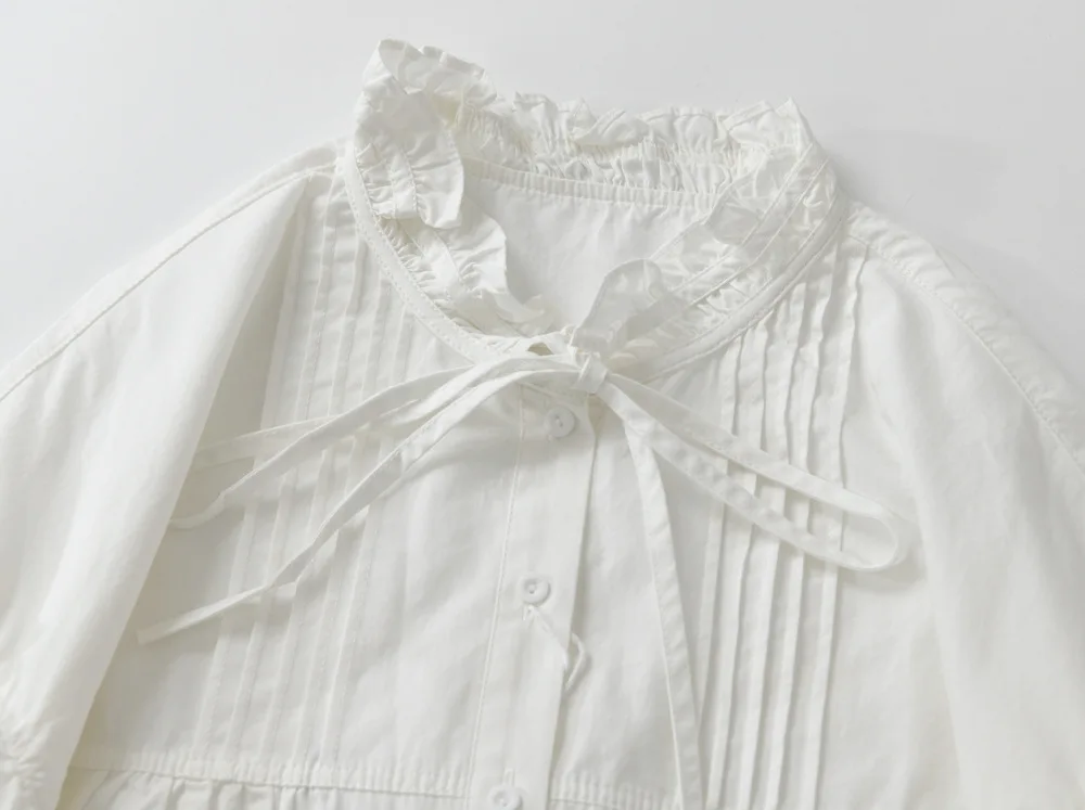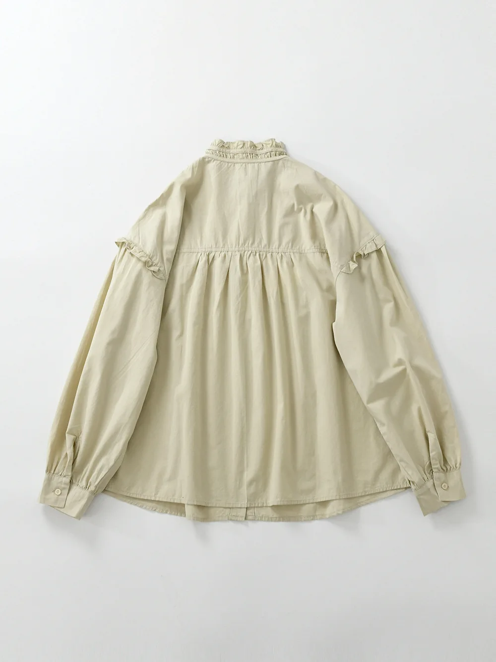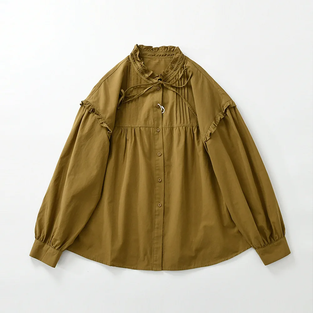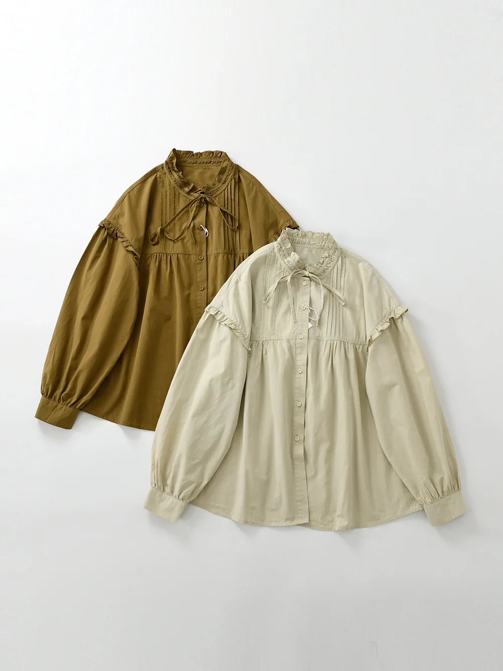 100% Cotton Vintage Elegant Chic Long Puff Sleeve Ruffled Collar Loose Blouse 2025 Fall Spring Sweet Victorian Edwardian Shirt
