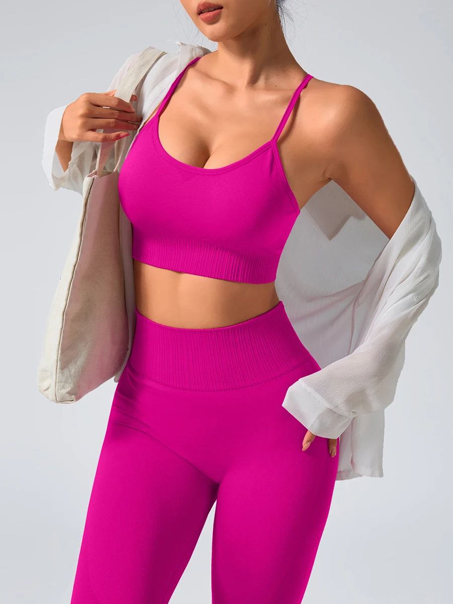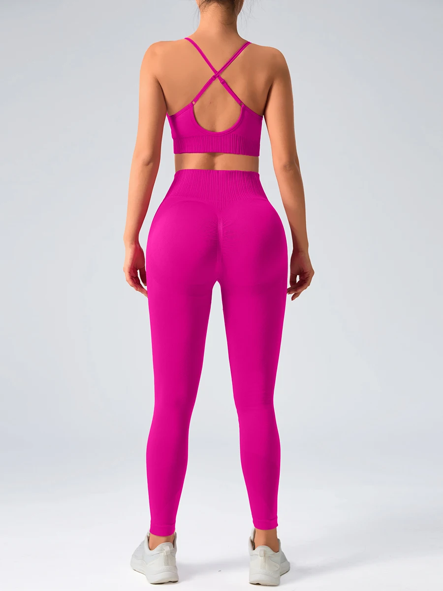 2 pcs/set Seamless Tight Pants Set Rose Red Tank Top Outfit Women's Clothing Breathable Trousers Athleisure Fitness Pants