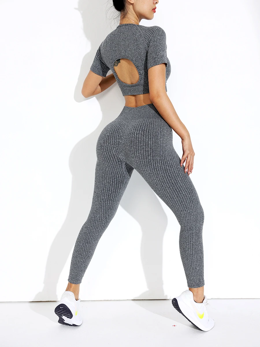 2 pcs/set Women T-shirt Leggings Set Sportswear Woman Gym Yoga Clothes Seamless Workout Outfit Women's Tracksuit Activewear