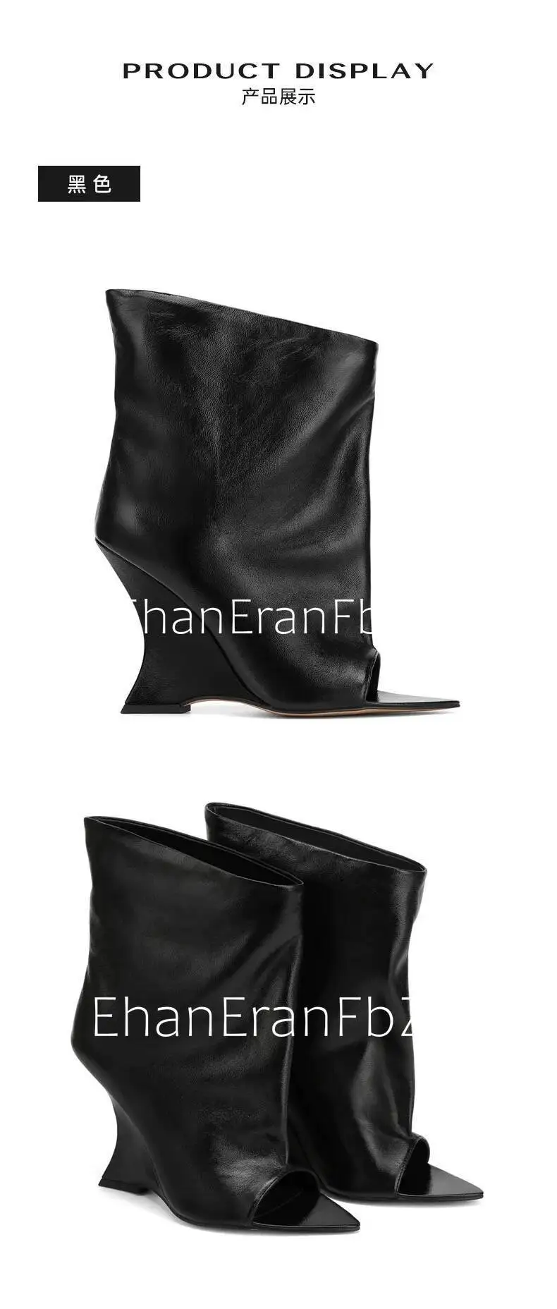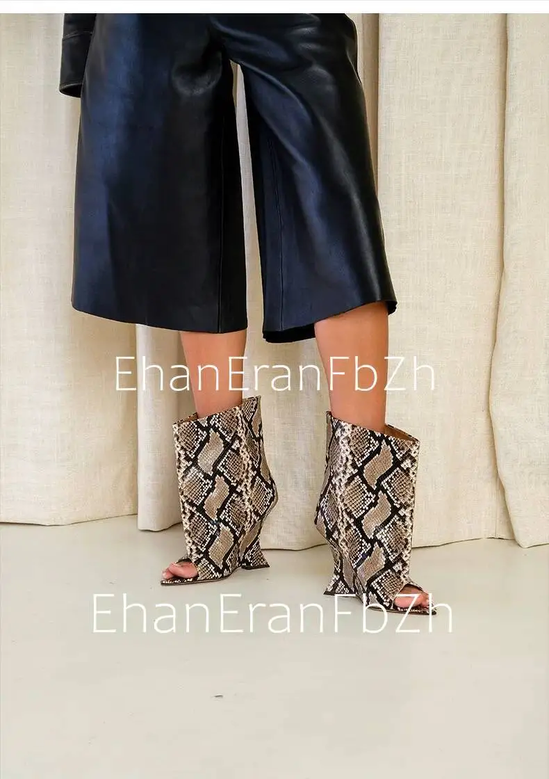 2026 SoleLadies' Spring/Summer New Fish Mouth Slope High Heel Short Boots with Pointed Toe Exposed Cool Boots, Mid Top Boots