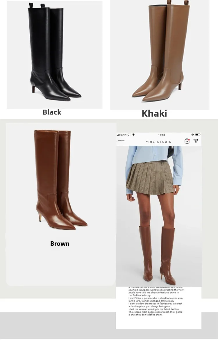 2026 Autumn and Winter New Pointed Stiletto High Heels Knee Length Women's Boots Fashion Versatile 34-46 Large Women's Boots