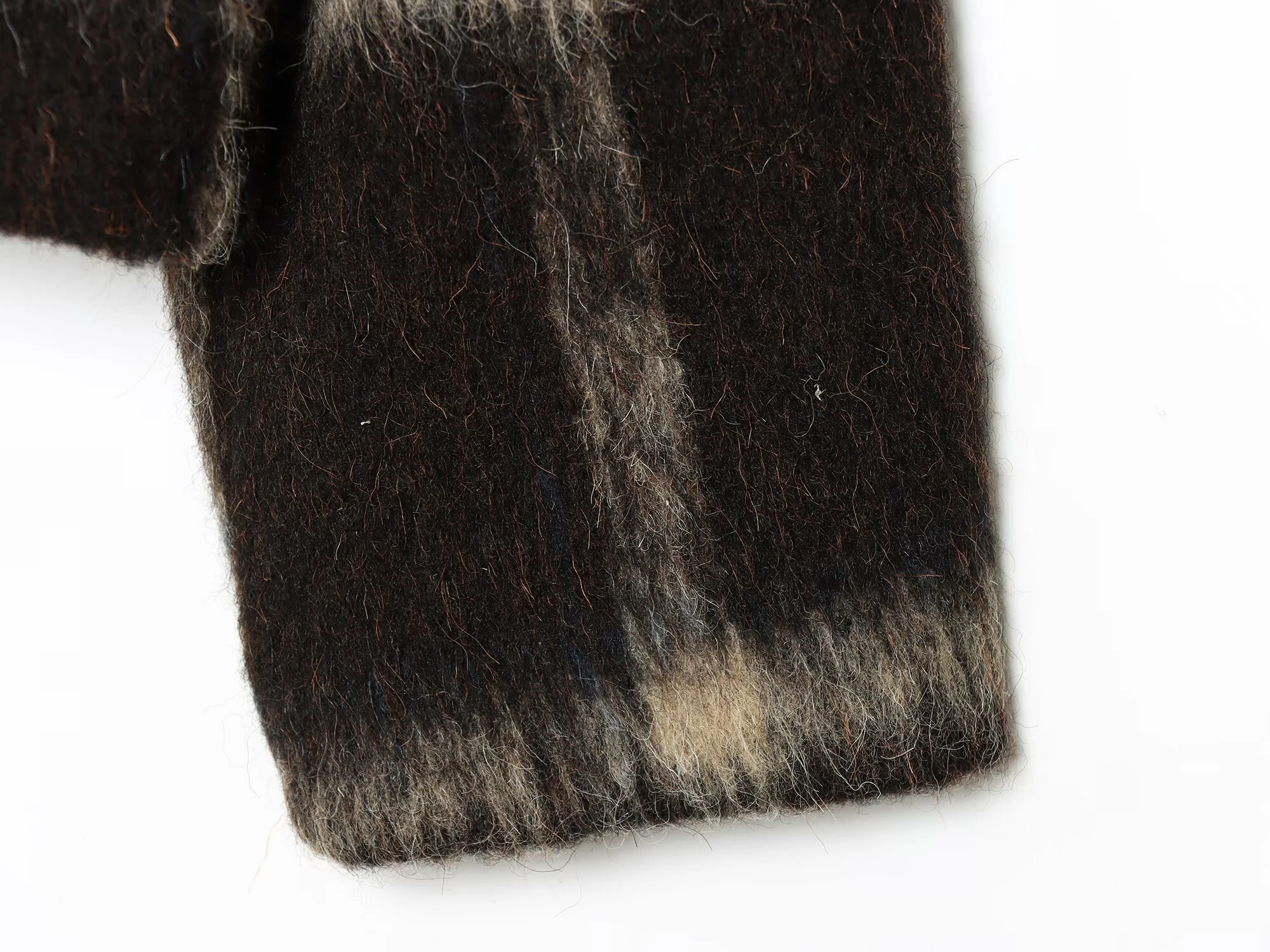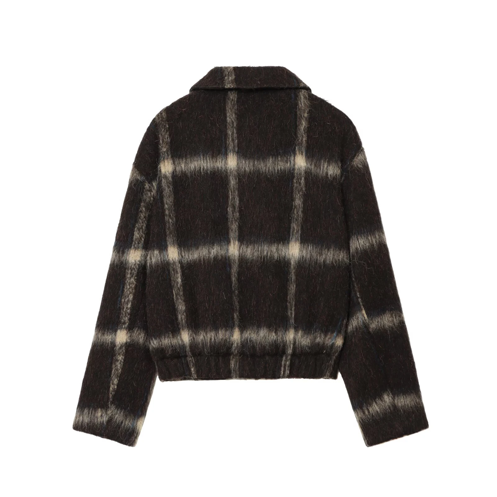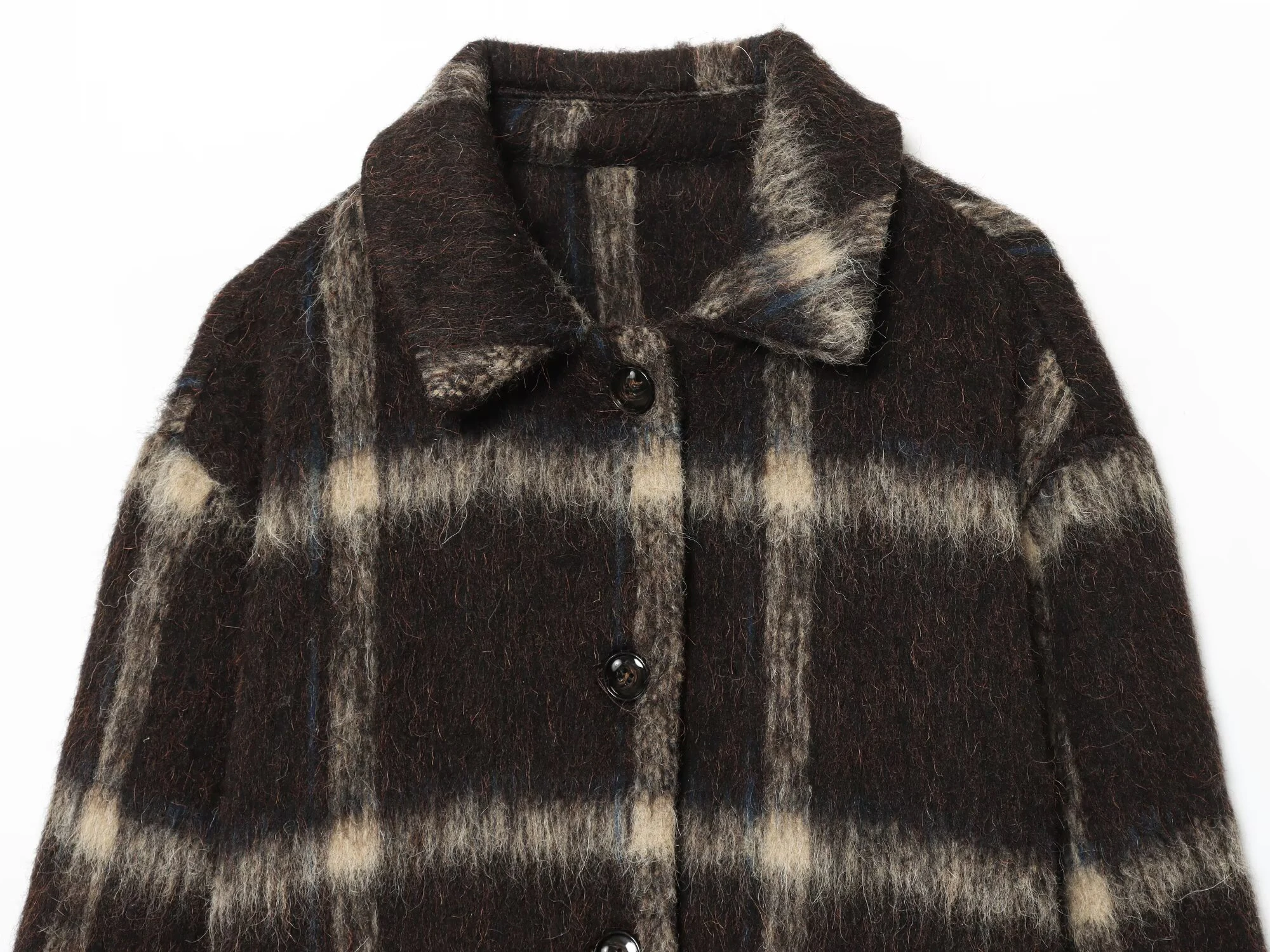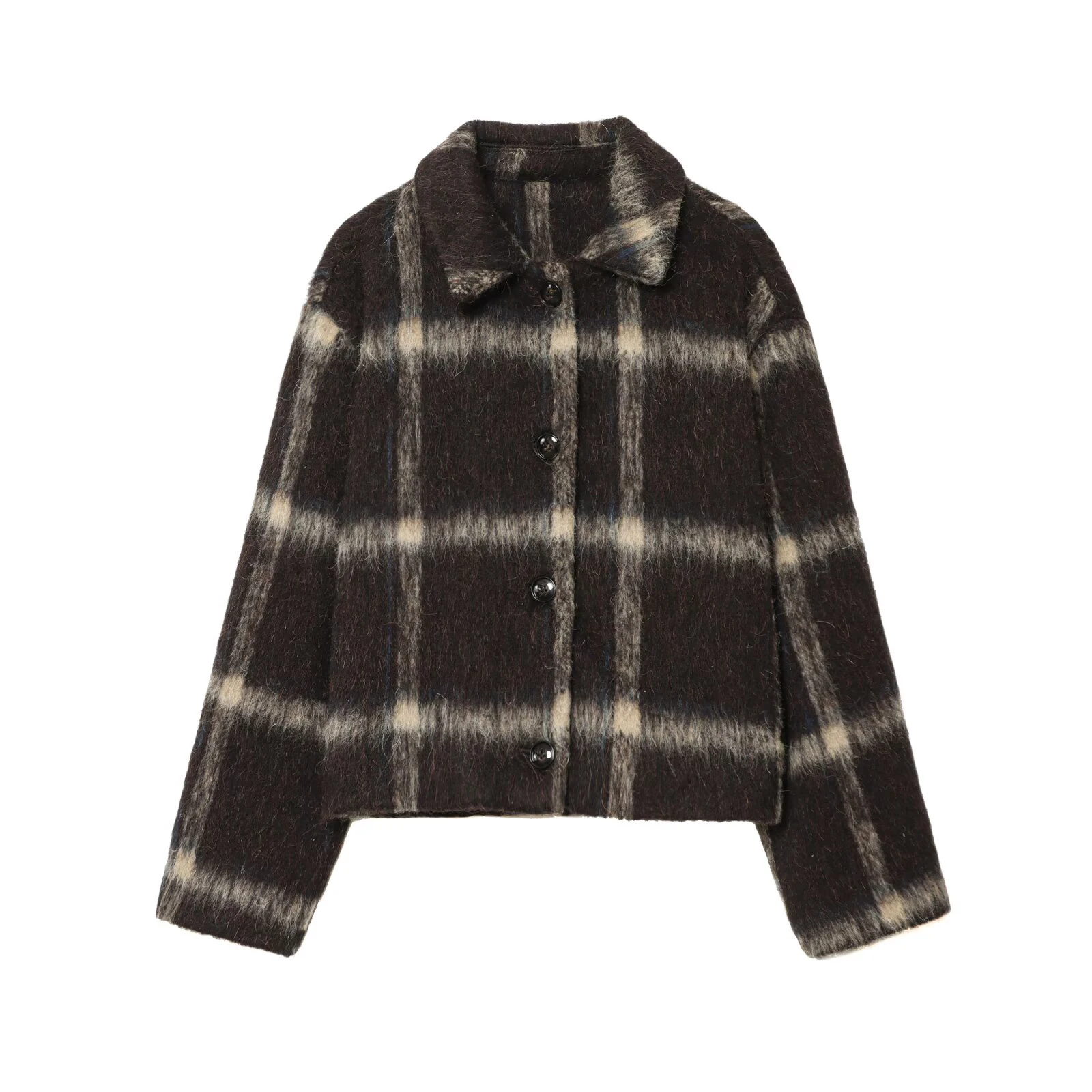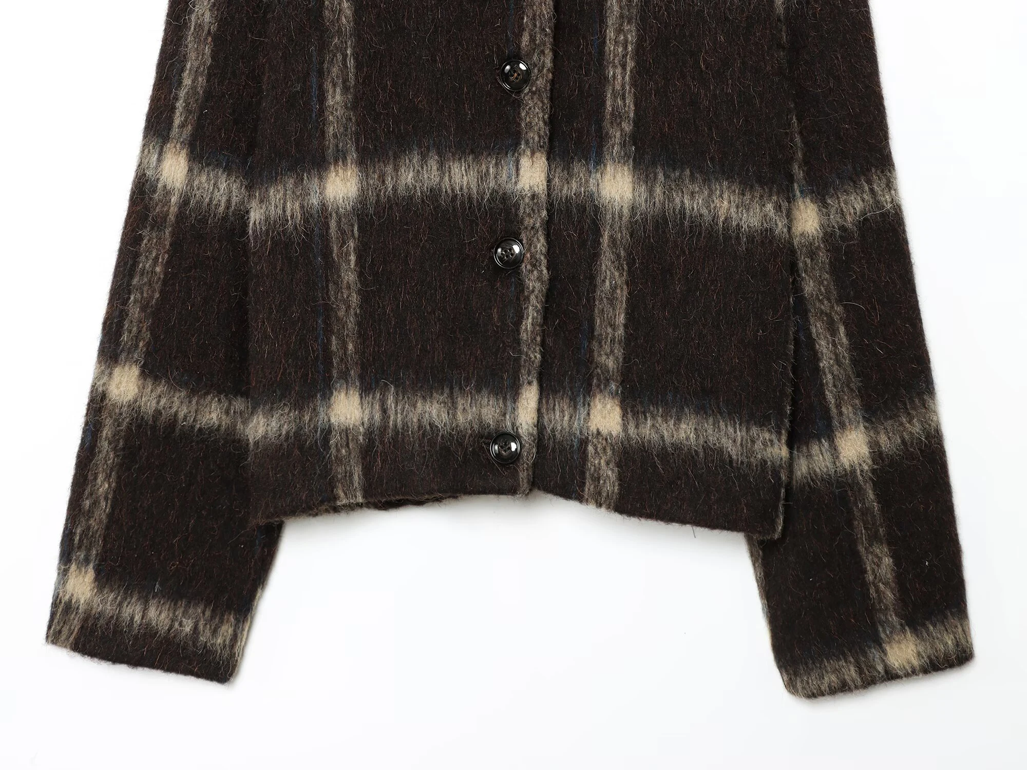 2025 Autumn New Product Women's Clothing High end Retro Lazy Style Pocket Hairy Plaid Jacket Jacket
