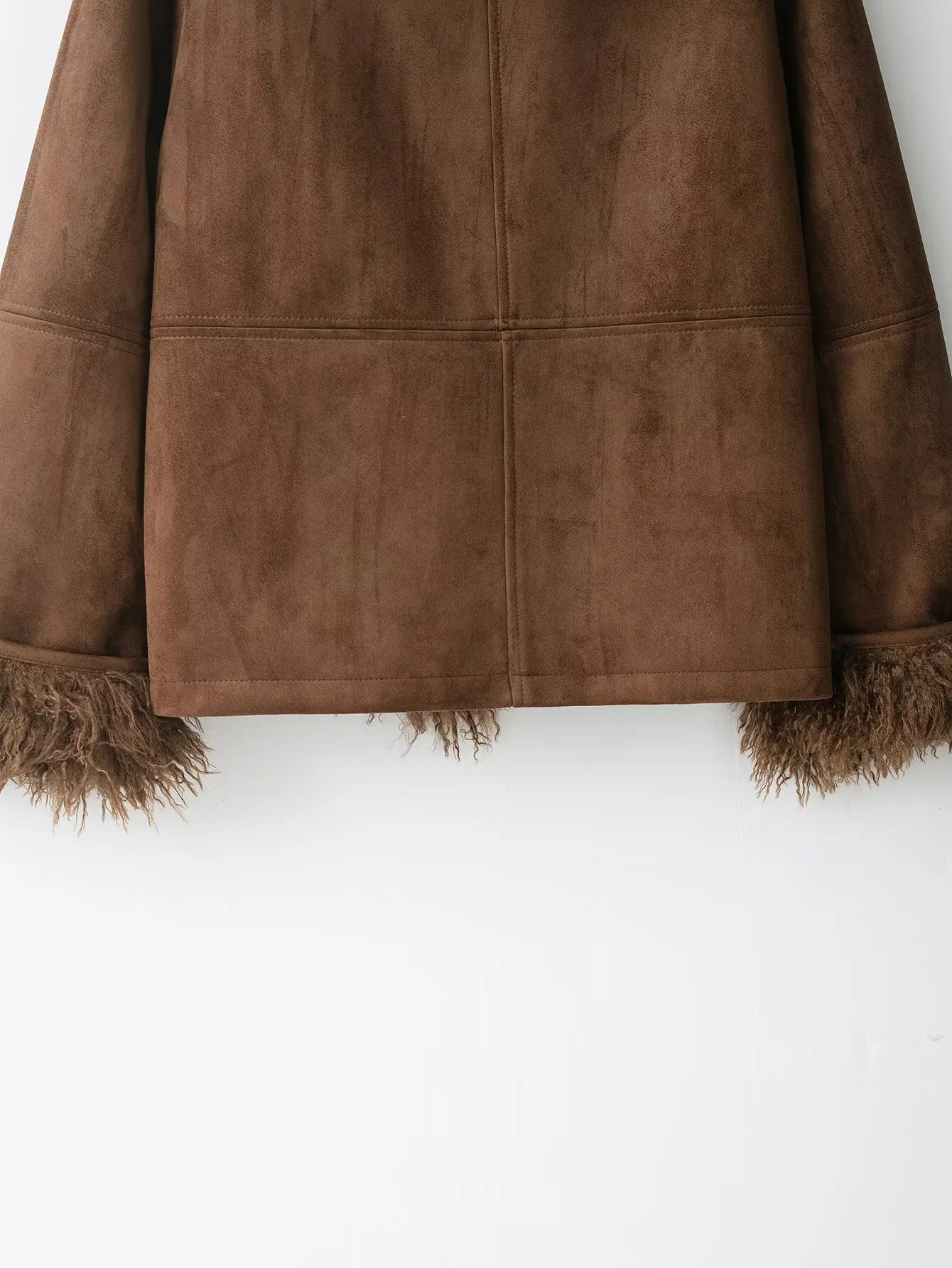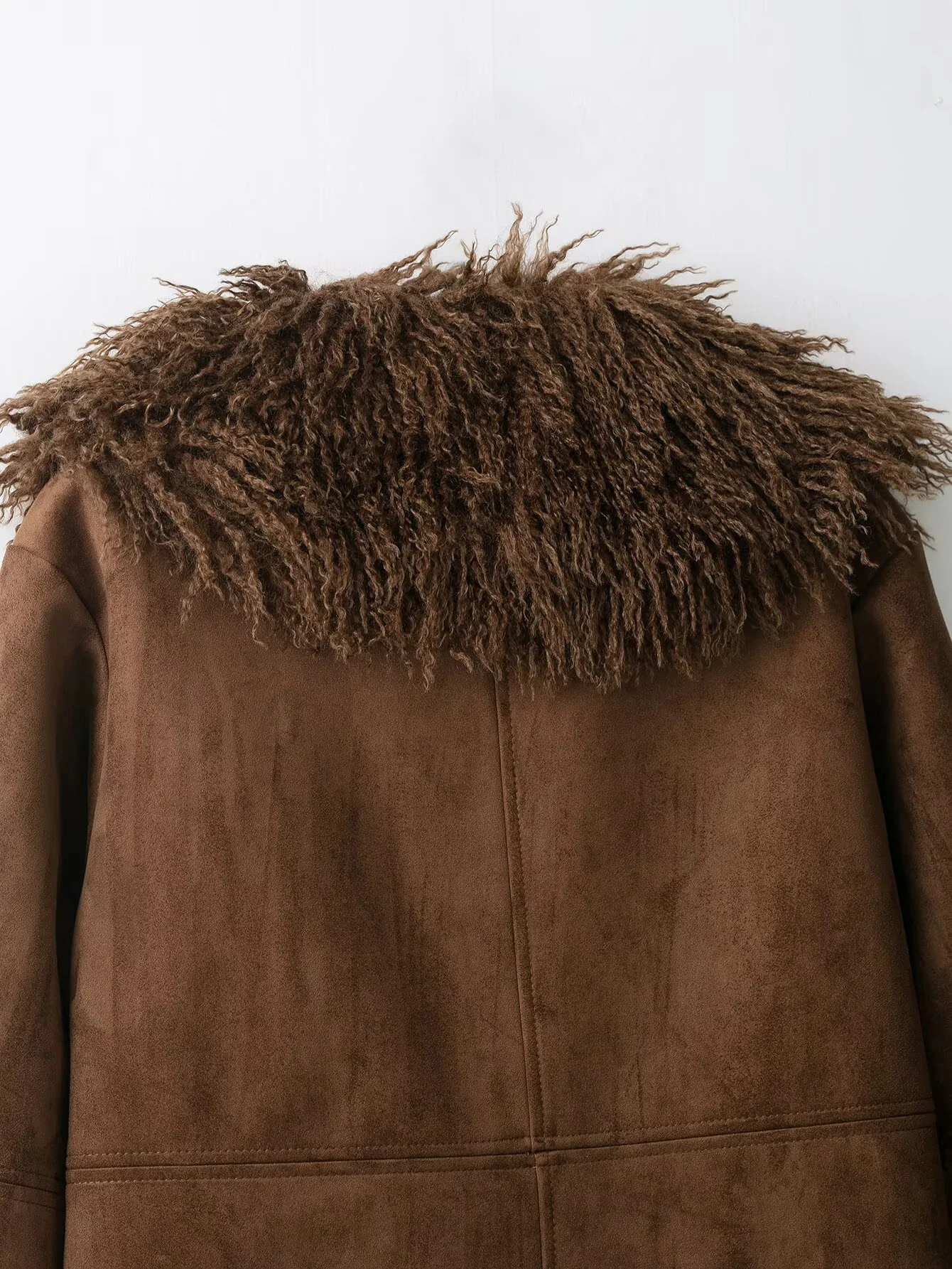 2025 Autumn New Product Women's Wear Melad Brown Double sided Artificial Fur Effect Jacket Coat
