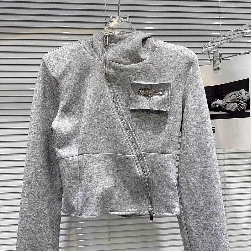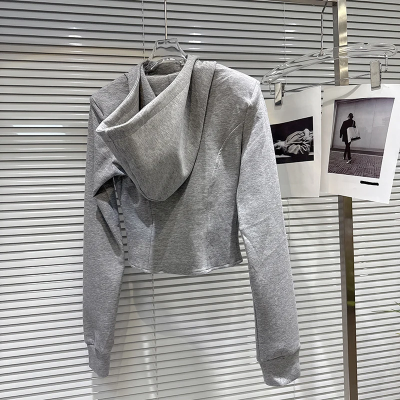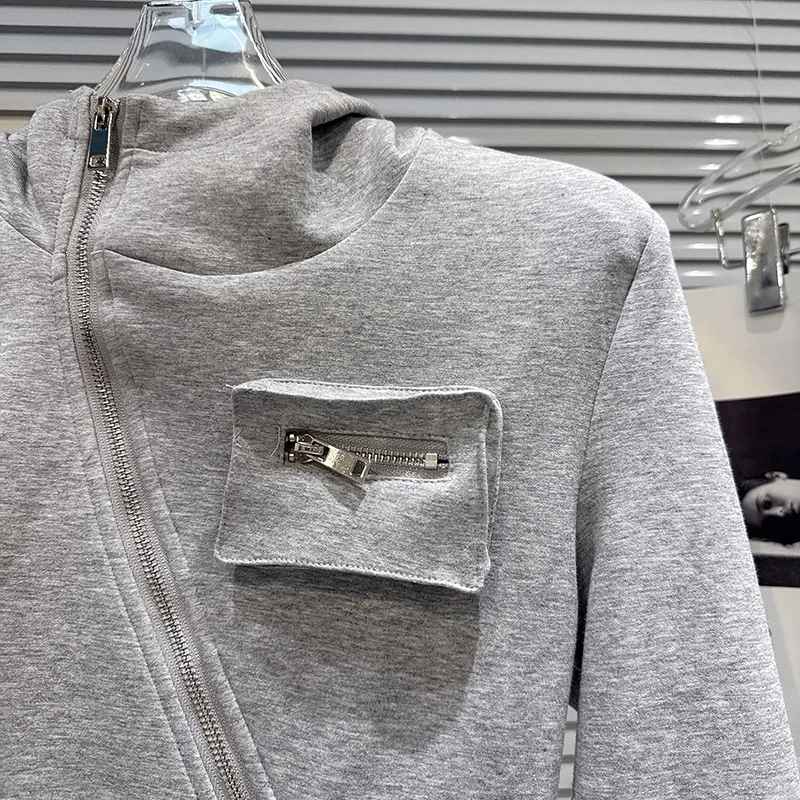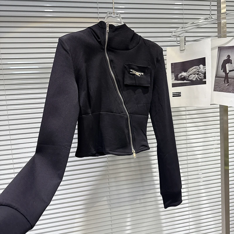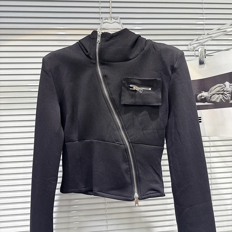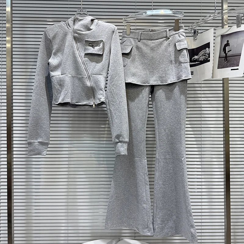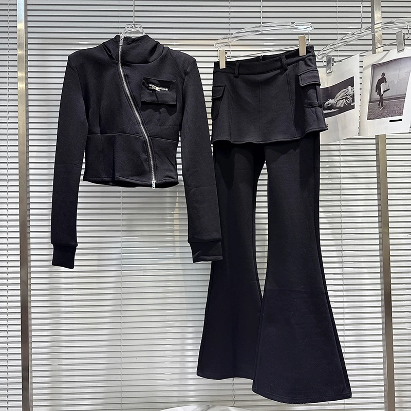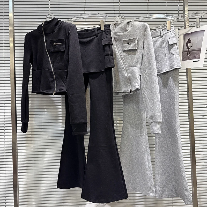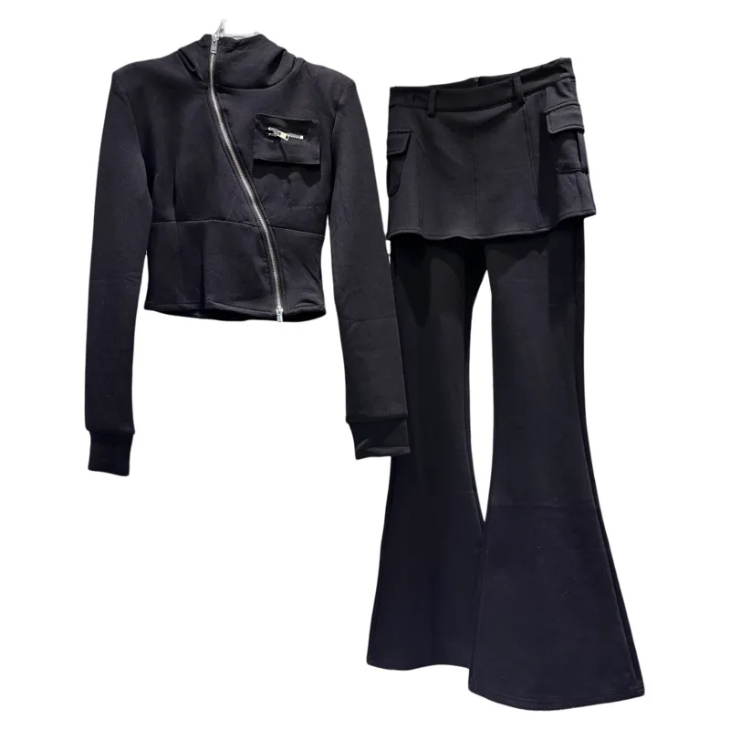 2025 Autumn New Women's Two-pieces Set Diagonal Zipper Hooded Sweatshirt Slim Fit Flared Pants Female Trendy 11A06593