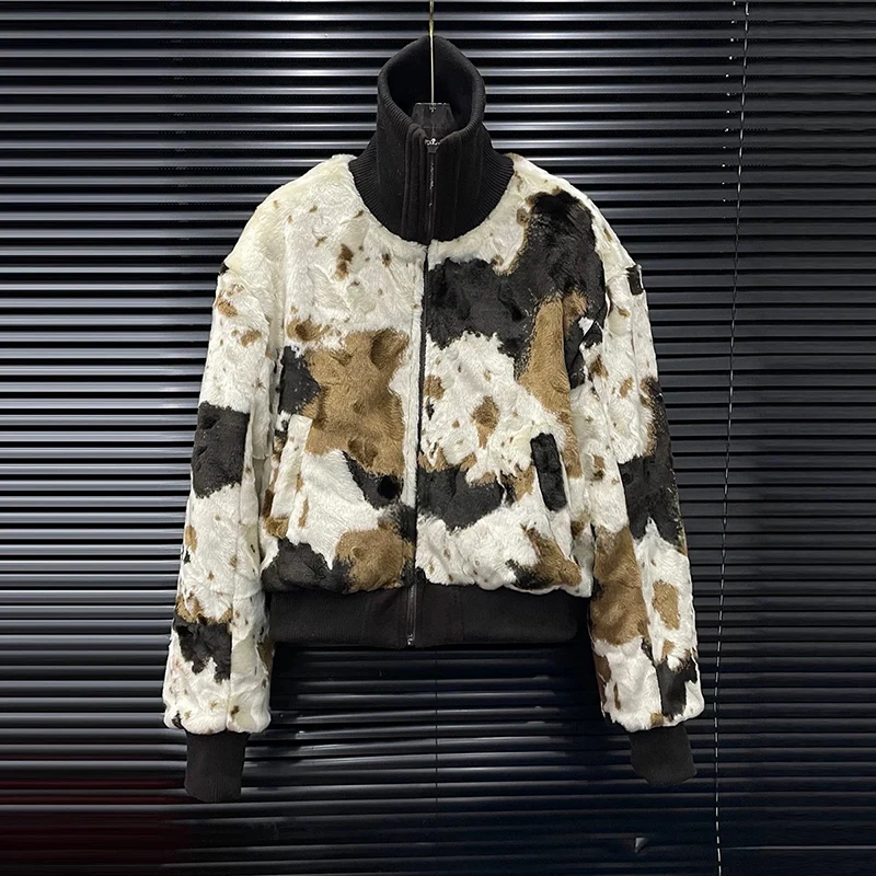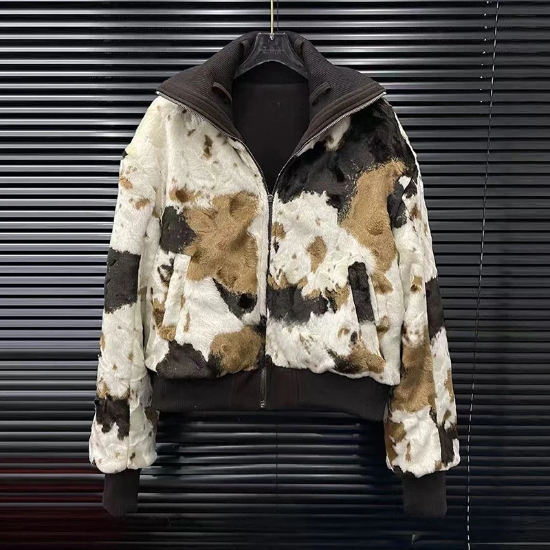 2026 Autumn Winter New Plush Reversible Wool Coat For Women Warm Fashion Print Stand Collar Short Jacket Female 1A1609