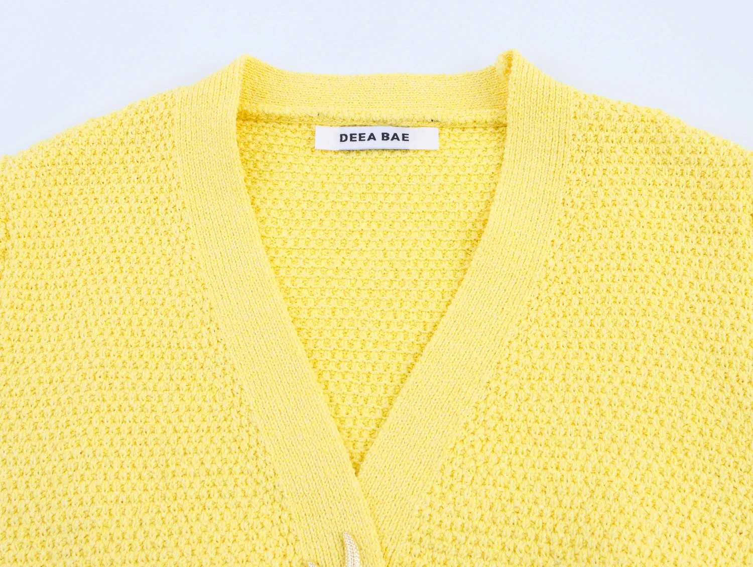 2025 Summer New Women's Clothing Japanese Style Simple Sweet Versatile V-neck Solid Color Knitted Cardigan Top