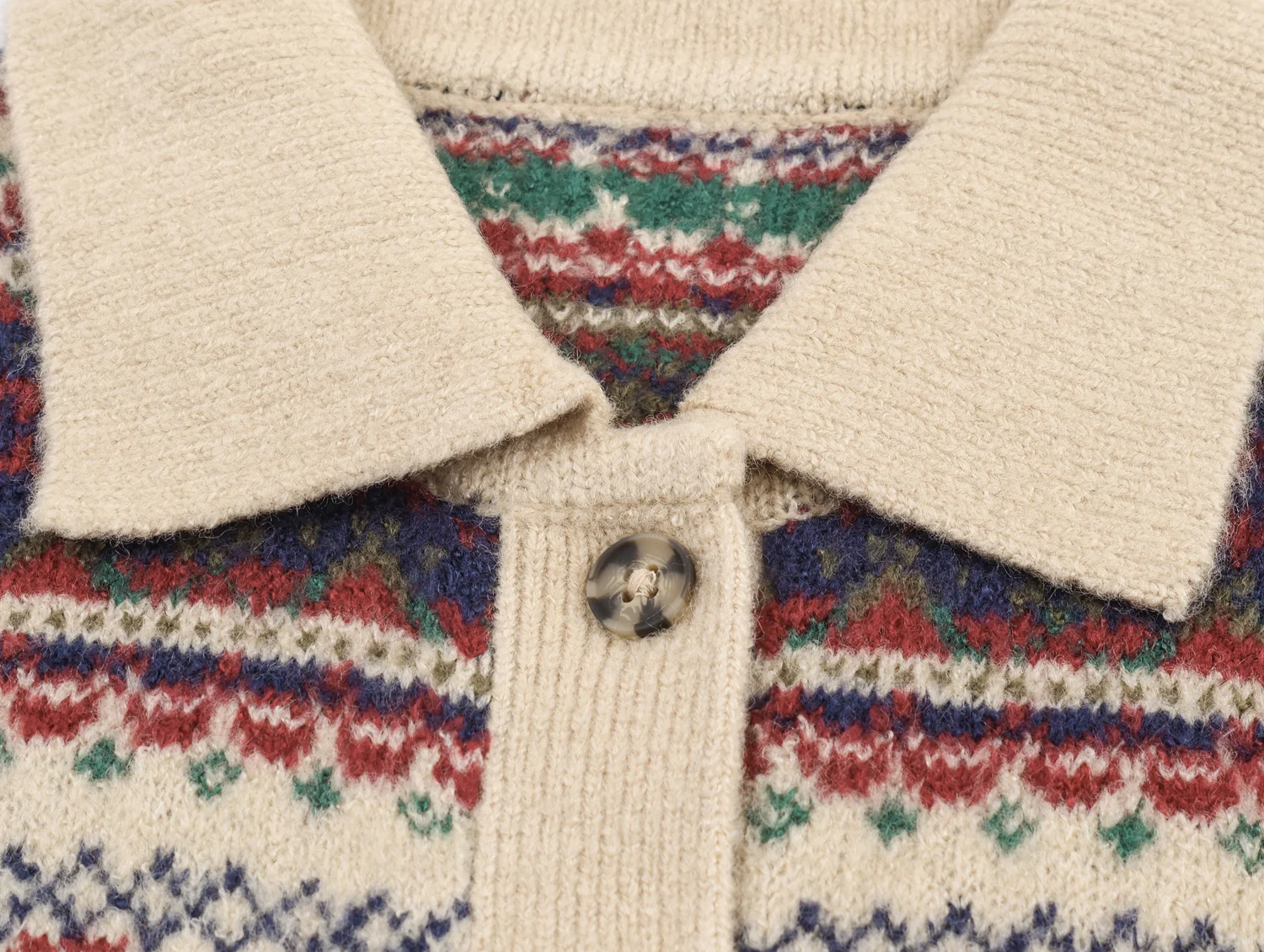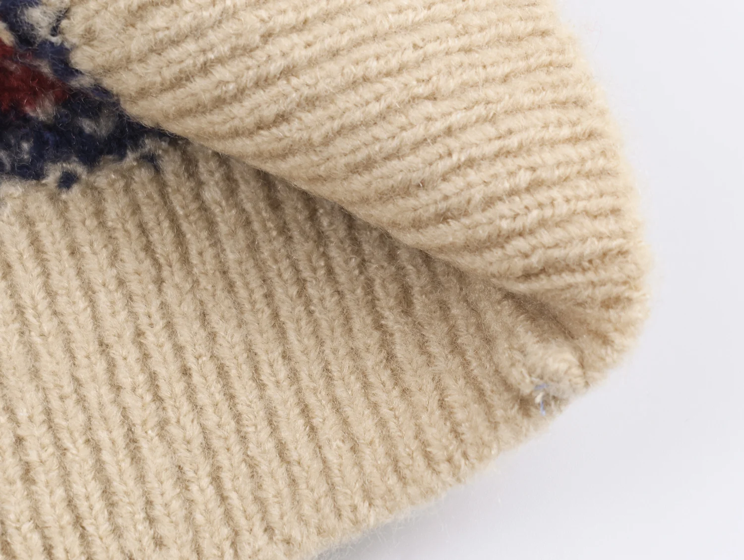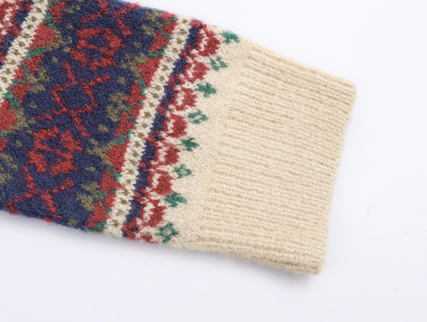 2025 Winter New Arrivals Women's Sweet Loose Crewneck Colorblocked Jacquard Knit Sweater Jacket Pullover