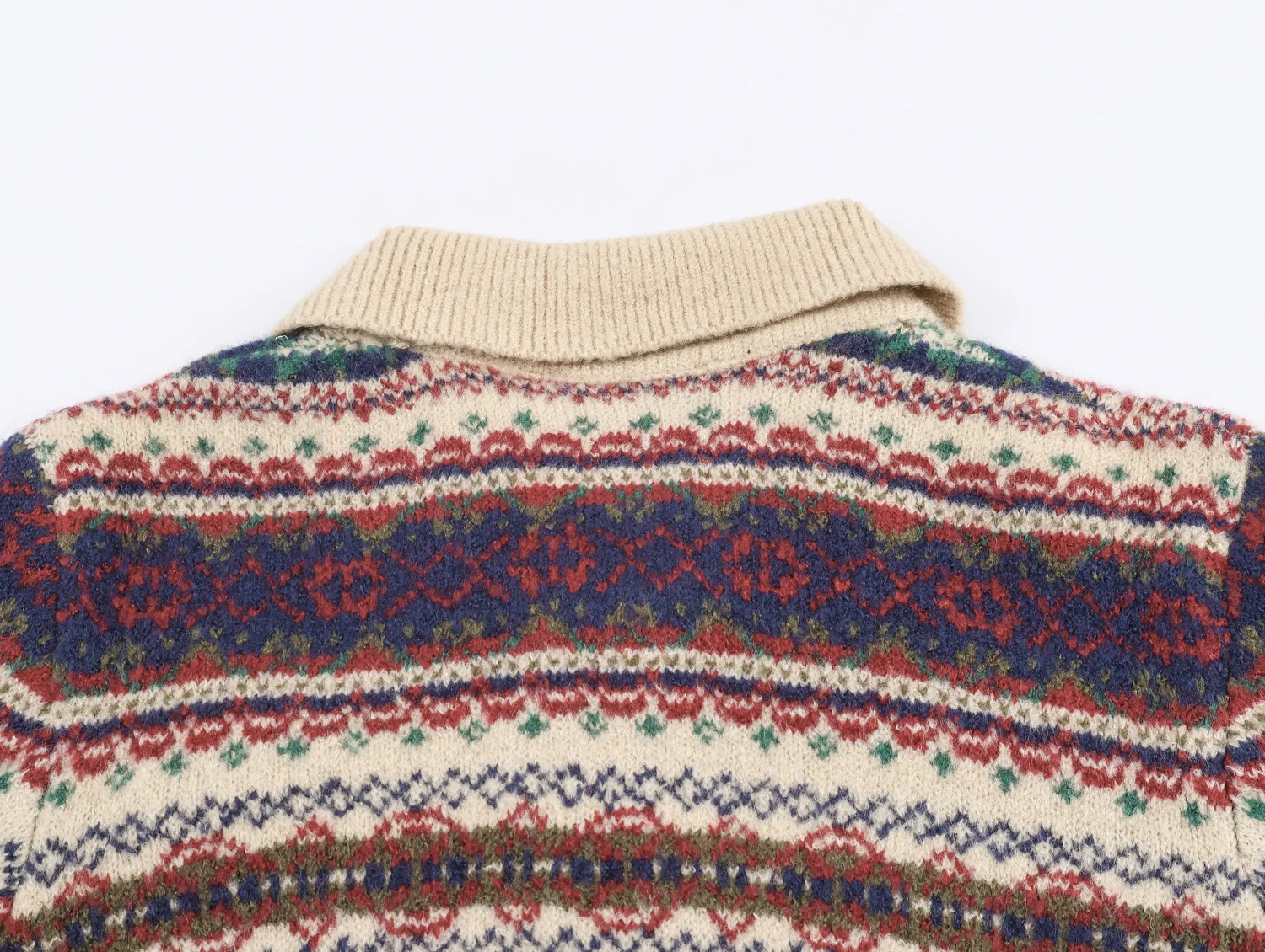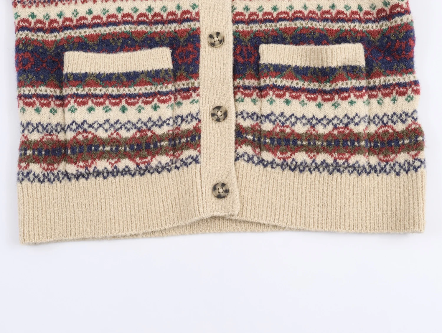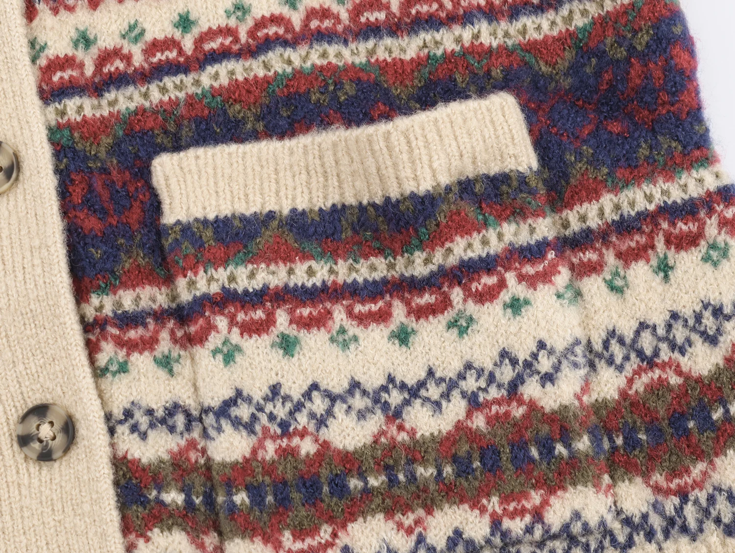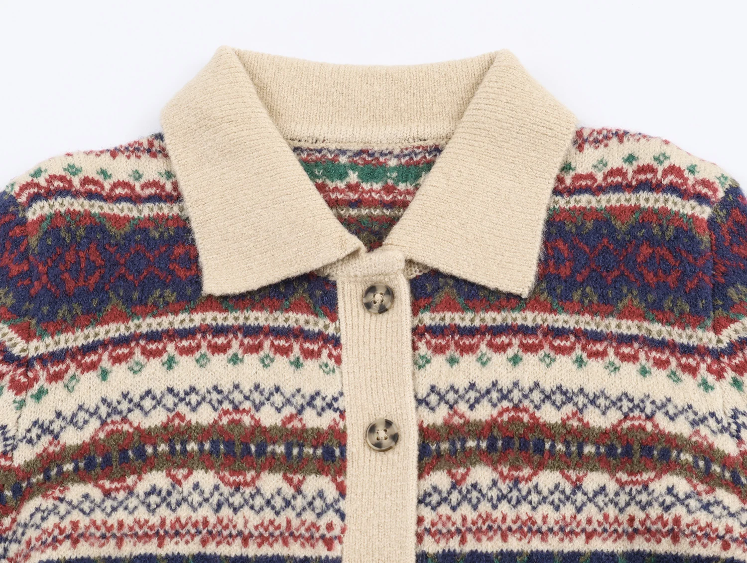 2025 Winter New Arrivals Women's Sweet Loose Crewneck Colorblocked Jacquard Knit Sweater Jacket Pullover