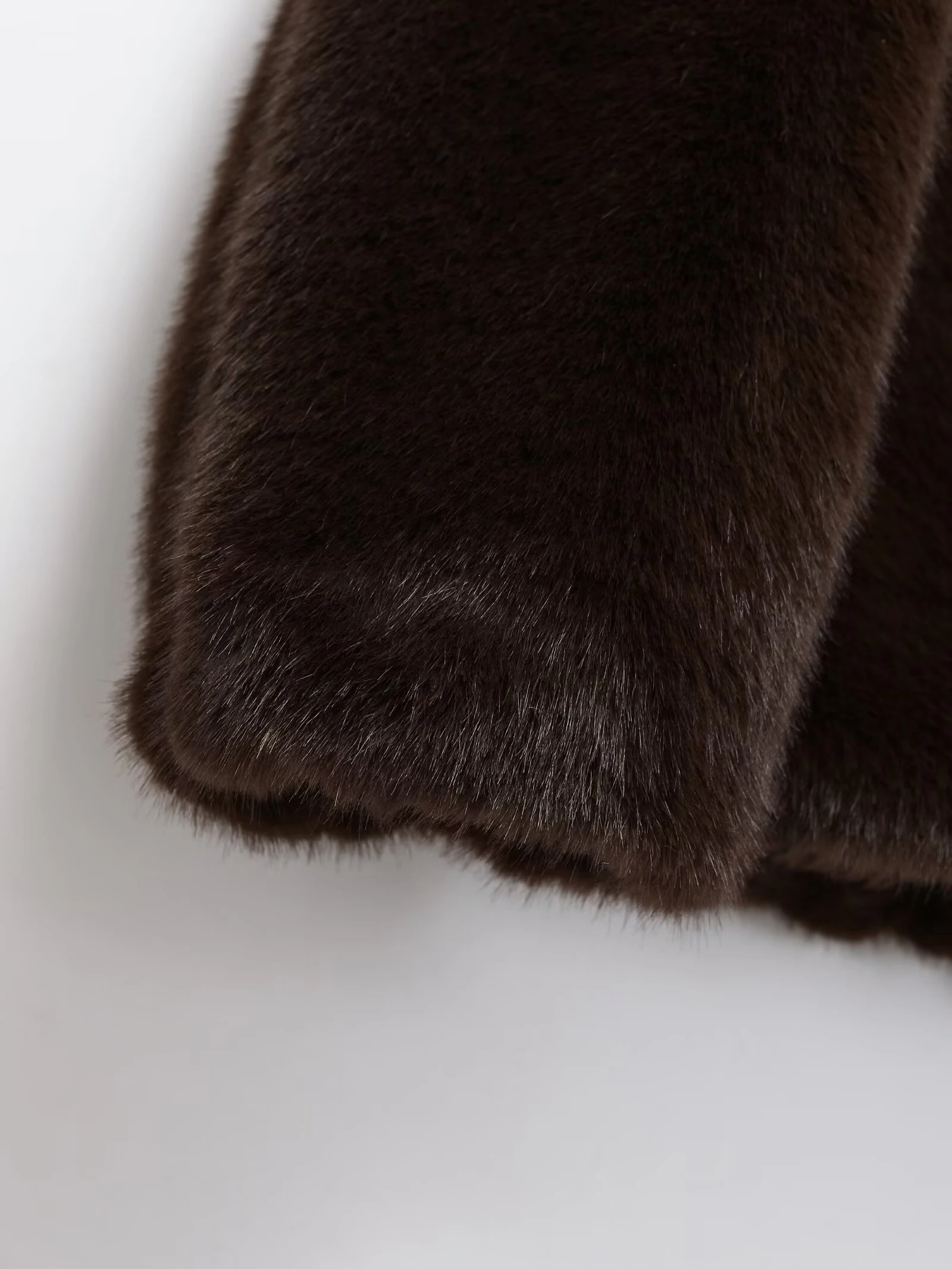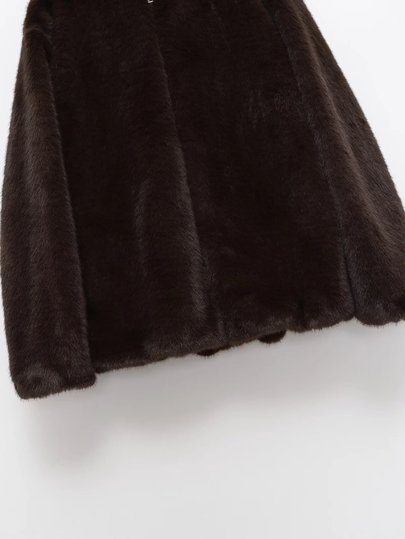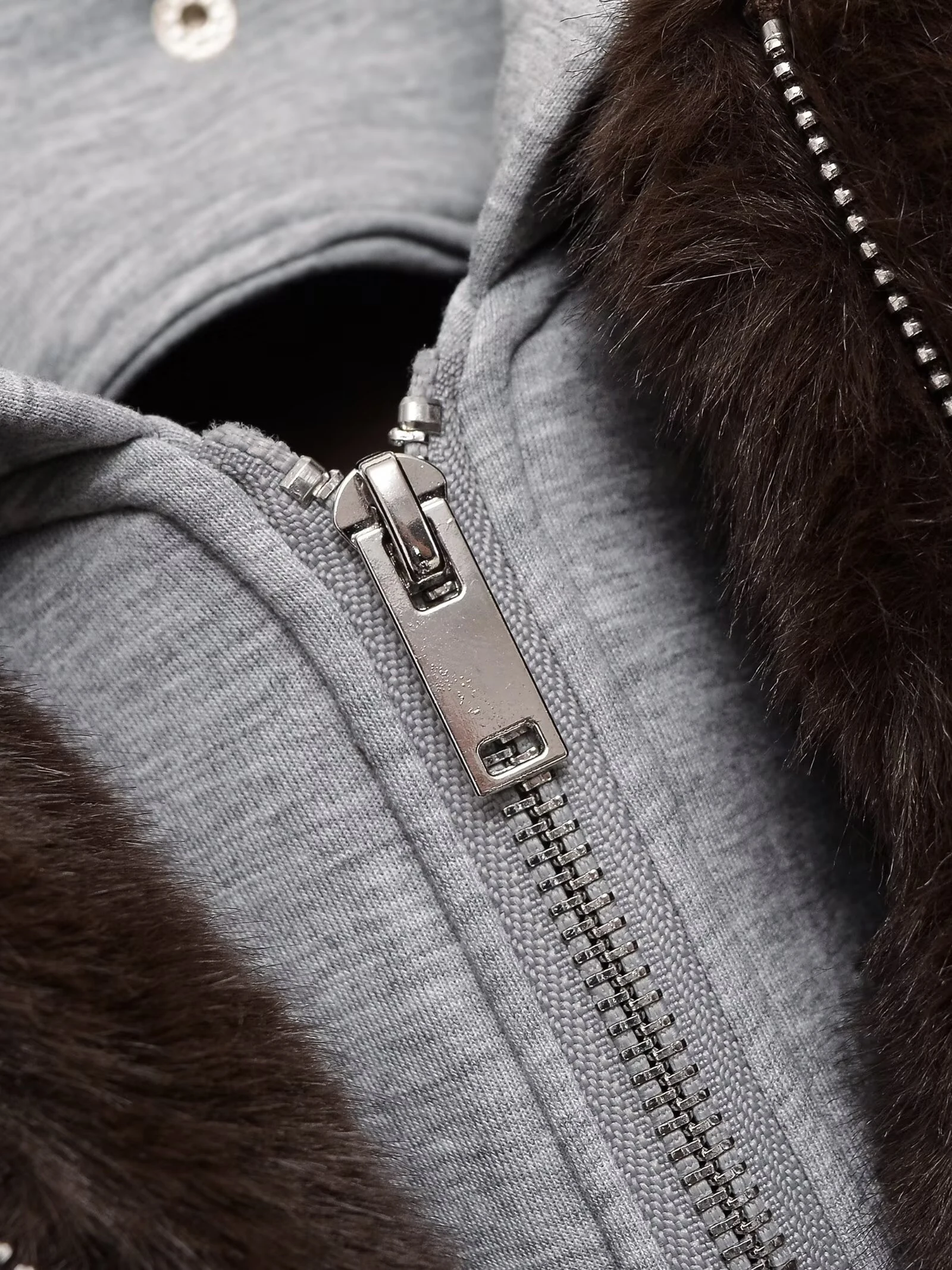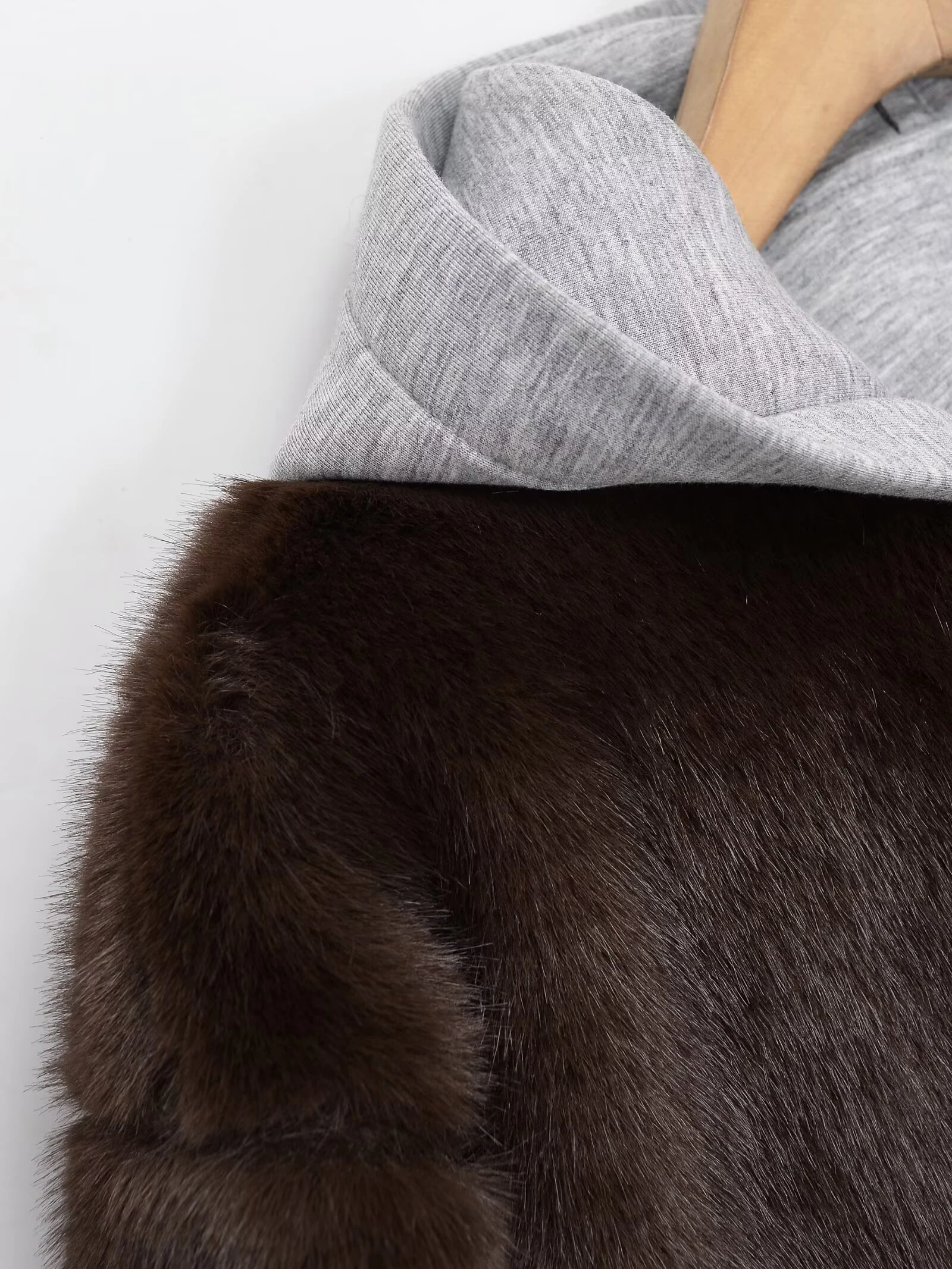2025 Winter New Fashionable Sweet Loose Splicing Artificial Fur Zipper Hooded Jacket for Women
