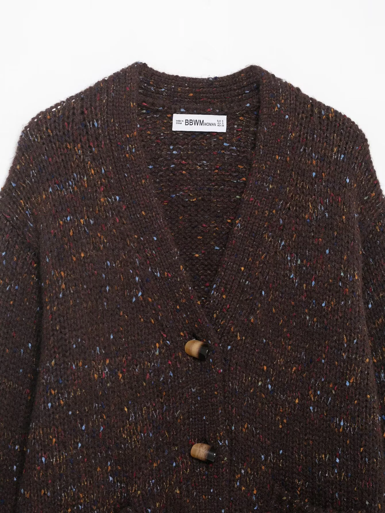 2025 Winter New Sweet and Lazy Style V-neck Long Sleeve Small Dot Knitted Loose cardigan Coat for Women