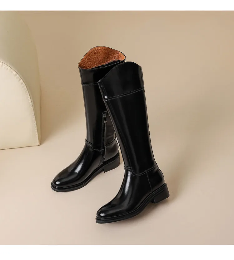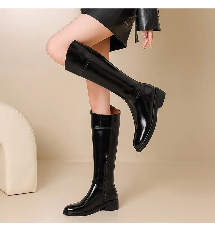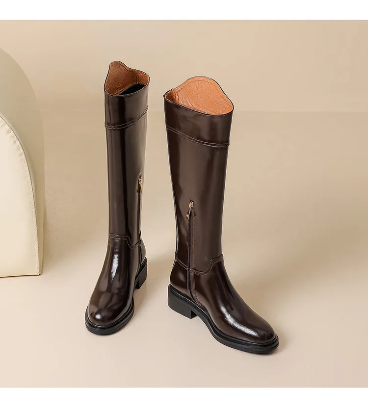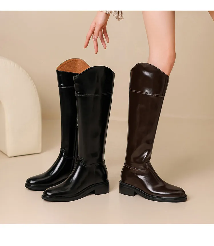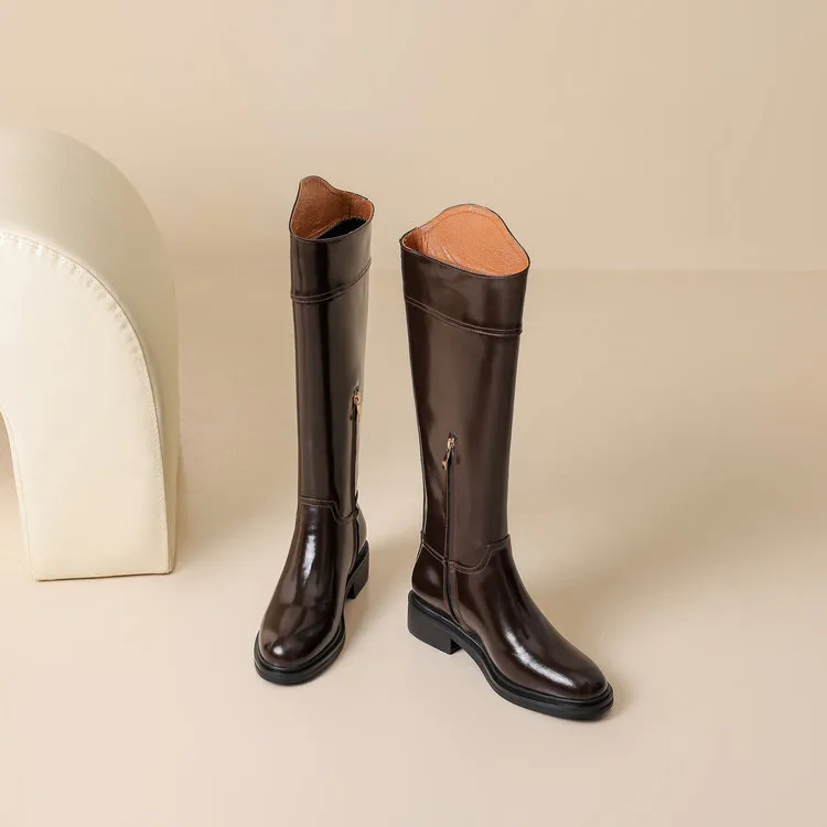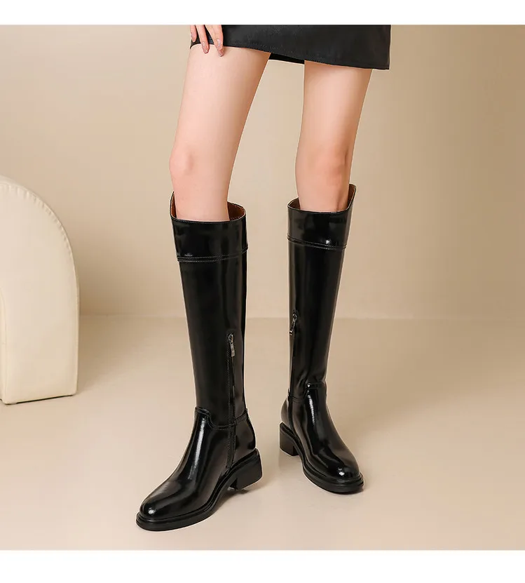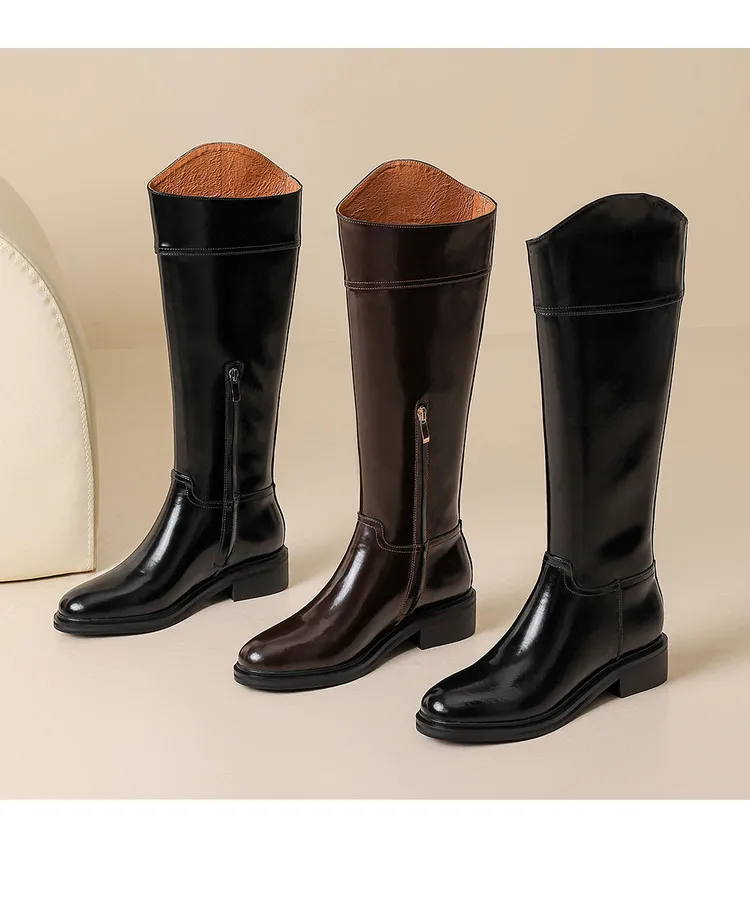 2026 Ladies' Autumn and Winter Flat Knee High Women's Boots with Round Toe, Low Heel, and Midsole, Ladies' Oversized Knight Boots