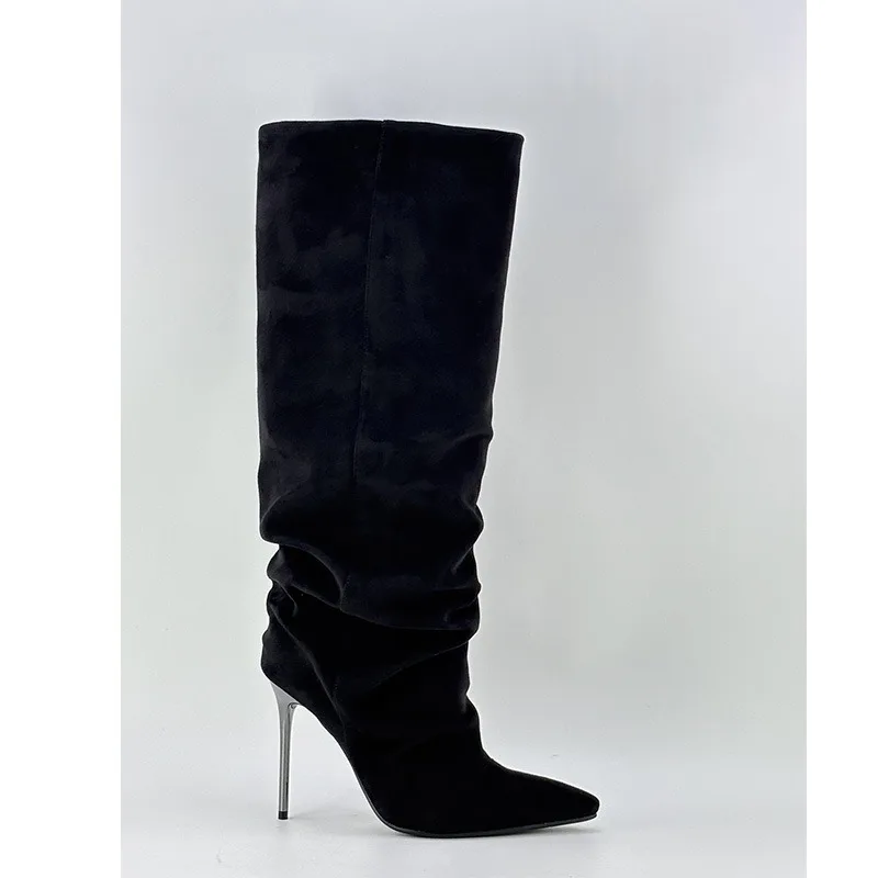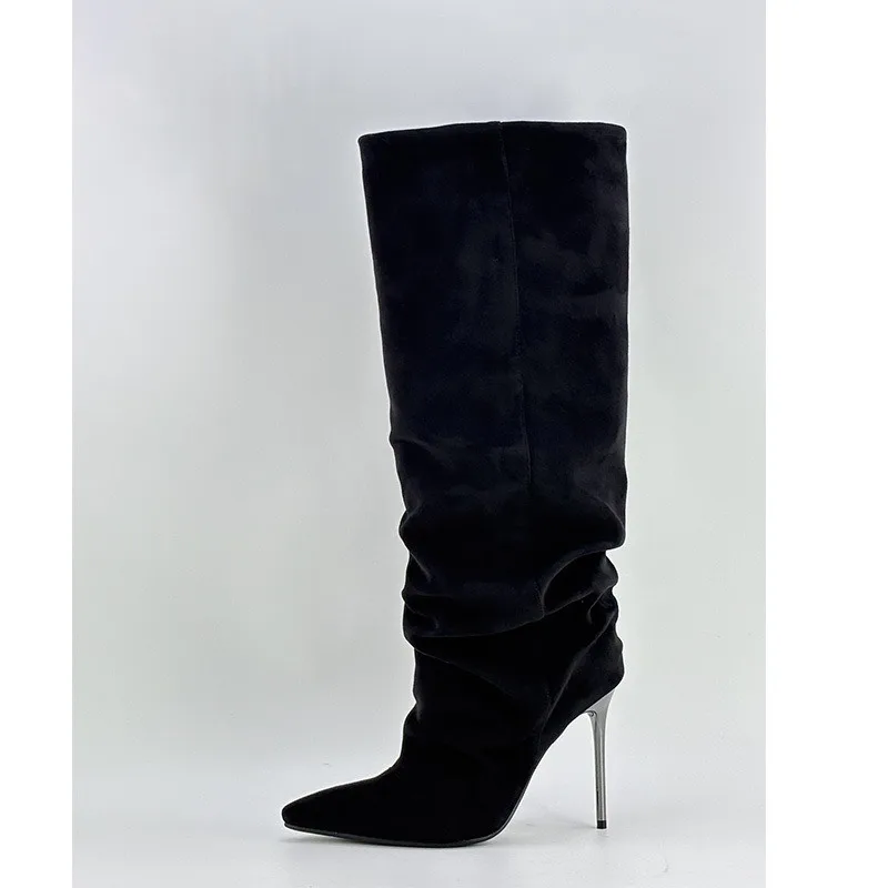 Ladies' Spring and Autumn New High Heels, Knee Length Boots, Side Zipper Folding High Barrel Fashion Large Women's Boots