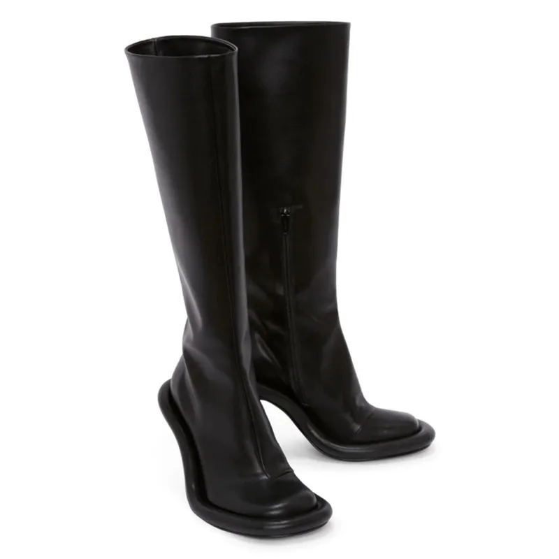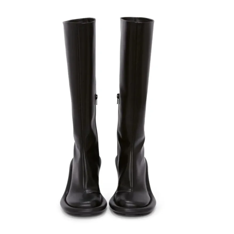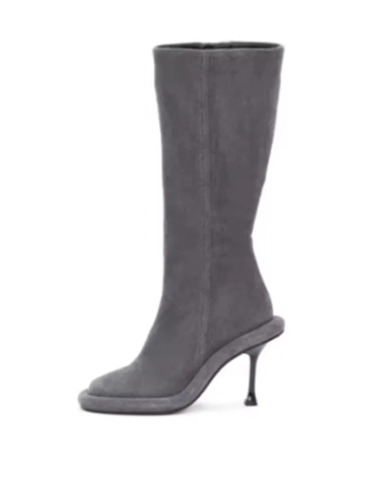 2026 Women's New Slim High-heeled Knee High Boots with Side Zipper Round Toe 34-43 Large Mid Length Boots