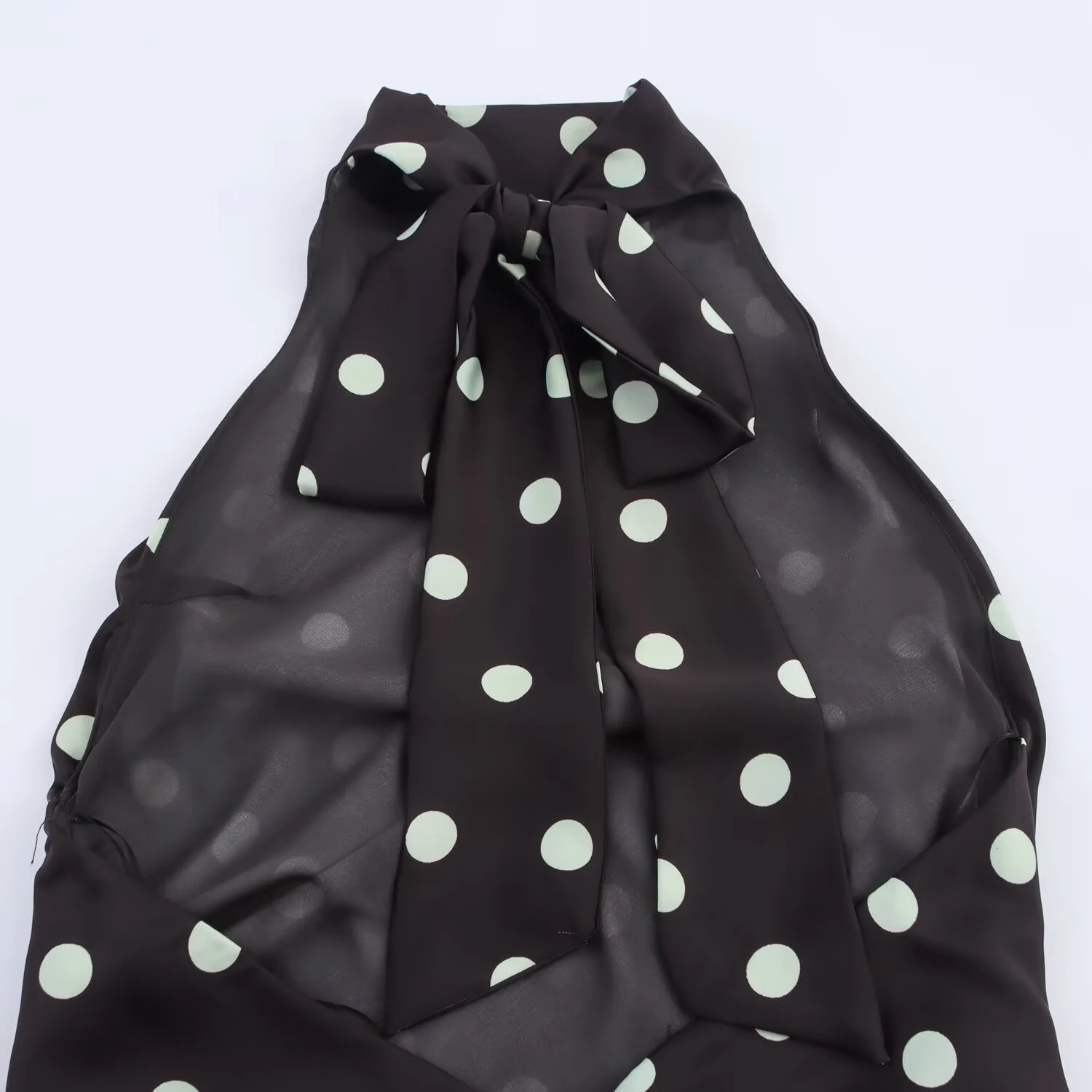 2026 Autumn New Romantic Vacation Storm Point Printed Neck Hanging Collar Bareback Sleeveless Dress