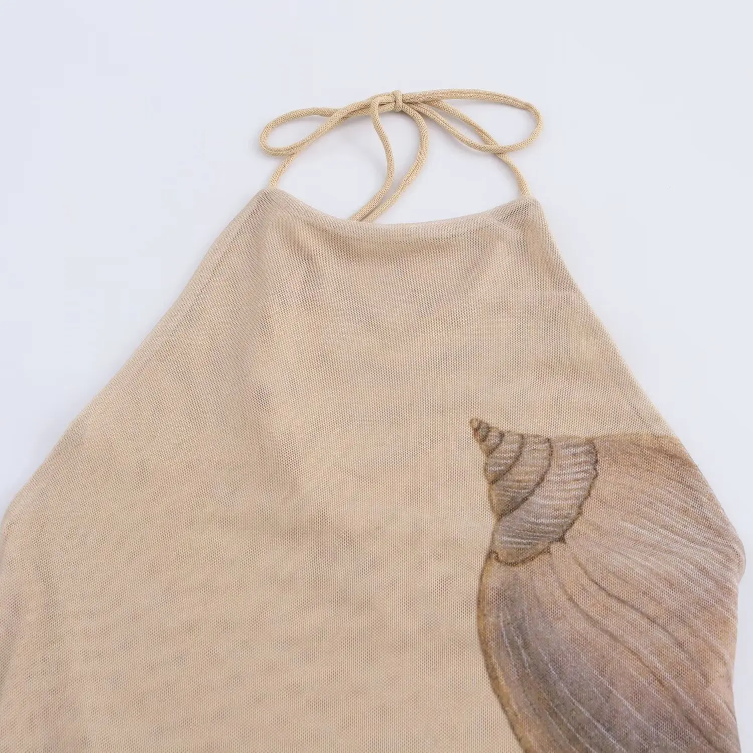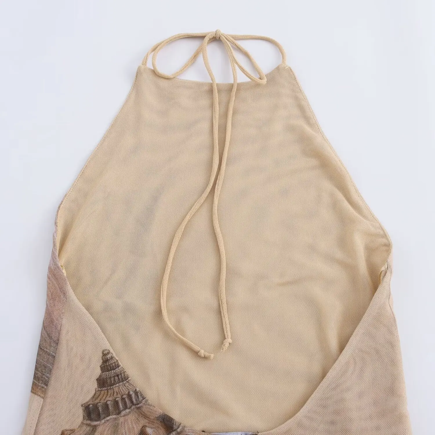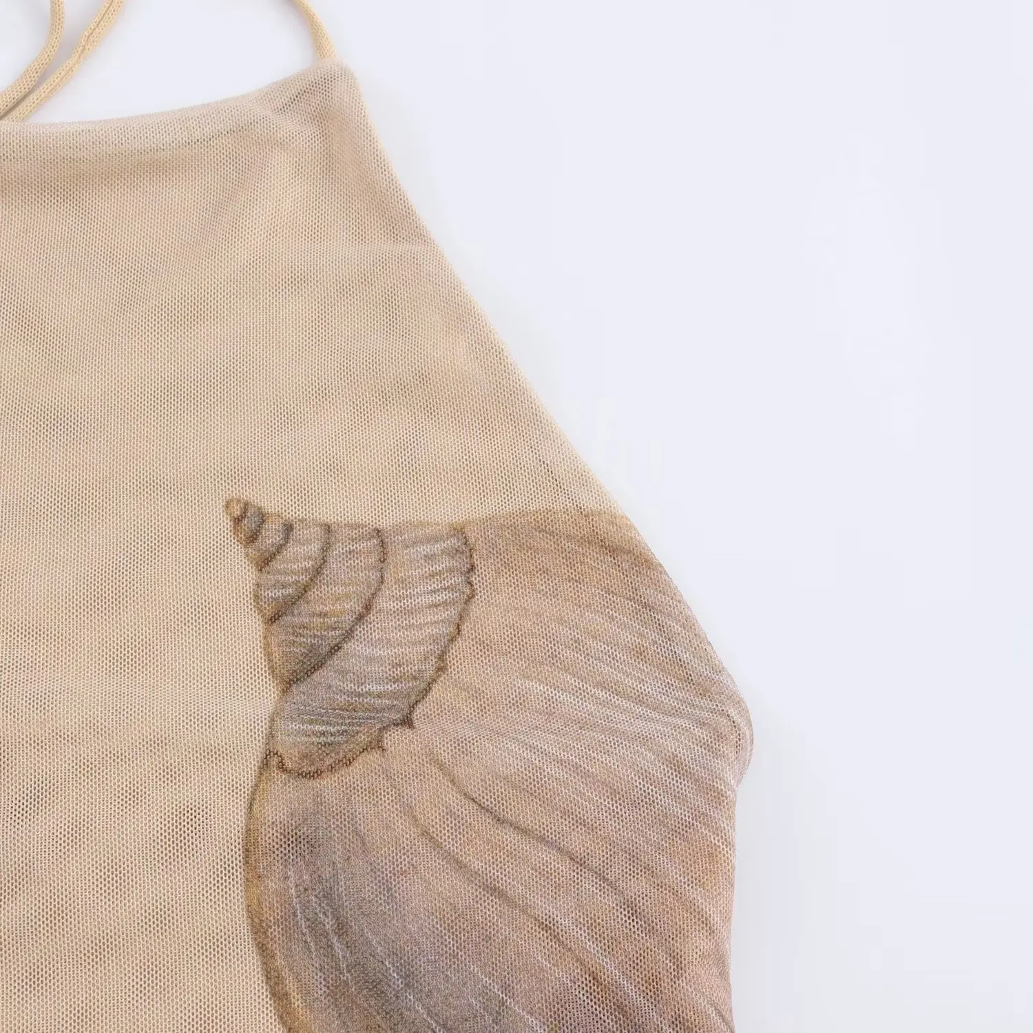 2026 Autumn New Temperament Women's European and American Style Fashion Slim Shell Print Silk Mesh Dress Street Style Slim Skirt