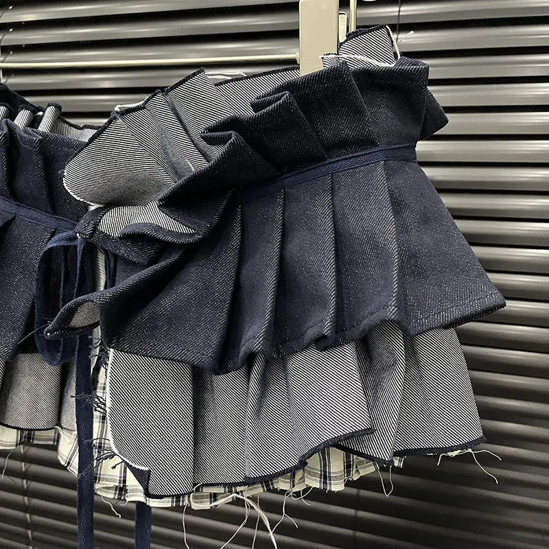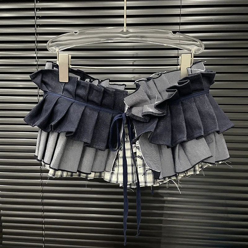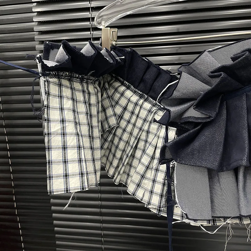 2026 Early Autumn New Fashion Straight Wide-leg Jeans For Women Niche Patchwork Plaid Waistband Female Trendy 11A06311