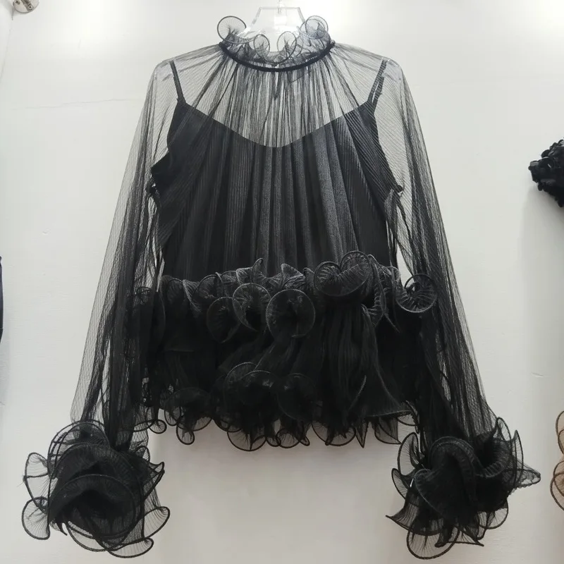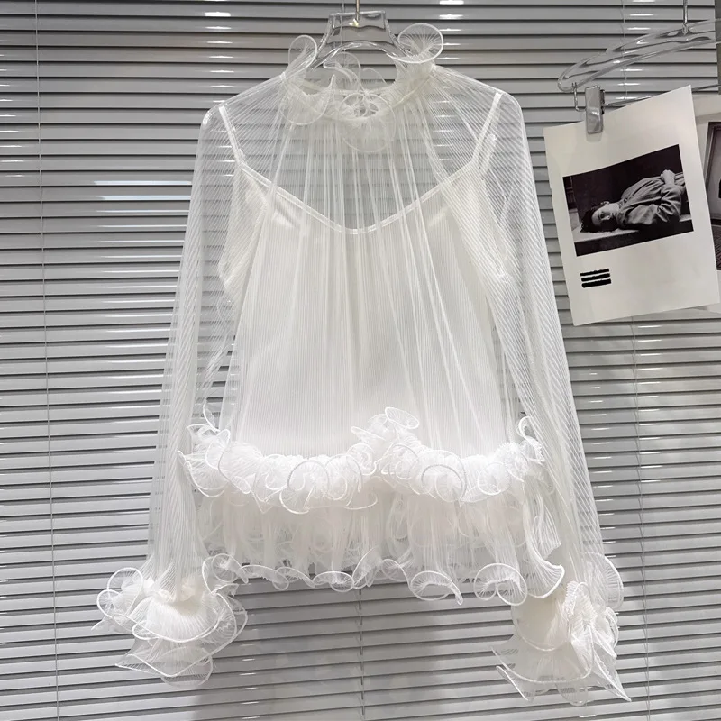2026 Early Spring New French Style Elegant Ruched Lace Inner Camisole Chiffon Blouse For Women Versatile Shirt 1A2228