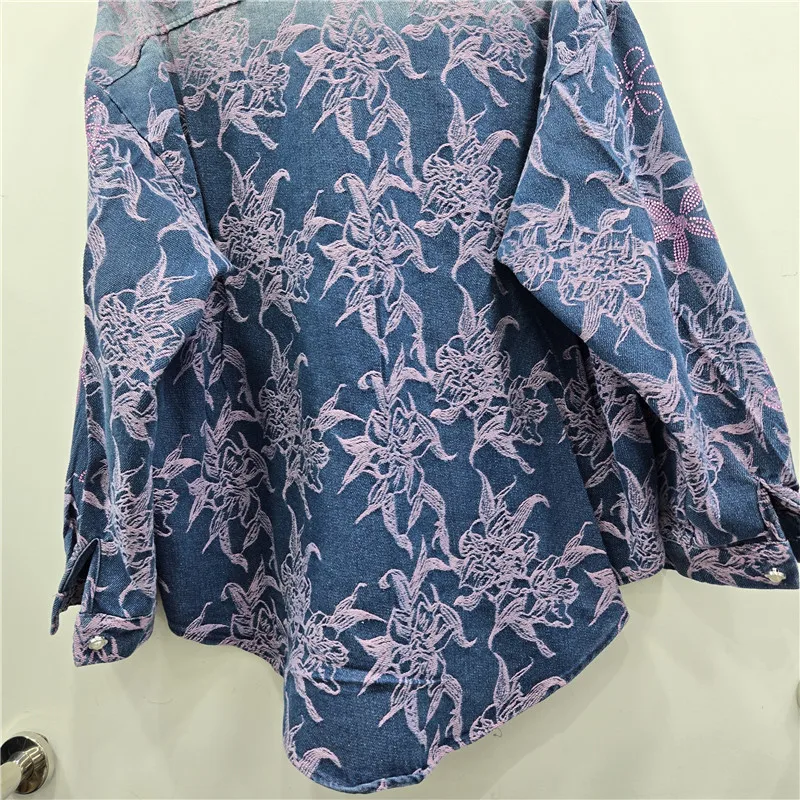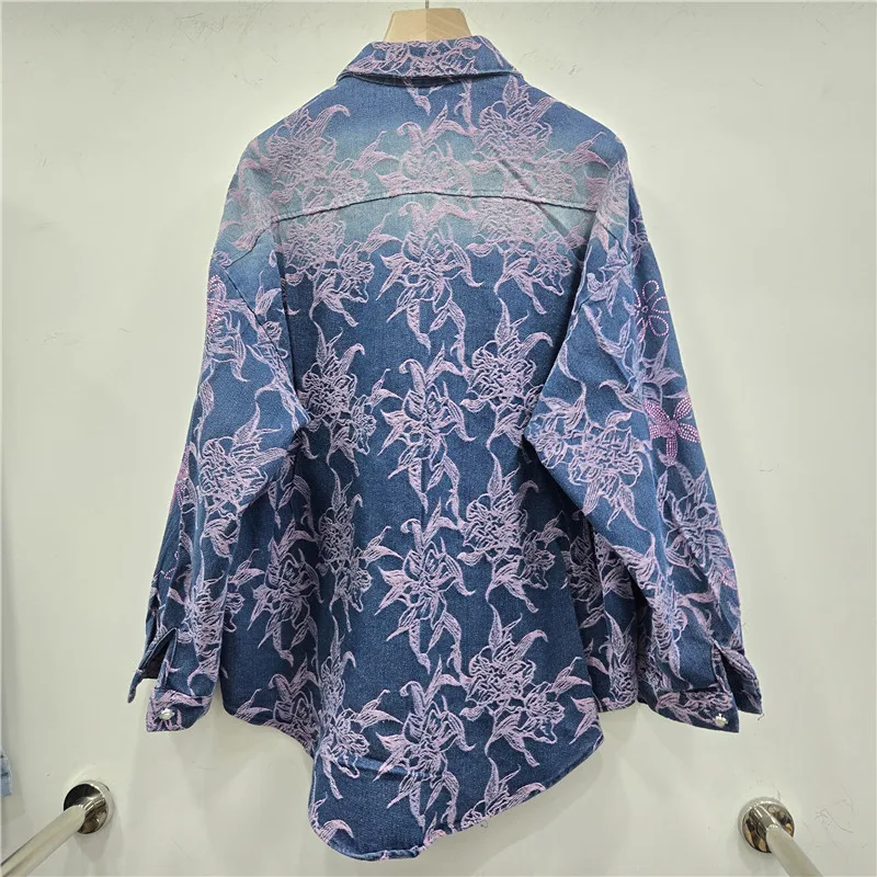2026 Spring Fashion Heavy Jacquard Rhinestone Design Long Sleeve Denim Shirt Jacket For Women Loose Casual Blouse 11A08701