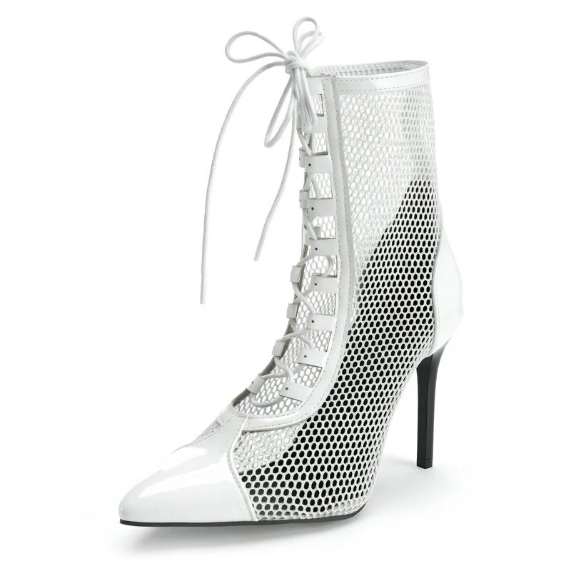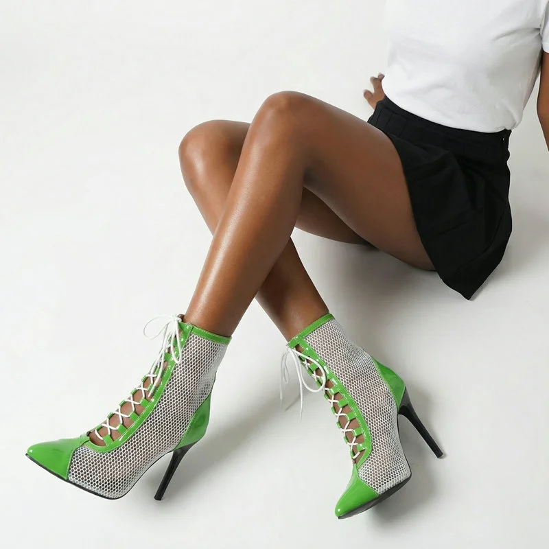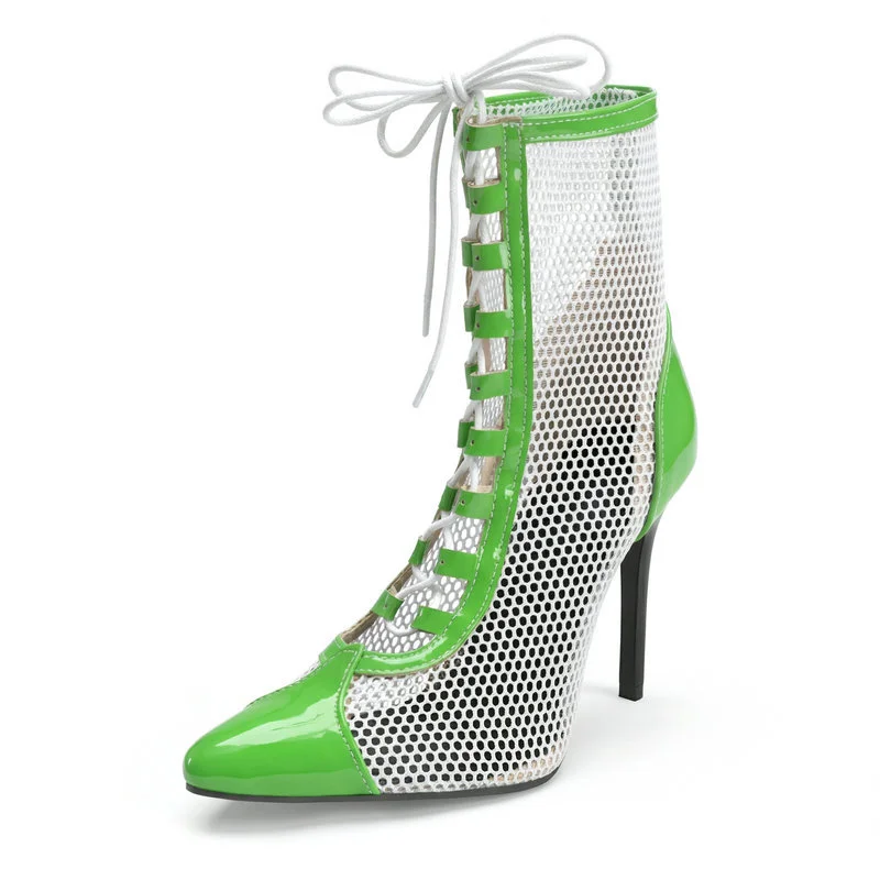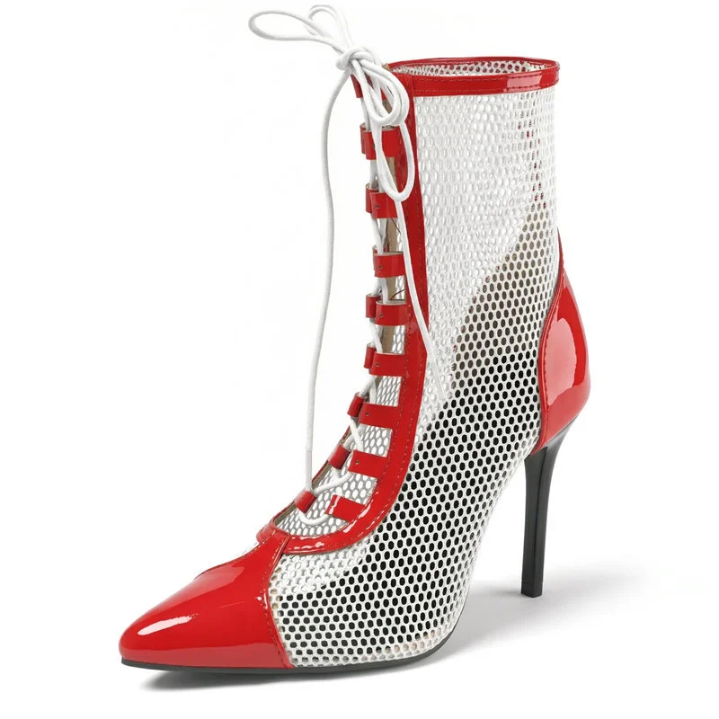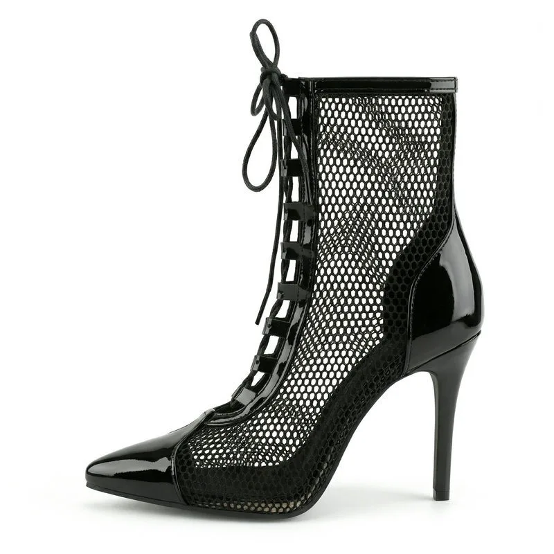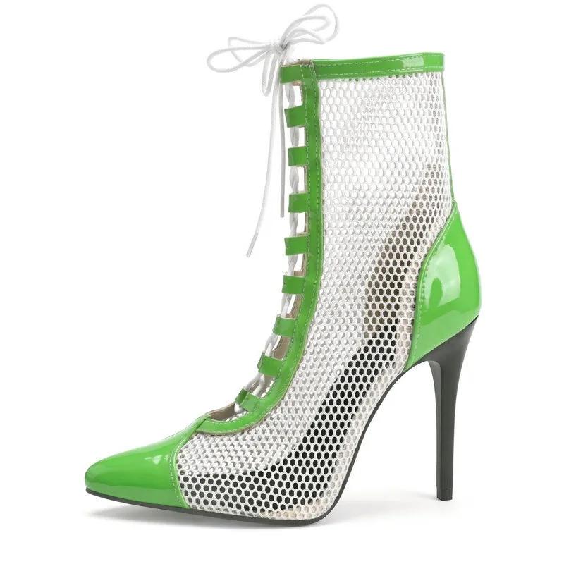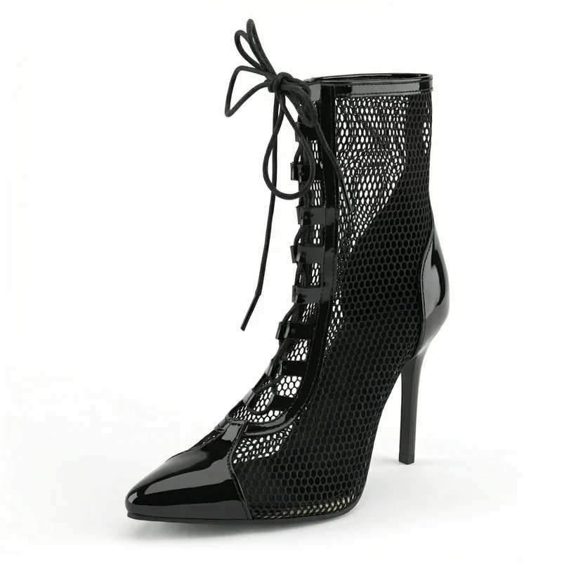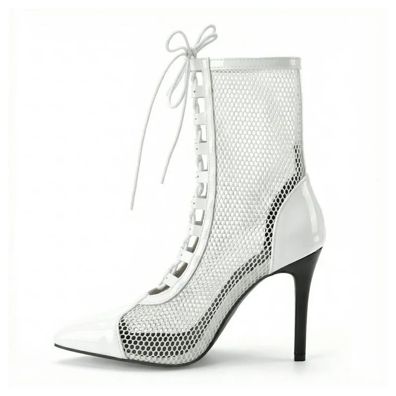 2026 Spring/Summer Women's Stiletto High Heels Mesh Strap Cool Boots Pointed New Style 34-48 Large Short Boots