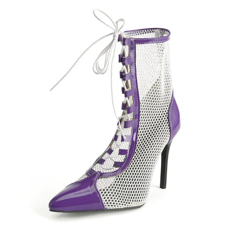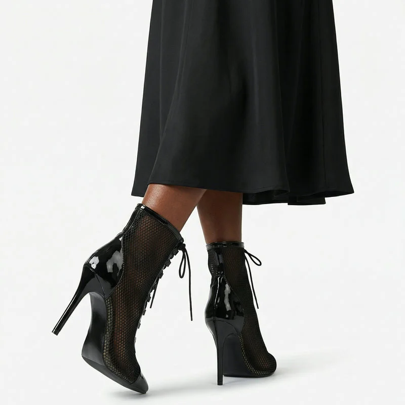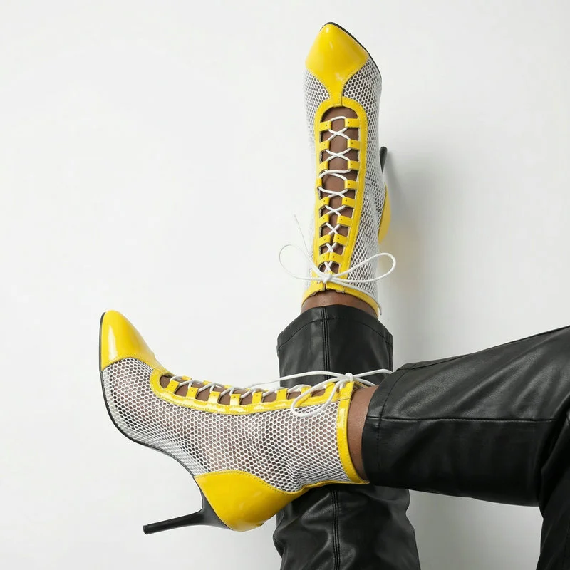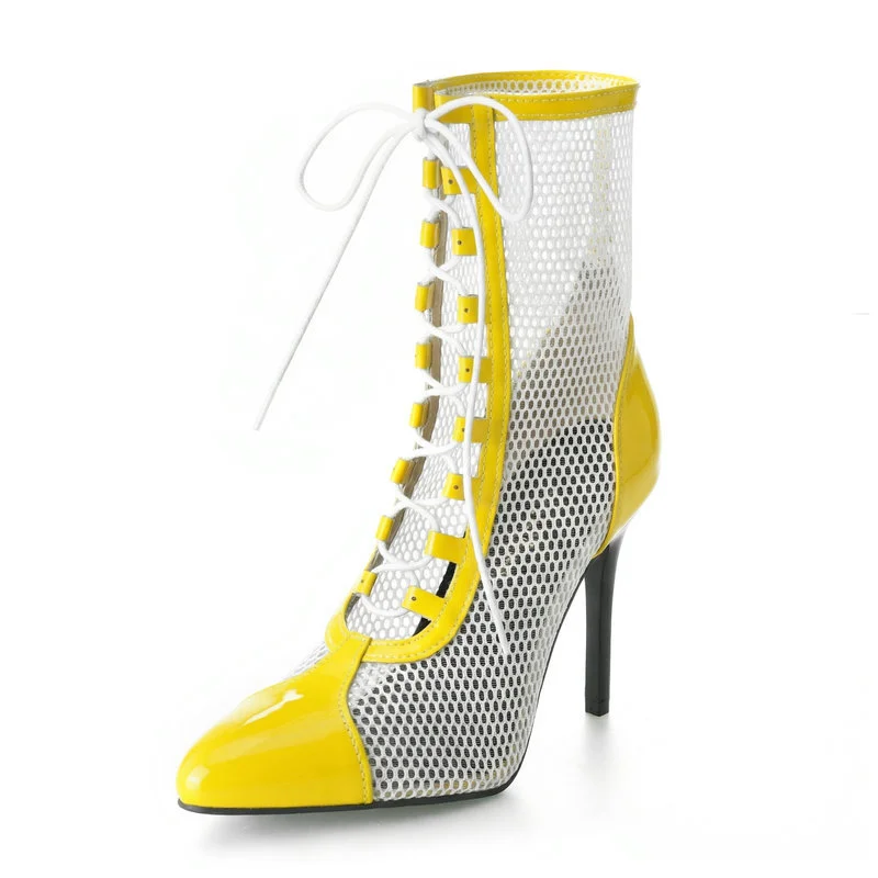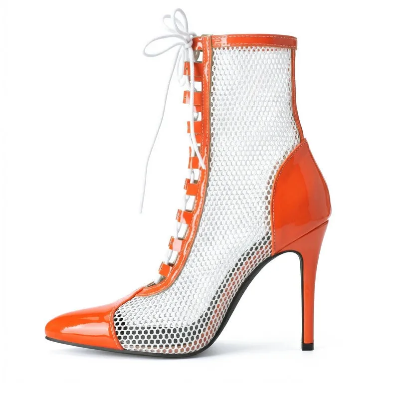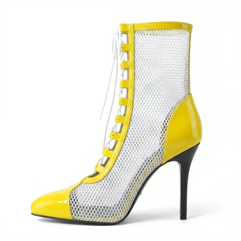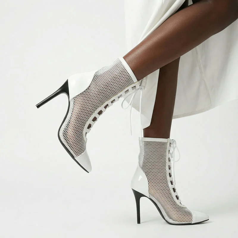 2026 Spring/Summer Women's Stiletto High Heels Mesh Strap Cool Boots Pointed New Style 34-48 Large Short Boots