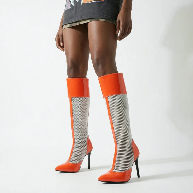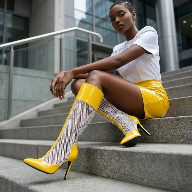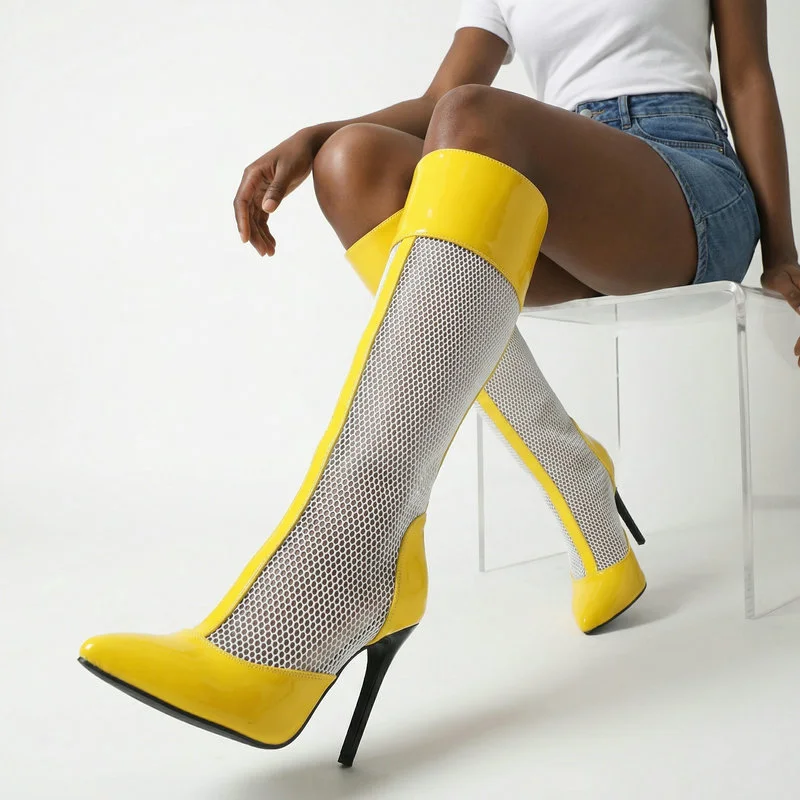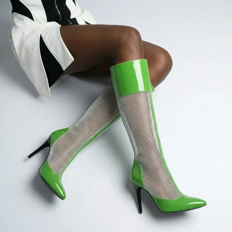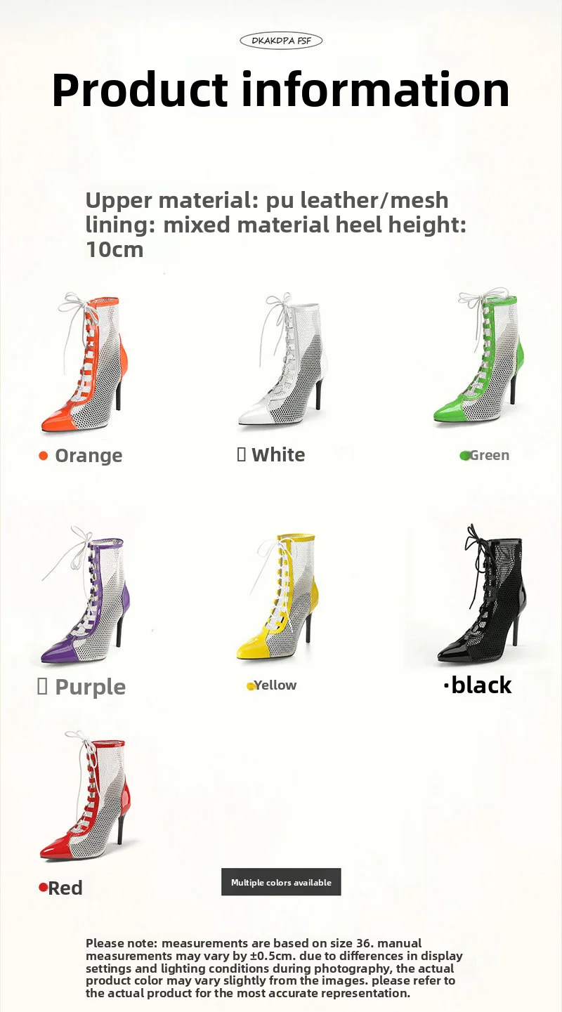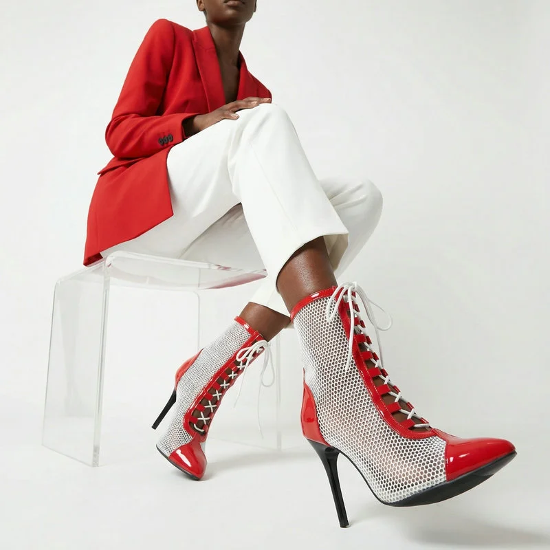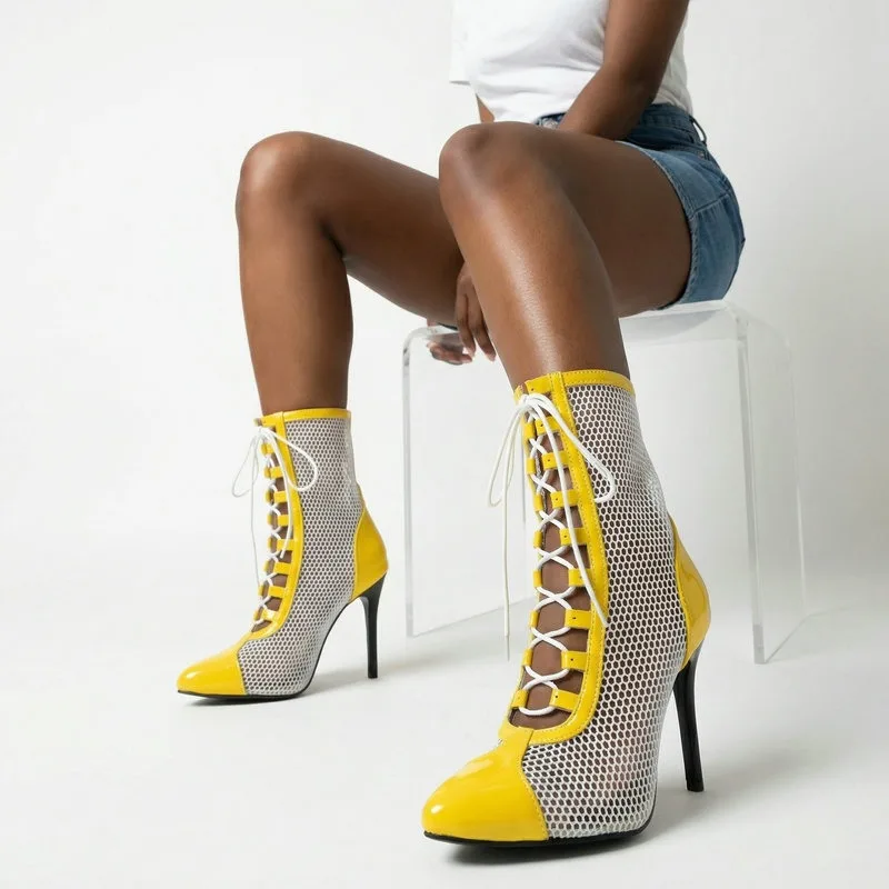2026 Spring/Summer Women's Stiletto High Heels Mesh Strap Cool Boots Pointed New Style 34-48 Large Short Boots