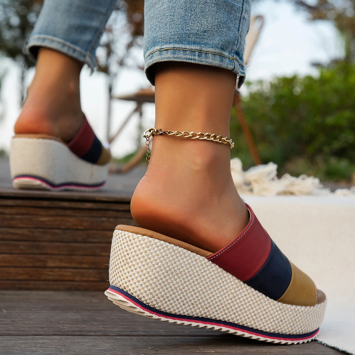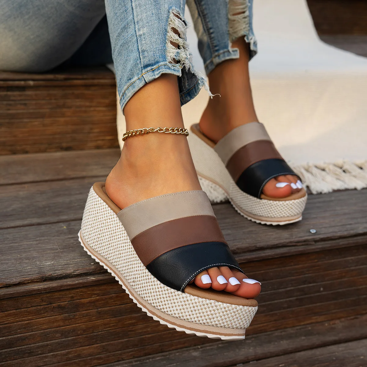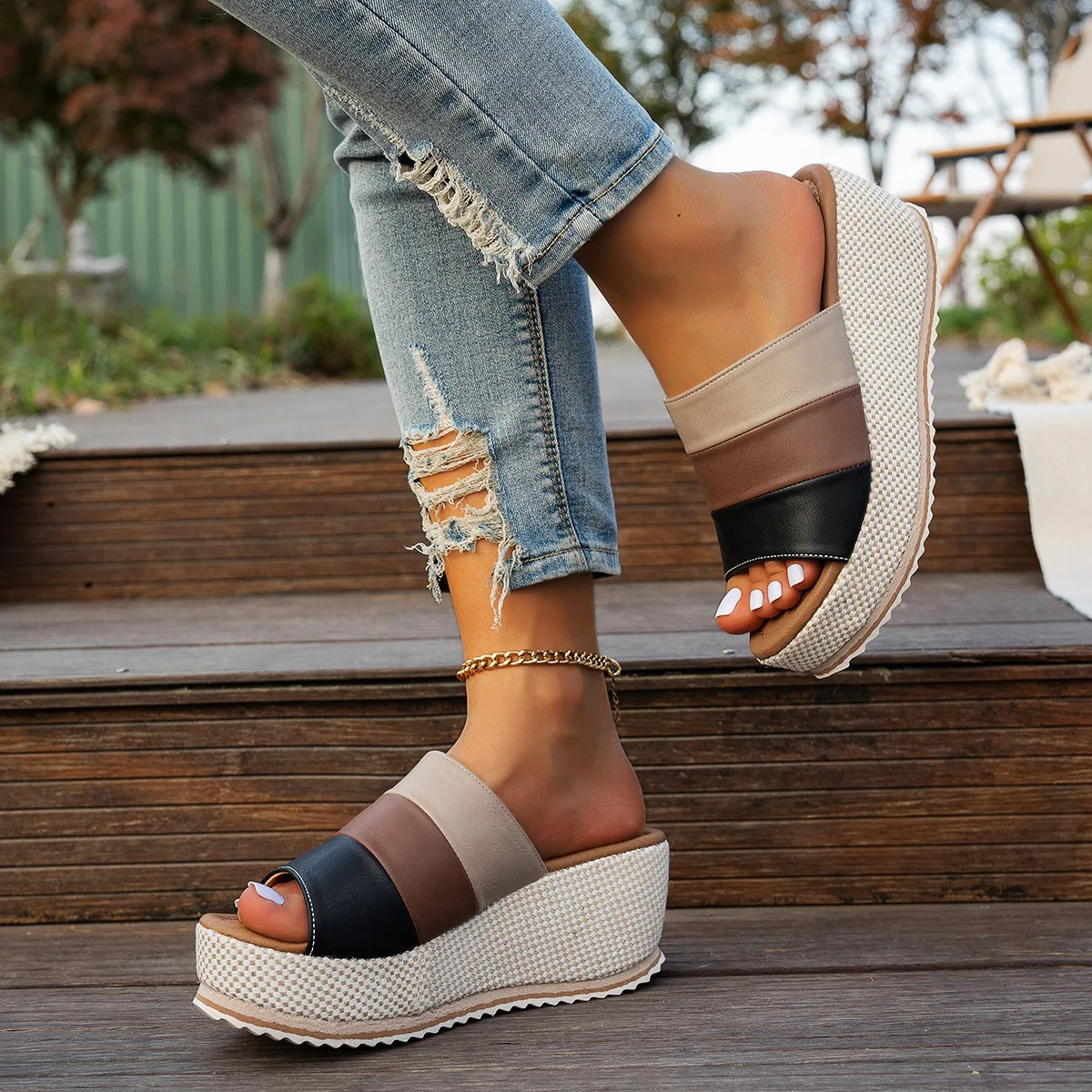 2026 Summer Fashion PU Platform Sandals Plus Size 36-43 Shoes for Women Slip on Sandalias