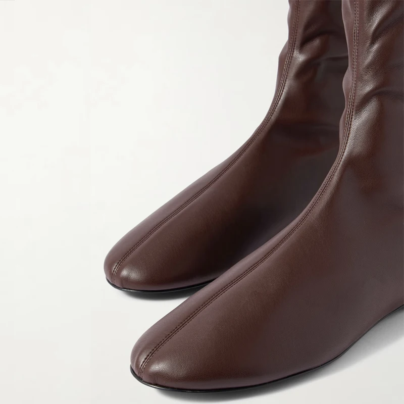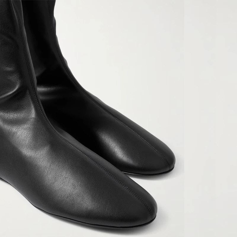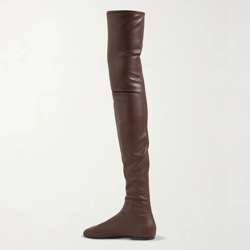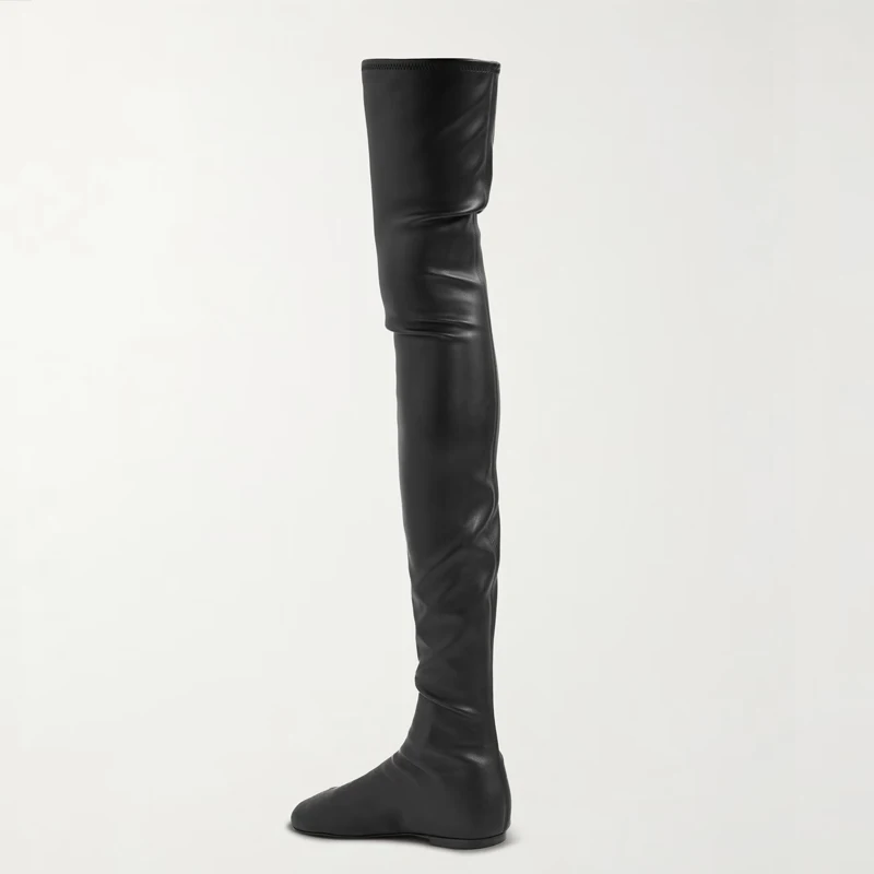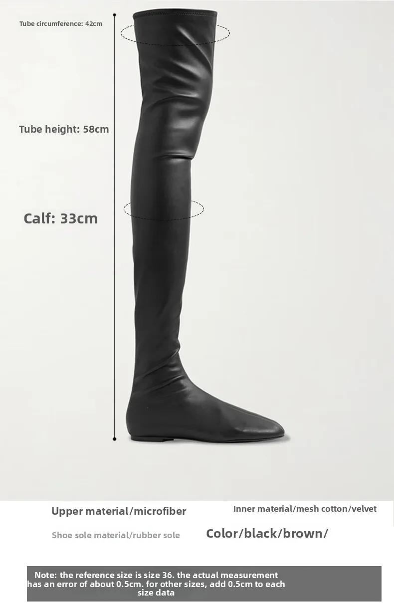 Autumn and Winter Fashion Women's Flat Knee Over Women's Boots Round Head Elastic Boots Women's 34-46 Large Thigh Boots