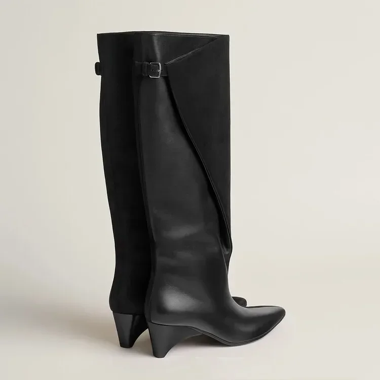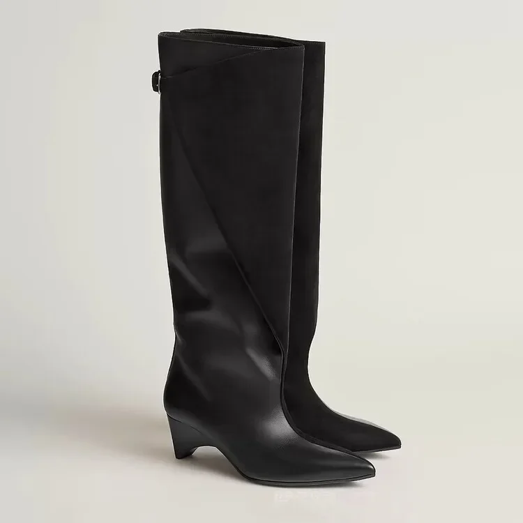2026 Autumn and Winter Women's Fashionable Knee High Boots, Pointed and Thick High-heeled Knight Boots 34-43 Mid Length Boots