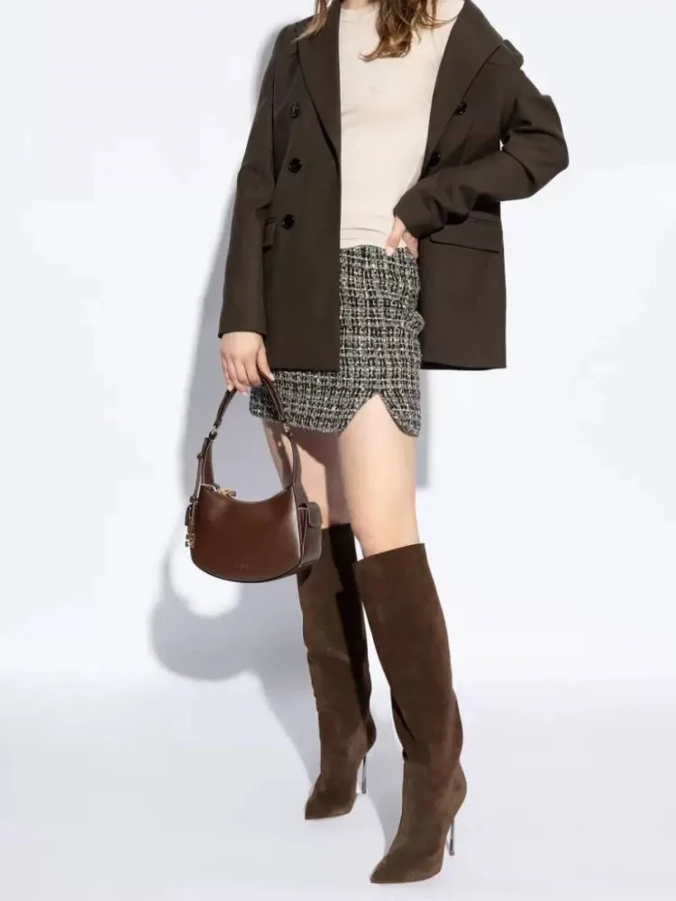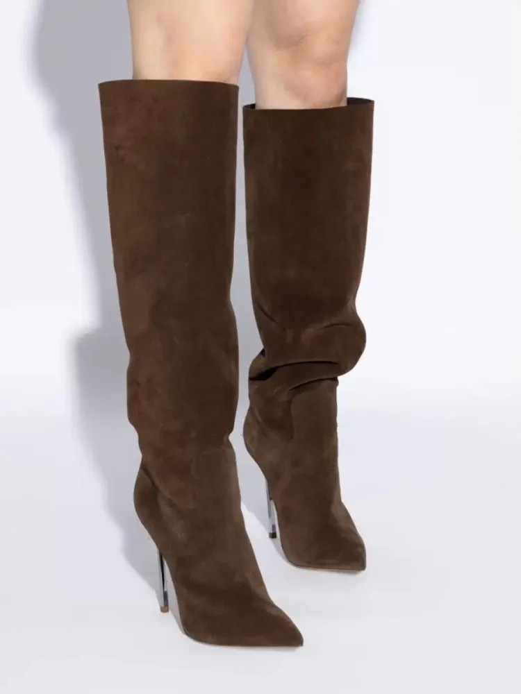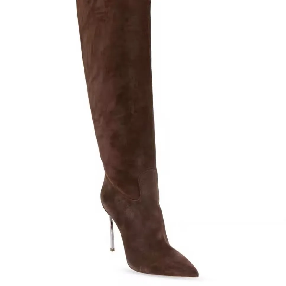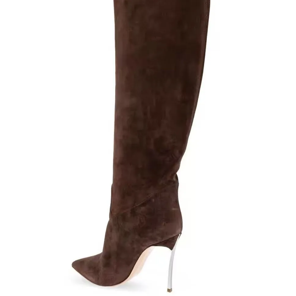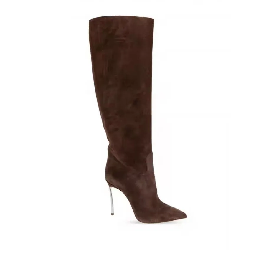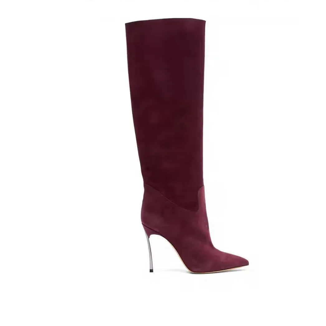 Autumn and Winter Women's New Suede High Heels Knee Length Women's Boots Fashion Pointed 34-46 Large Medium Top Boots