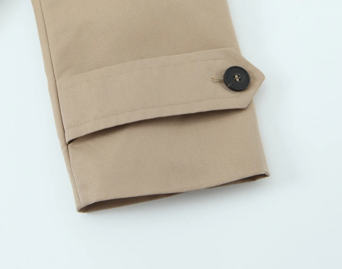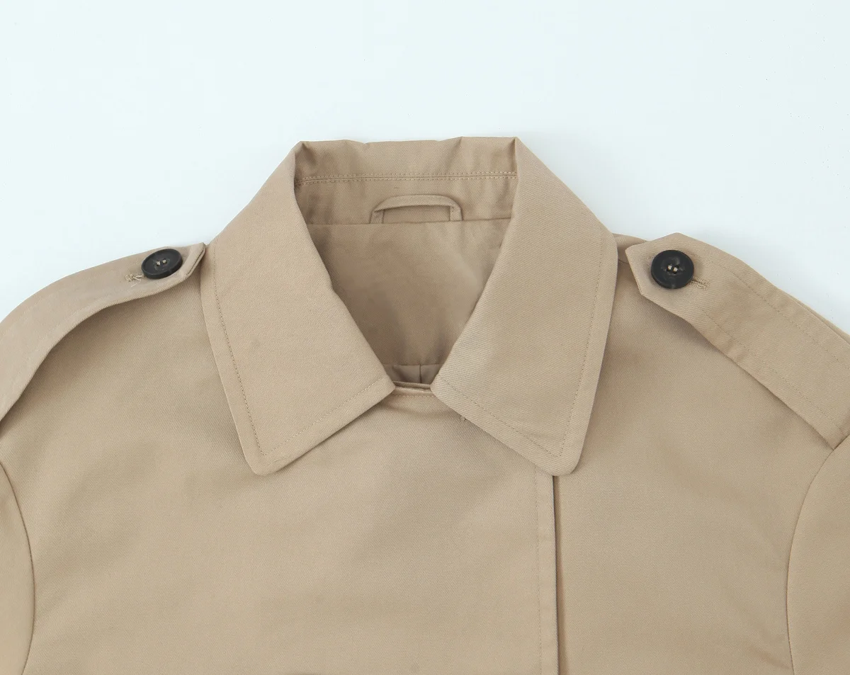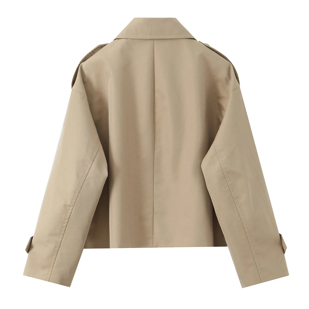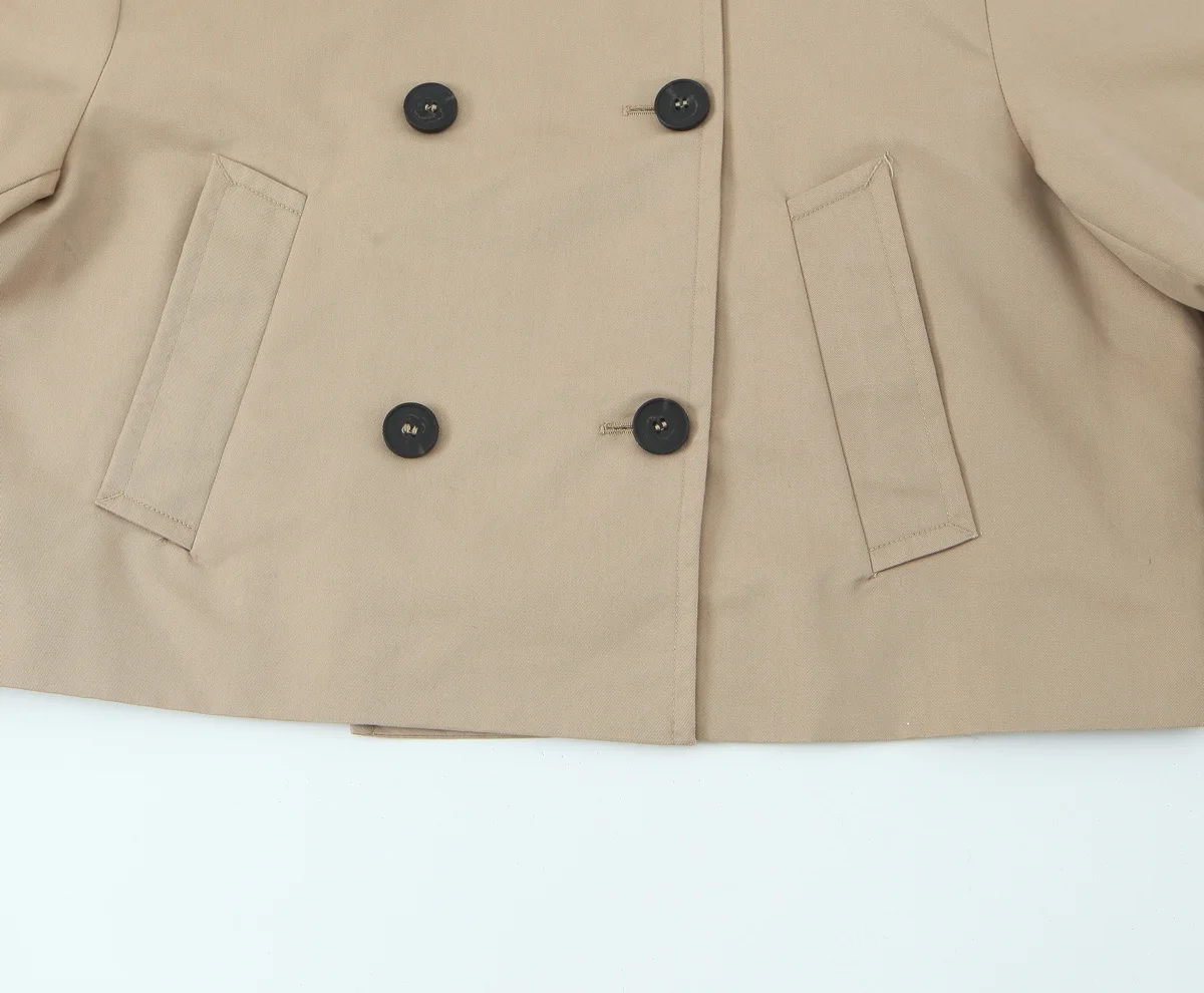 Women Double Breasted Cropped Trench Jacket Long Sleeves for Female Autumn Winter Outerwear