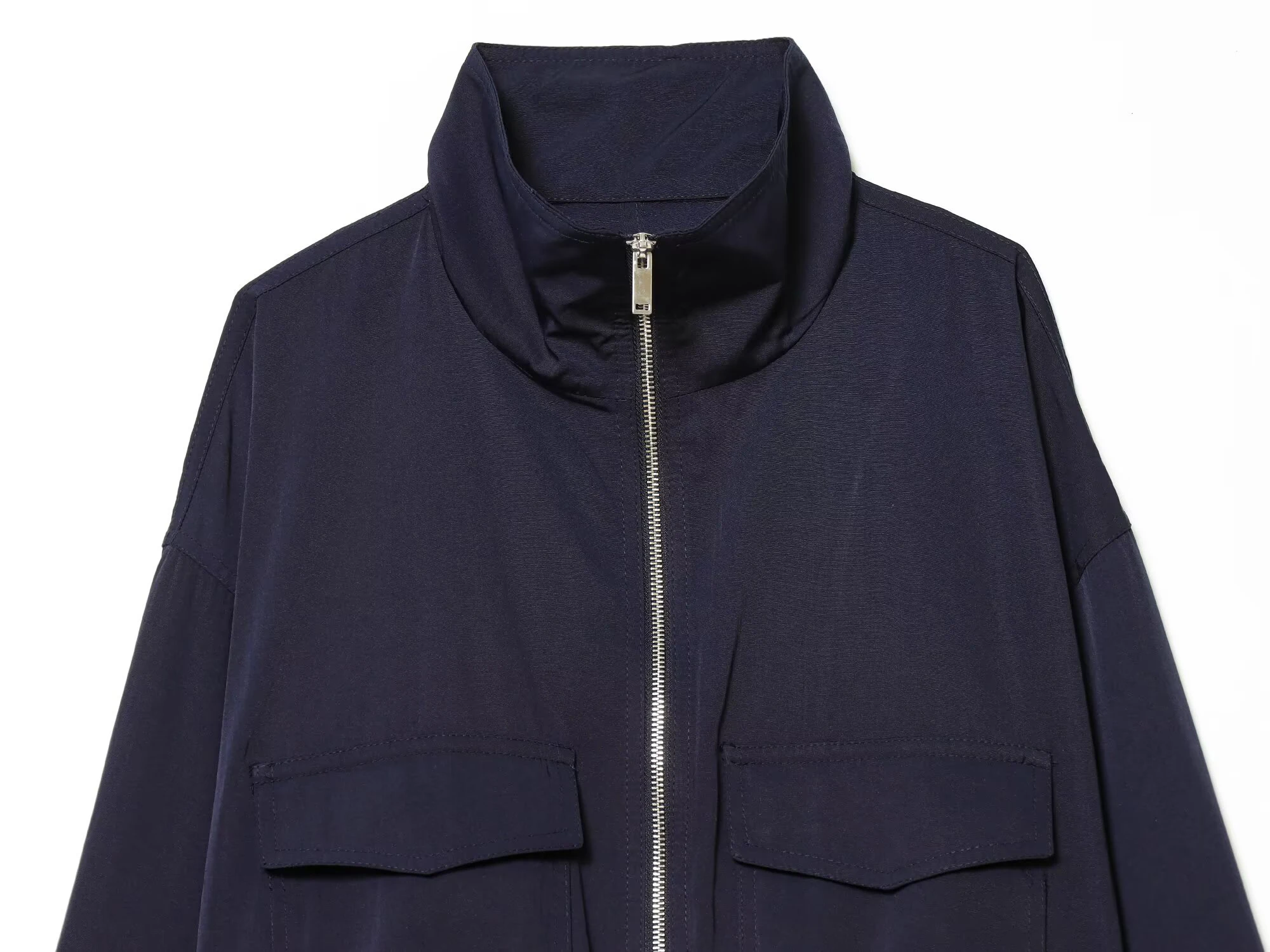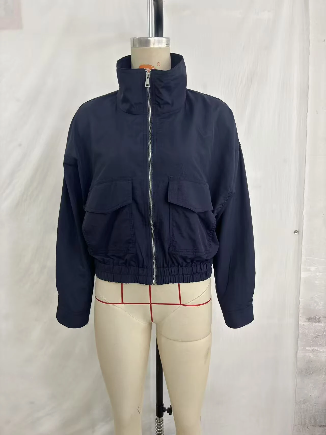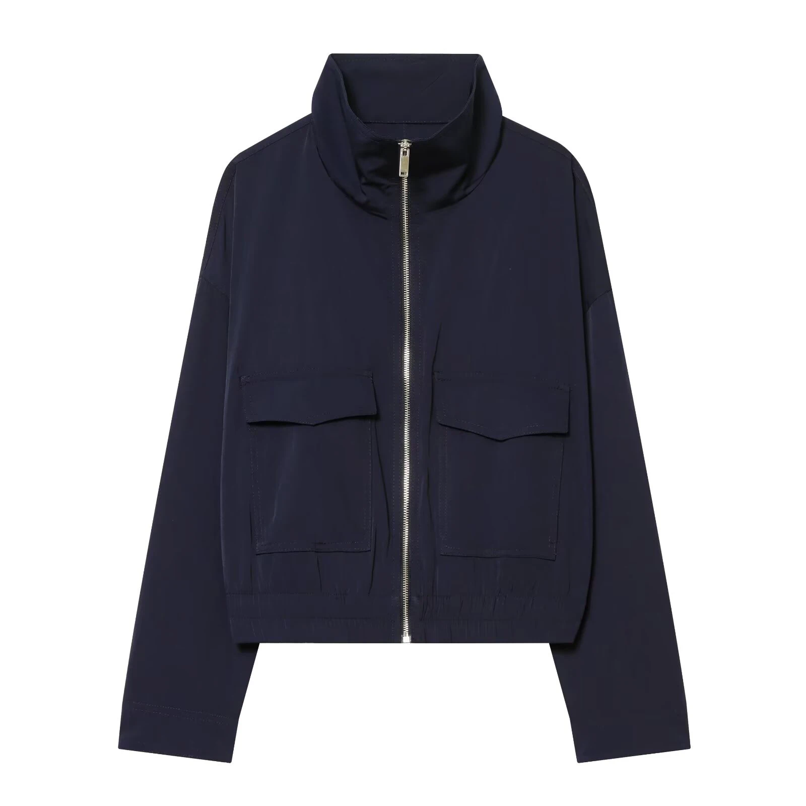 European and American style 2026 spring/summer new product women's long sleeved flip pocket stand up collar jacket jacket