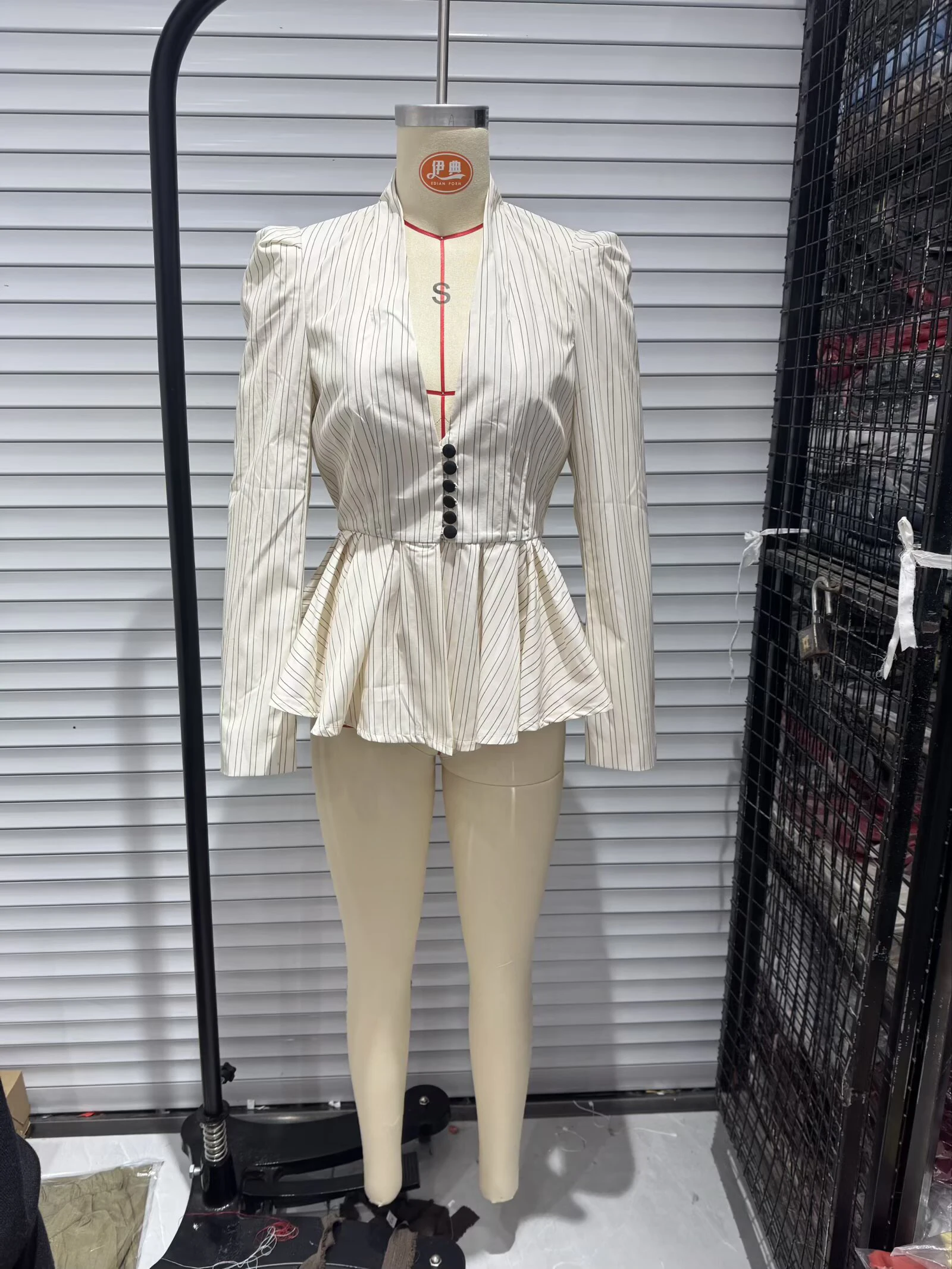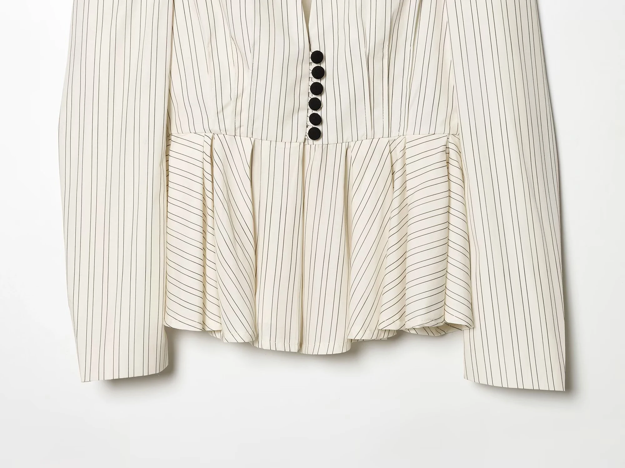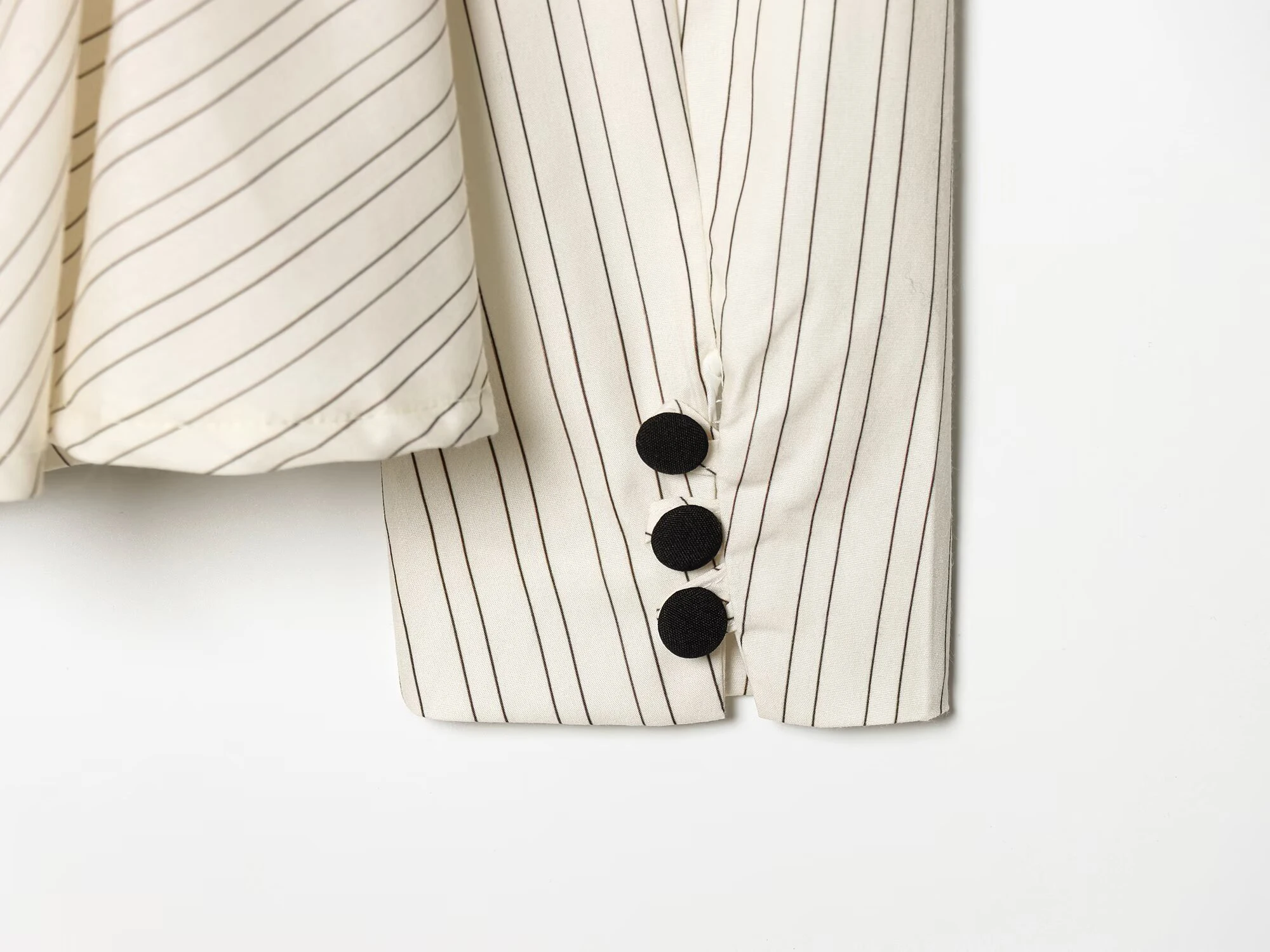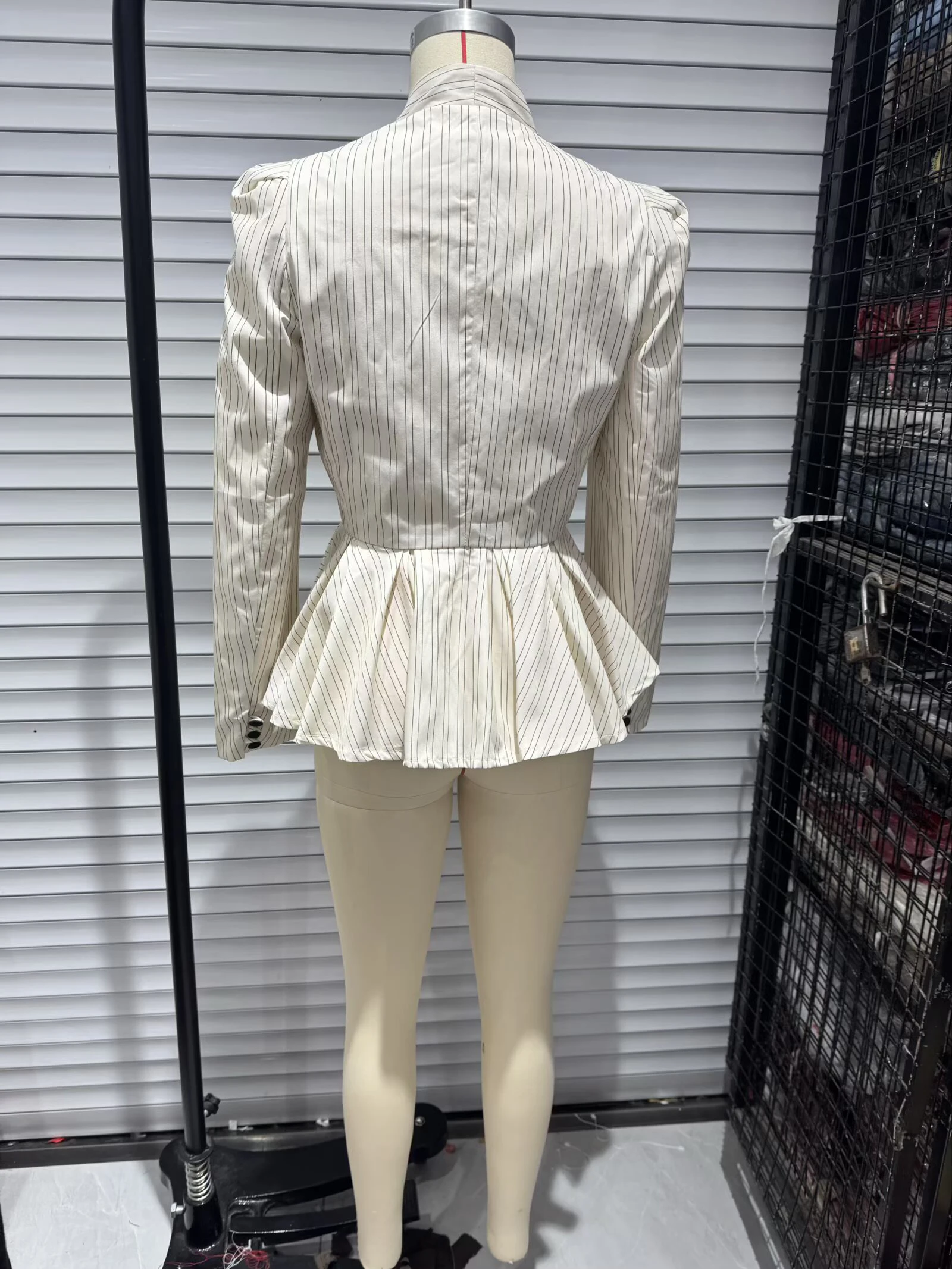 European and American style women's clothing new long sleeved striped short skirt hem suit jacket