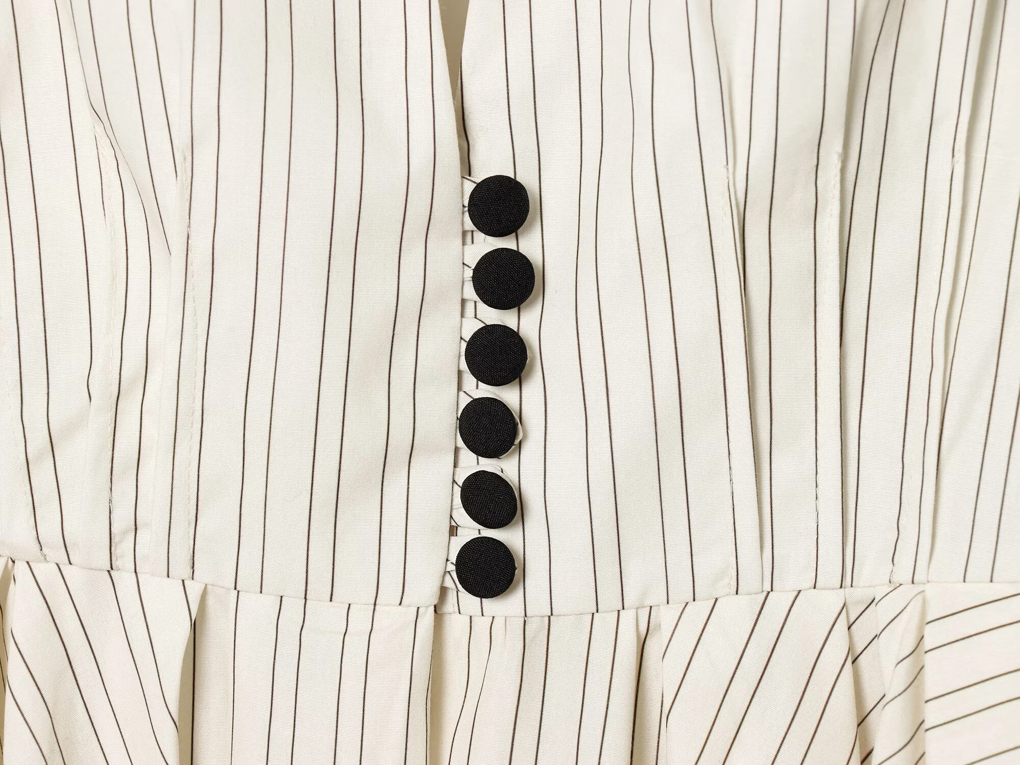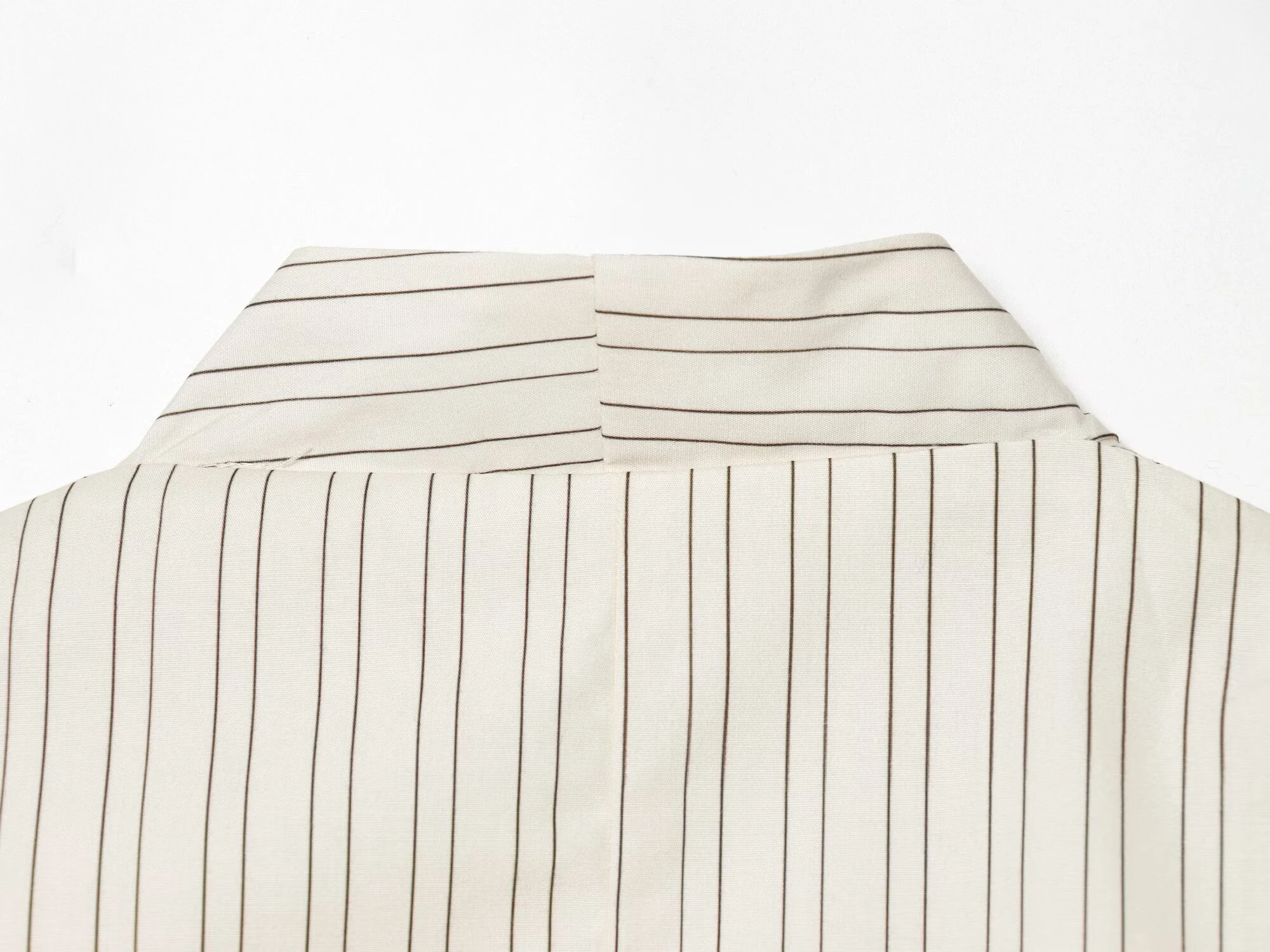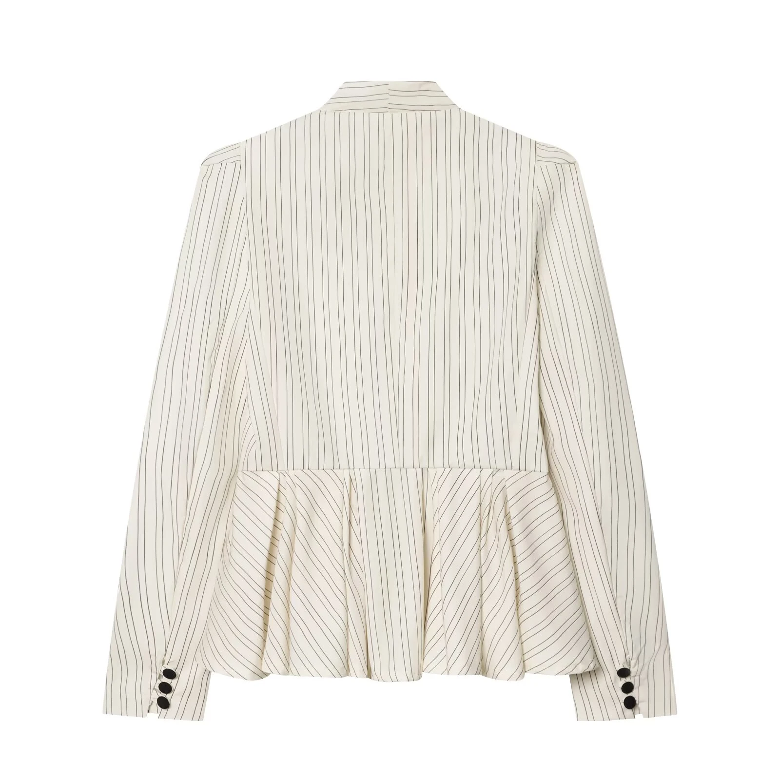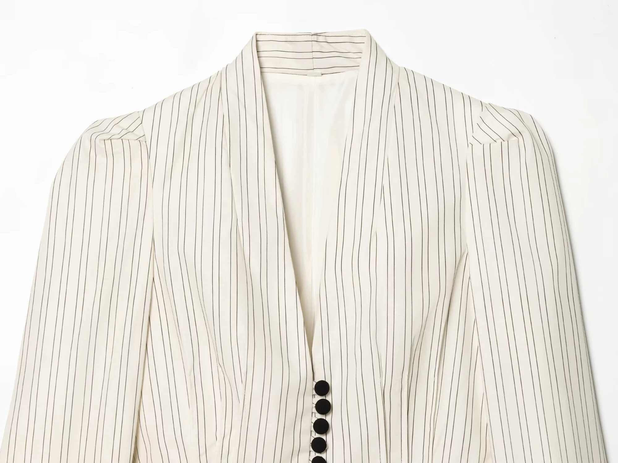 European and American style women's clothing new long sleeved striped short skirt hem suit jacket