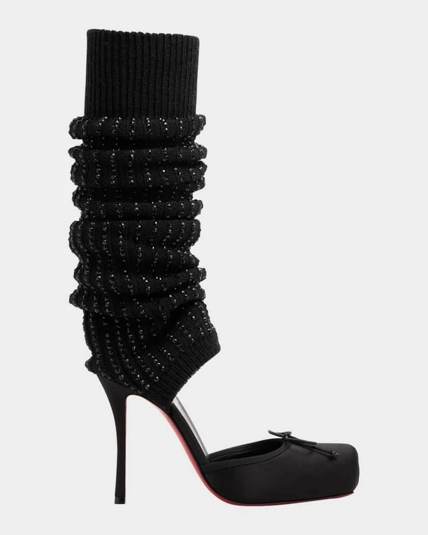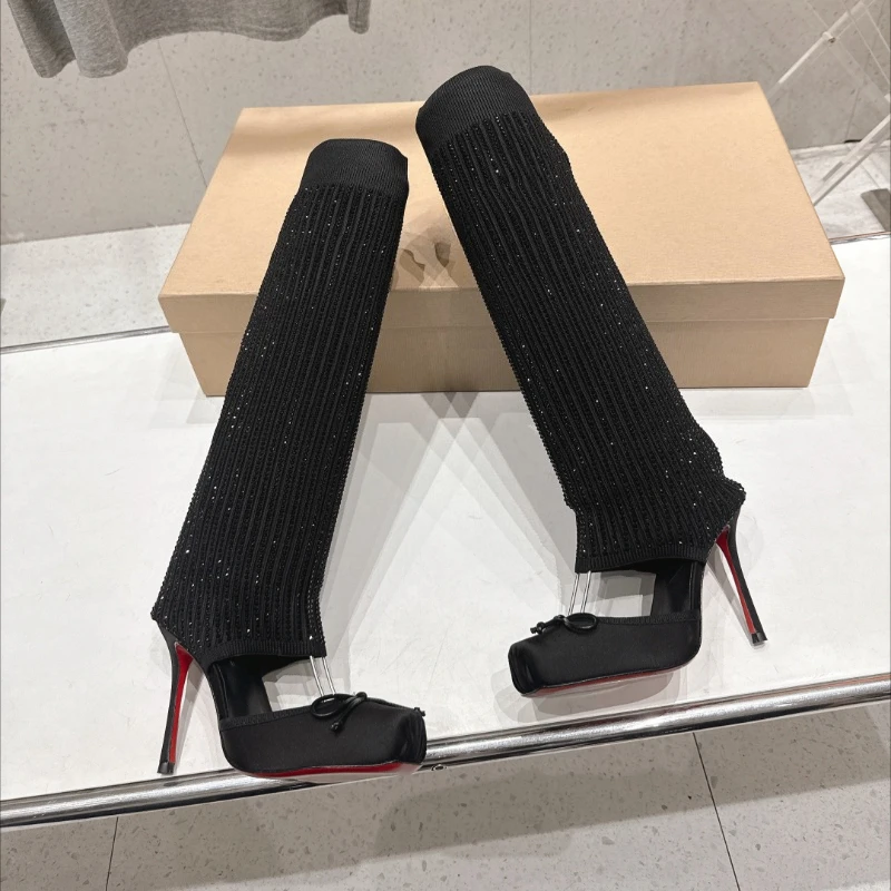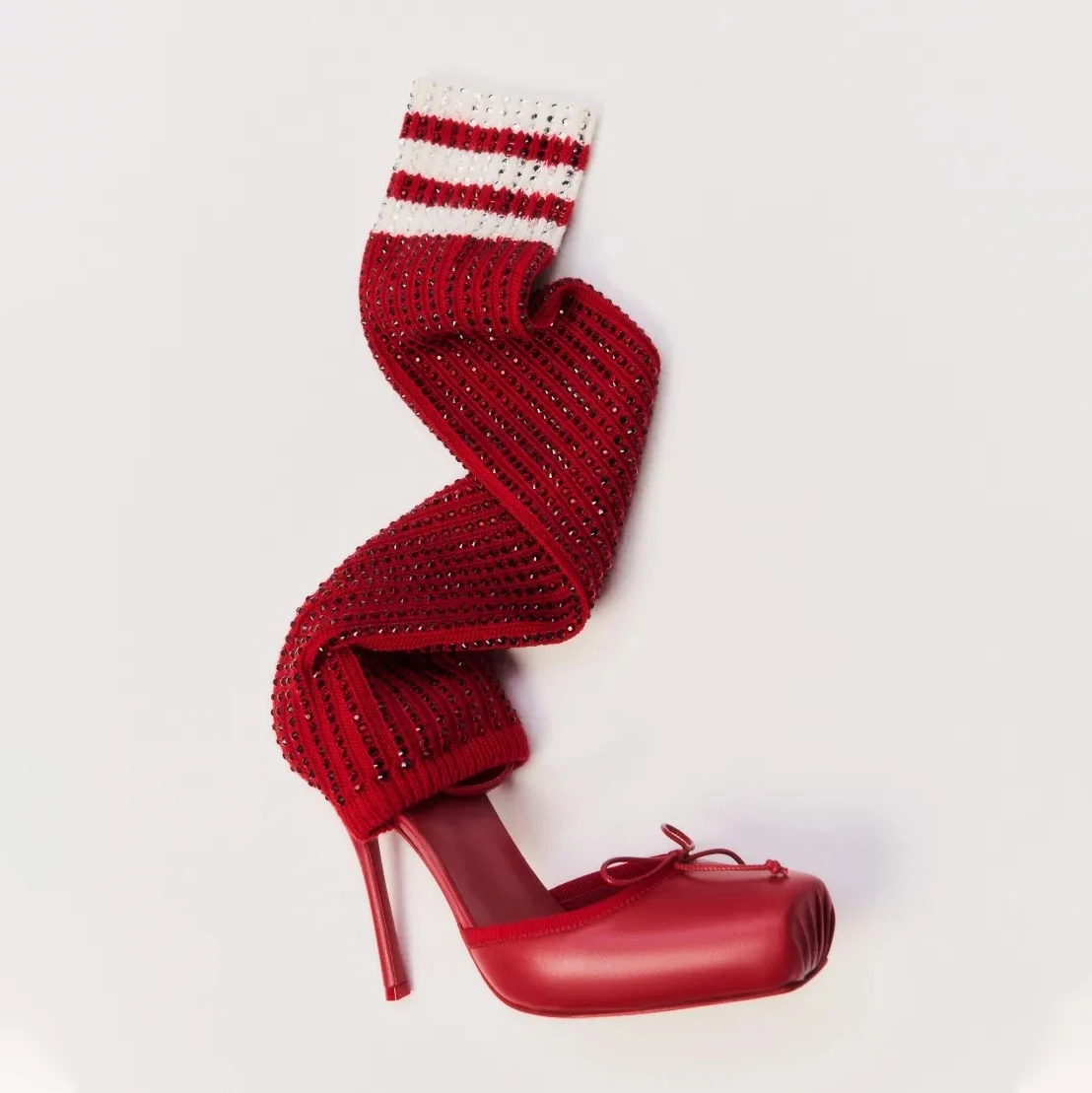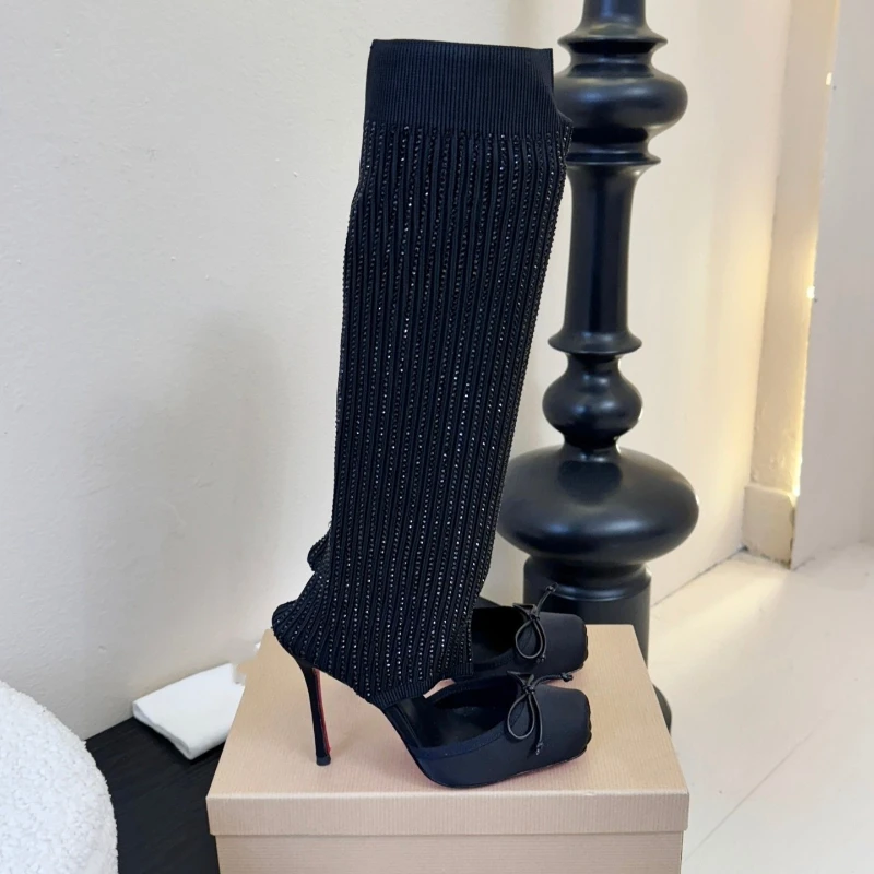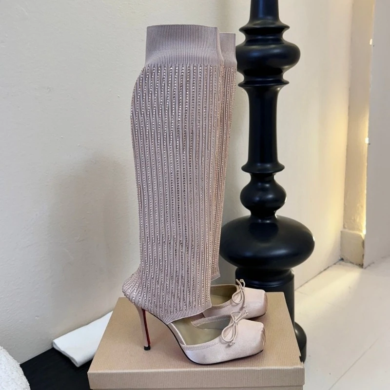European and American Women's Fashion Square Toe, Slim High Heels, Personalized Pants Legs, Socks, Full Diamond Runway Shoes