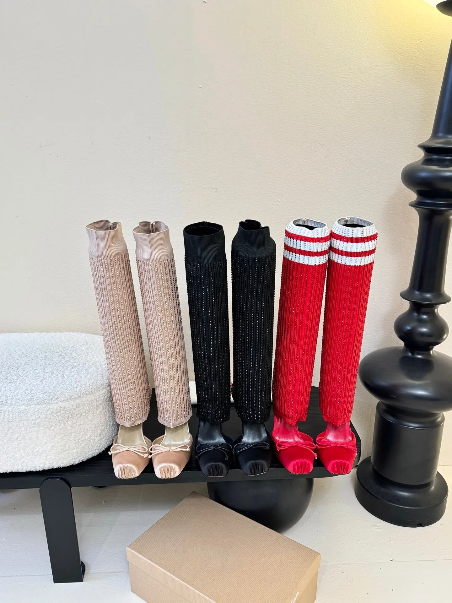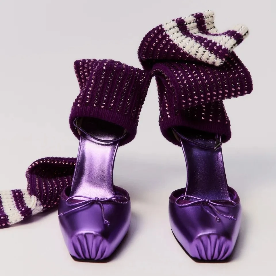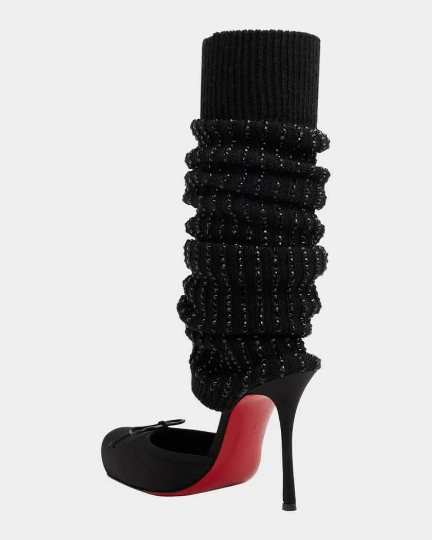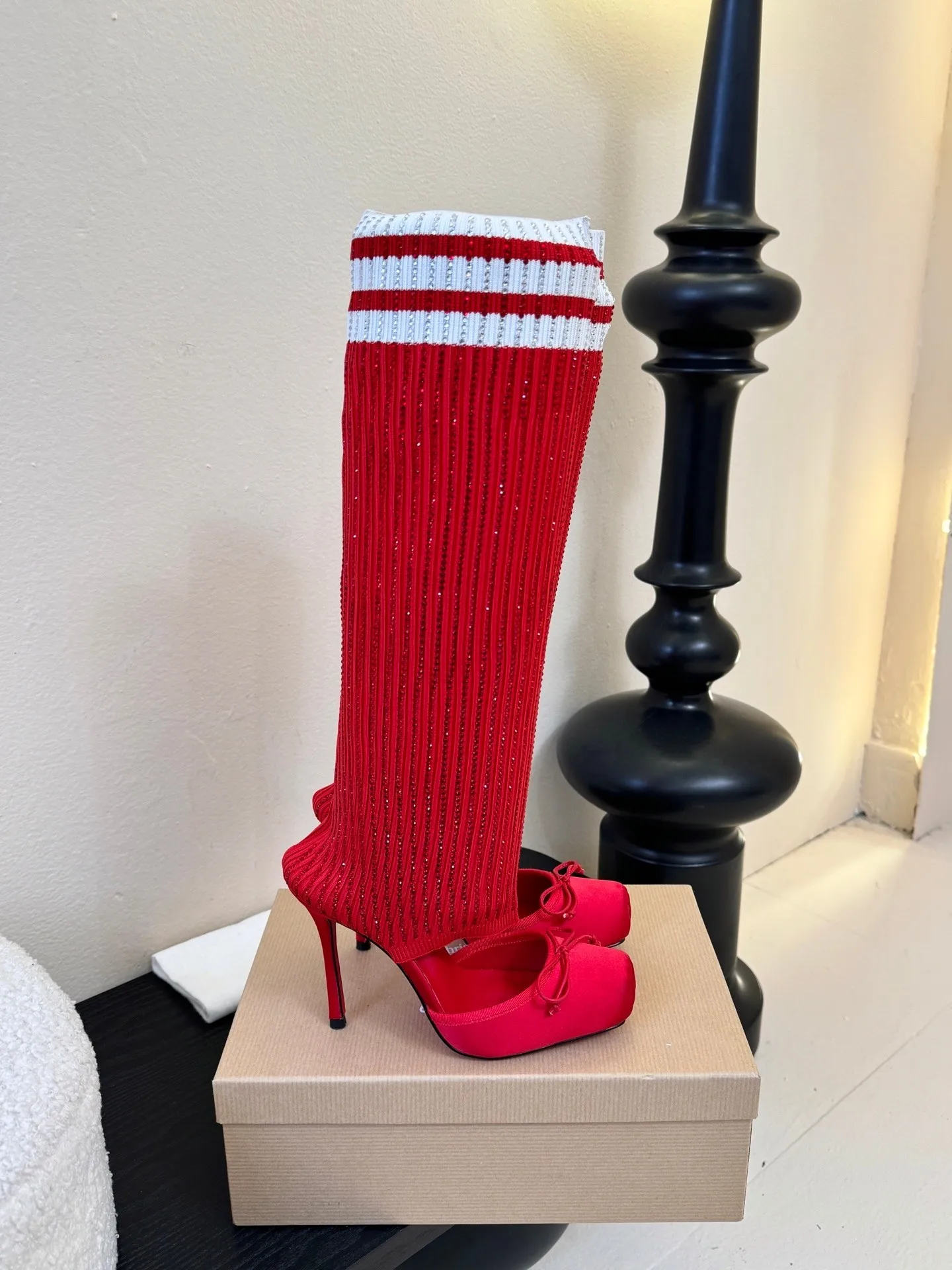 European and American Women's Fashion Square Toe, Slim High Heels, Personalized Pants Legs, Socks, Full Diamond Runway Shoes