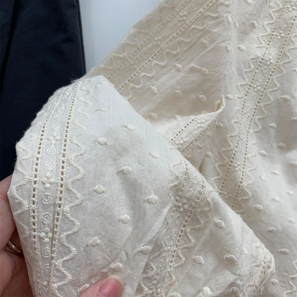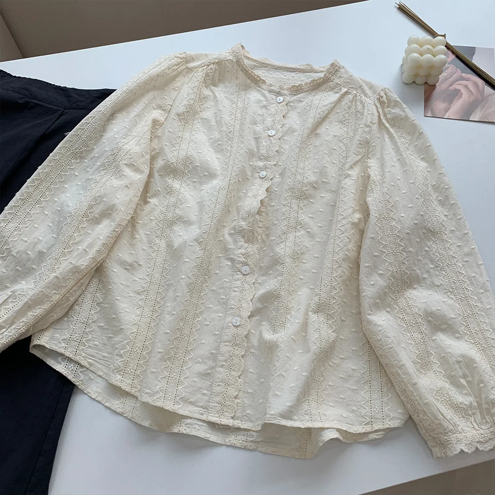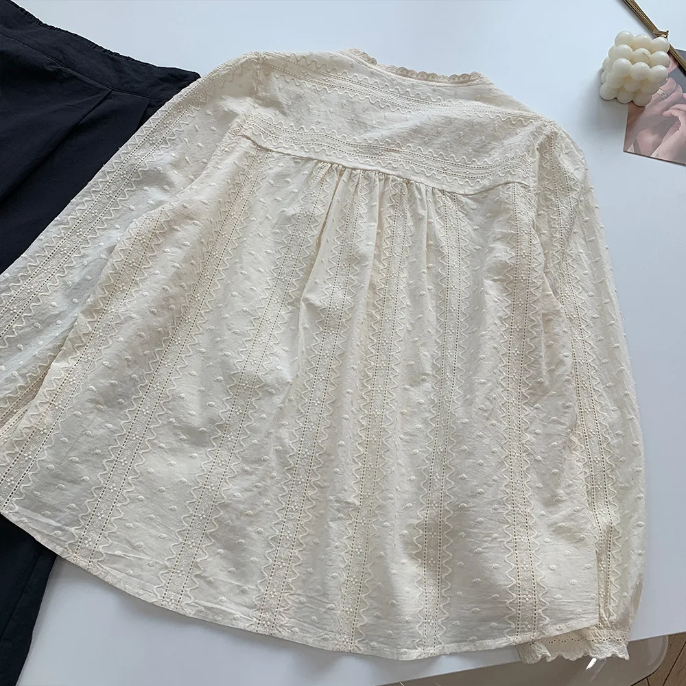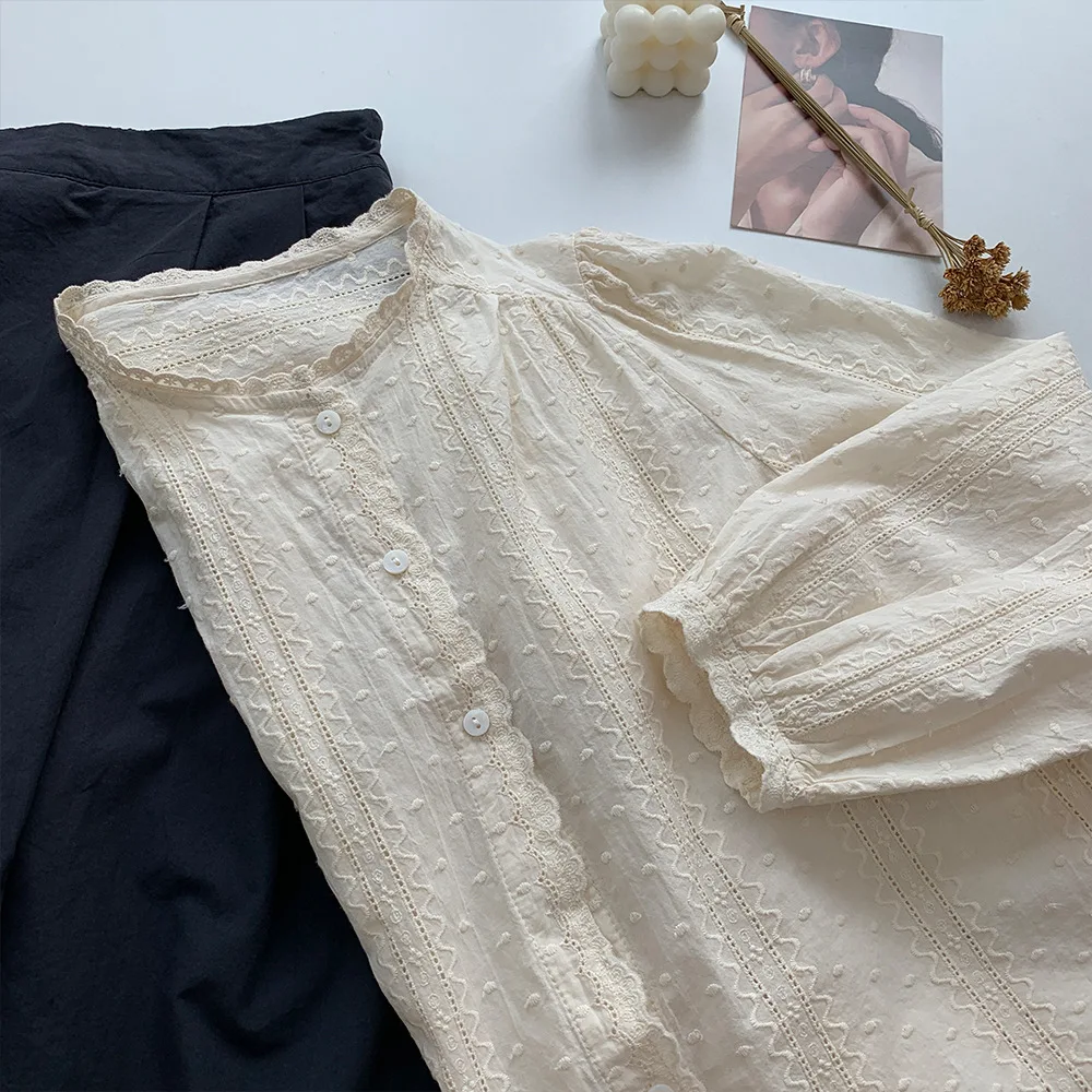 Fall Vintage Cotton Embroidery Lace Hollow Out Long Puff Sleeve Shirt Youth Retro Chic Classy Edwardian Rococo Elegant Blouse
