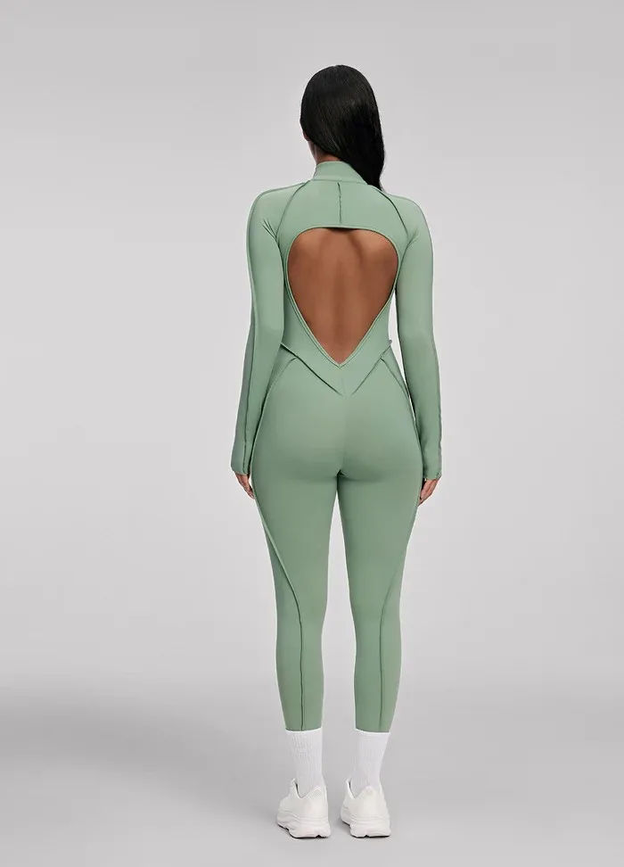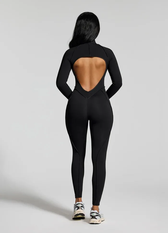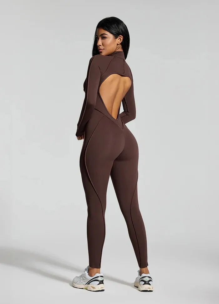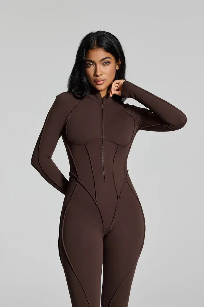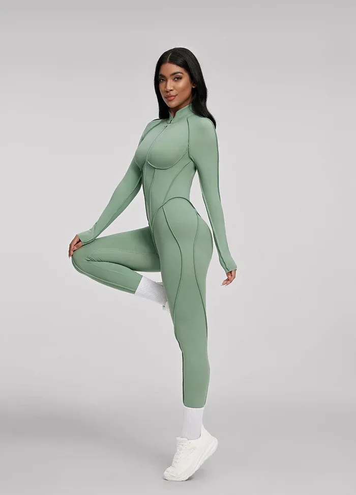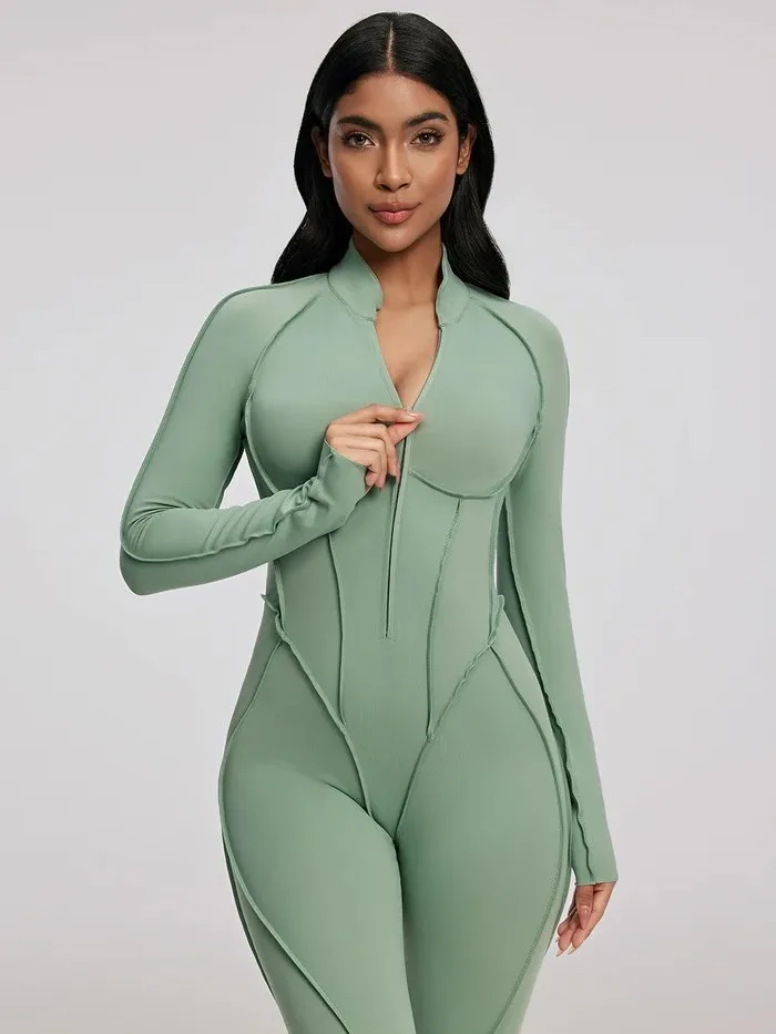 FUBEIKE Women's Yoga Set Fashion Sexy Slim Fit Long Sleeve Zipper Sports Gym Workout Legging Bodysuits Outdoor Activewear