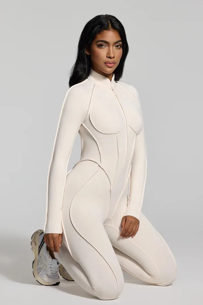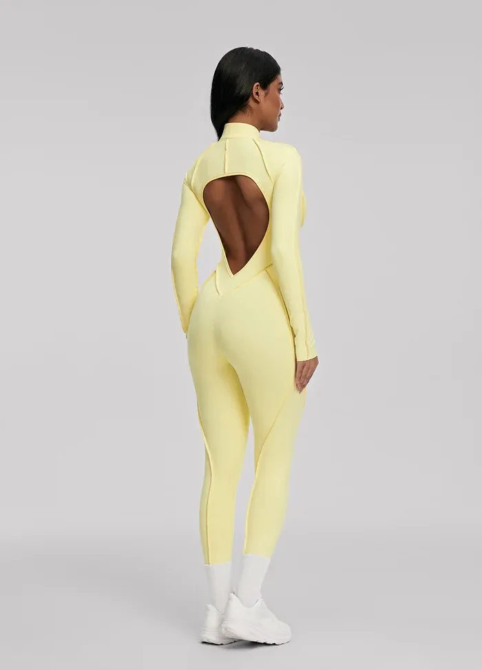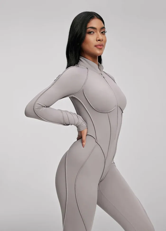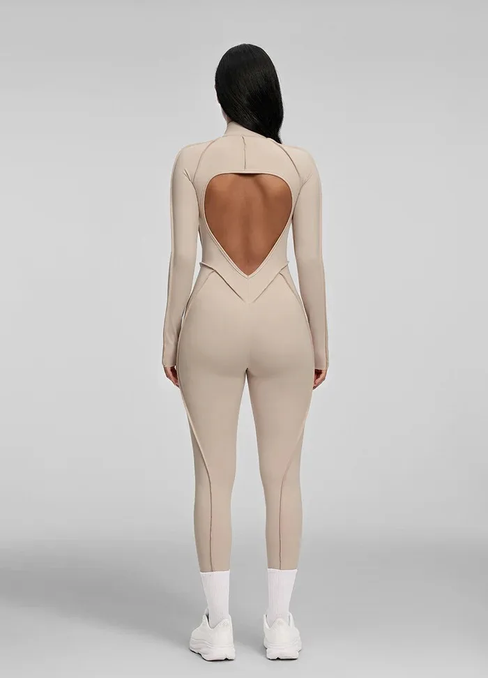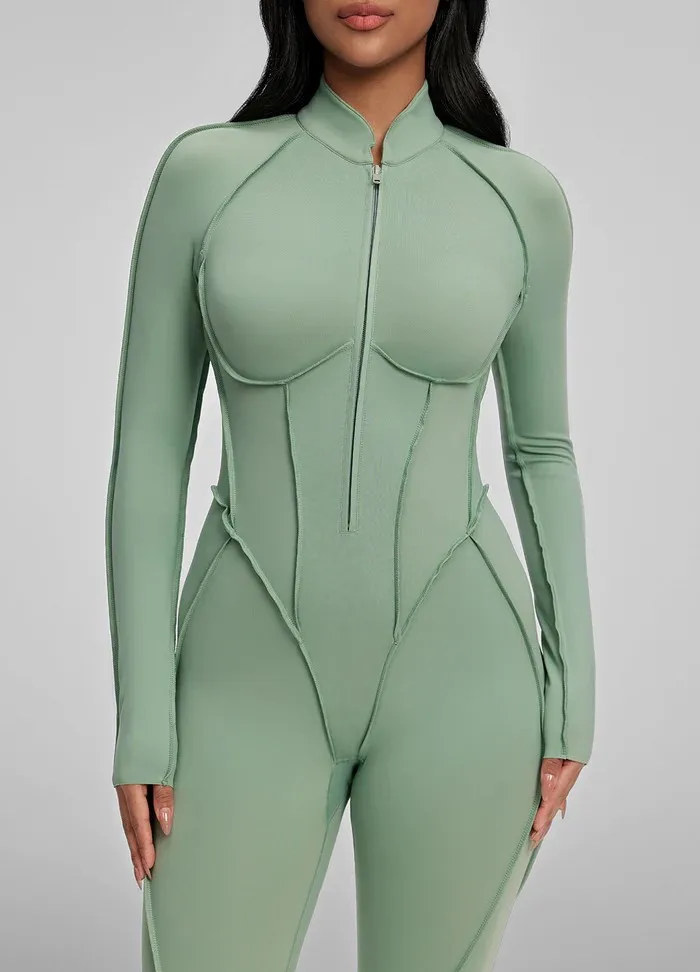 FUBEIKE Women's Yoga Set Fashion Sexy Slim Fit Long Sleeve Zipper Sports Gym Workout Legging Bodysuits Outdoor Activewear
