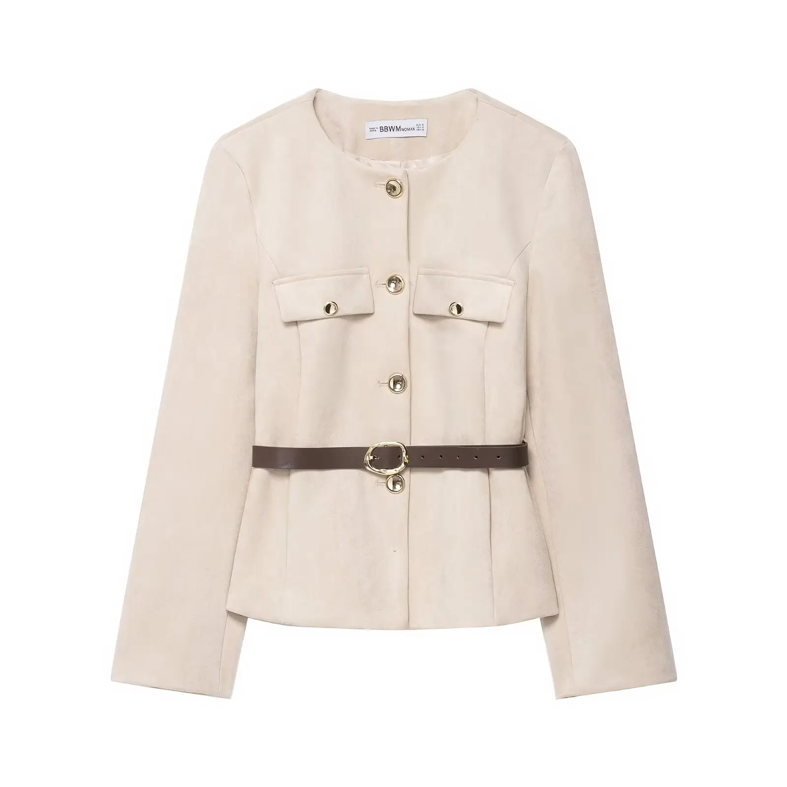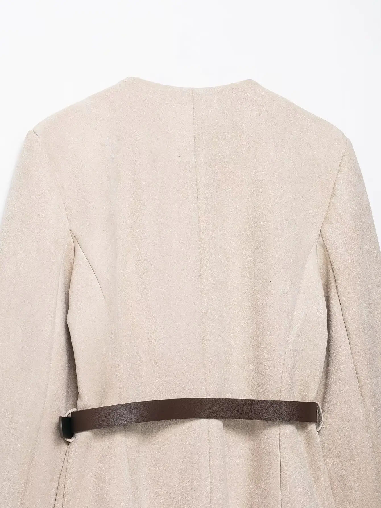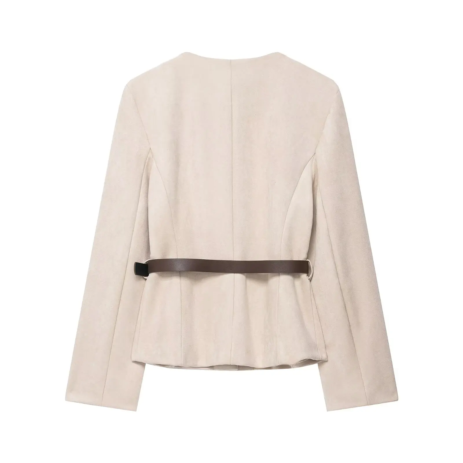 HH Women New Fashion Suede Blazer Coats O Neck Single Breasted Long Sleeve Belt Jacket Autumn Casual Female Y2K Streetwear