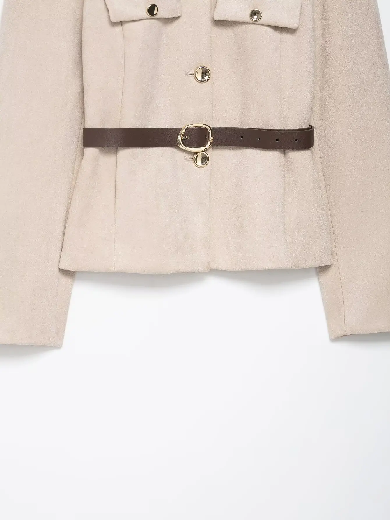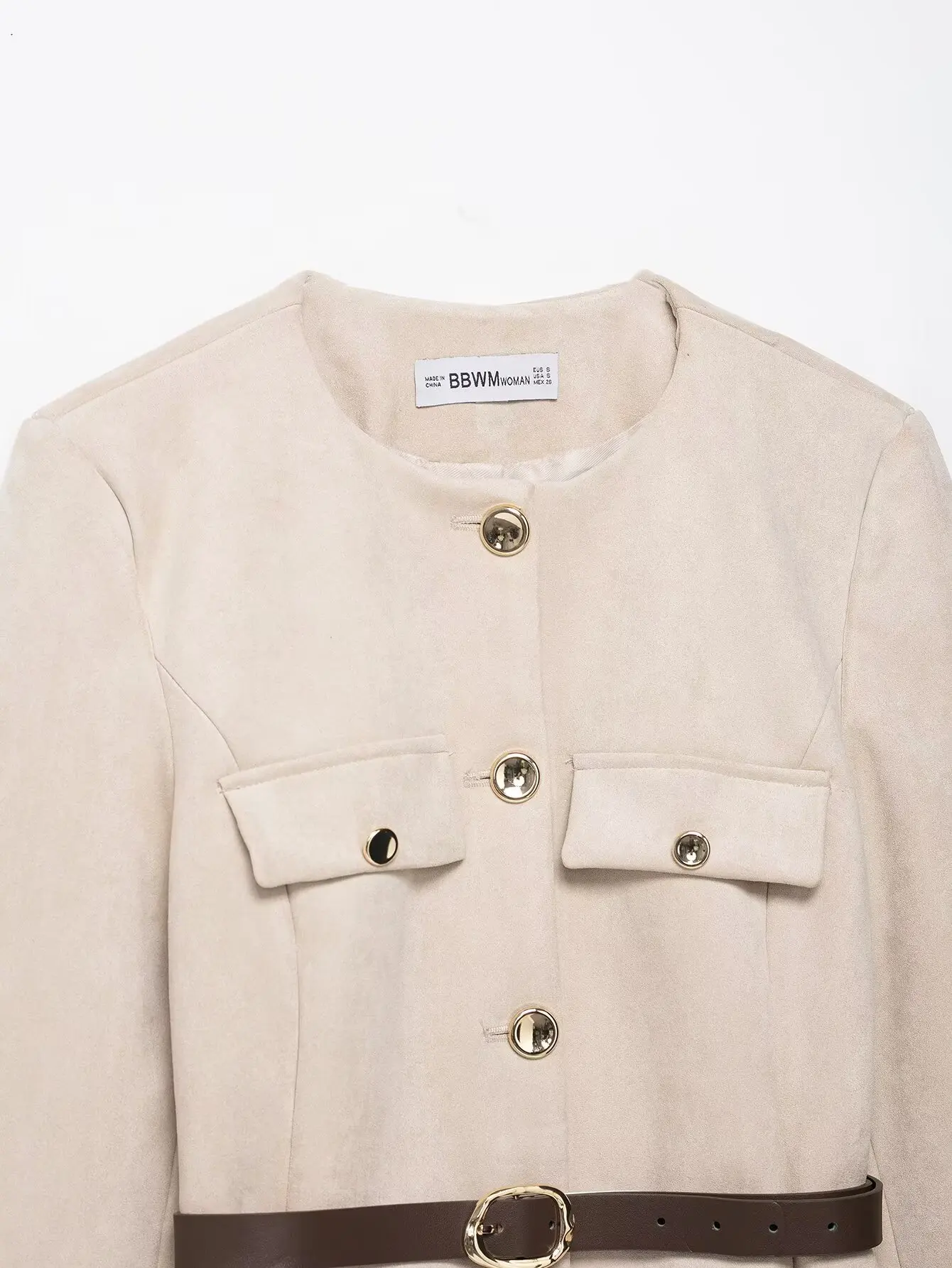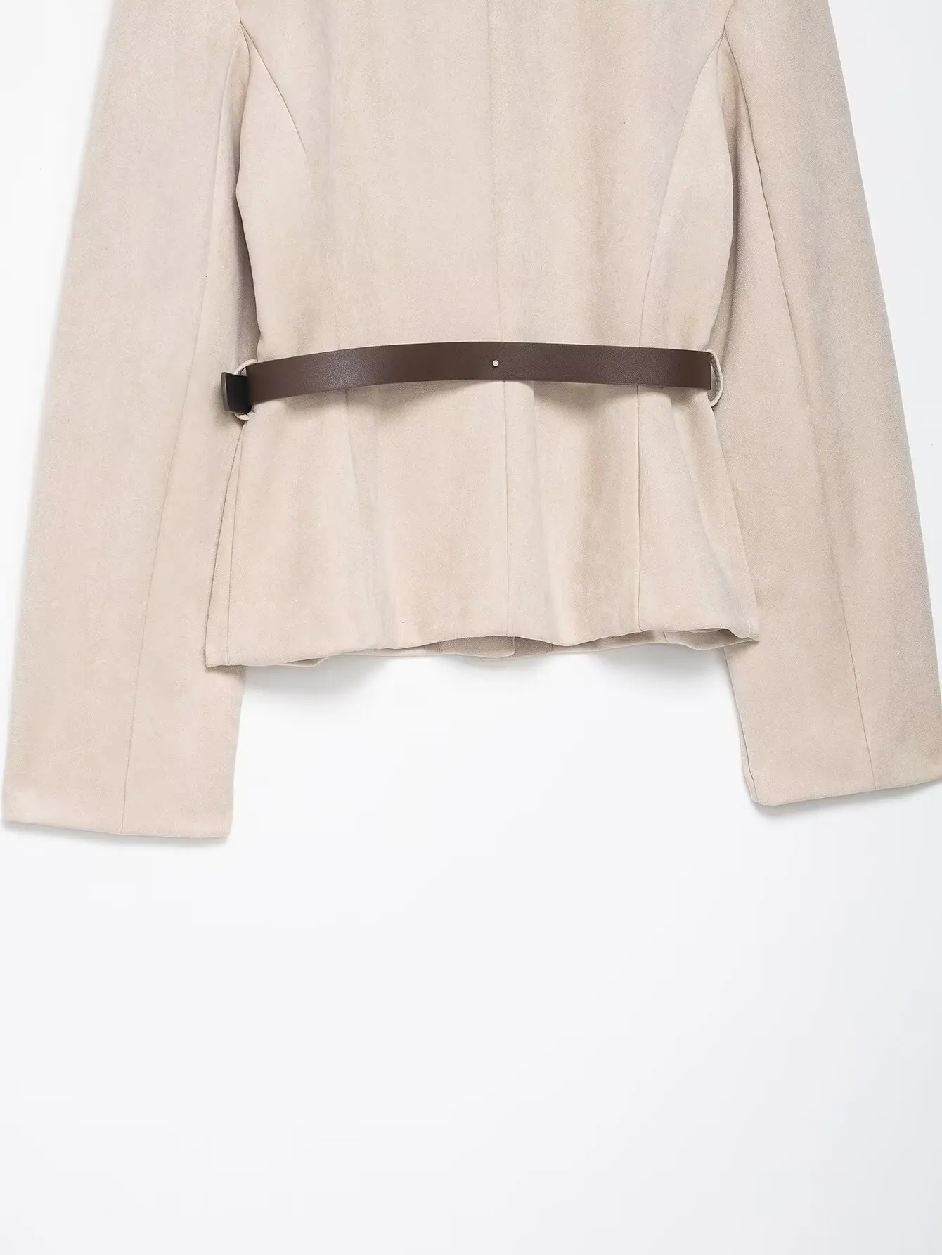 HH Women New Fashion Suede Blazer Coats O Neck Single Breasted Long Sleeve Belt Jacket Autumn Casual Female Y2K Streetwear
