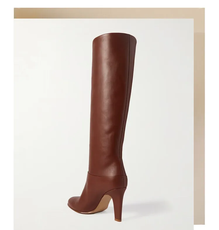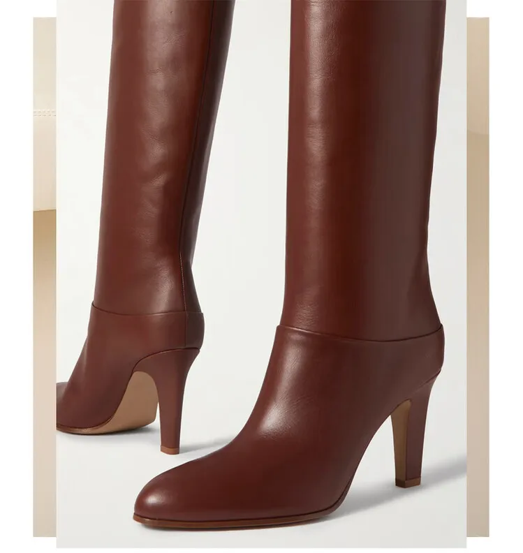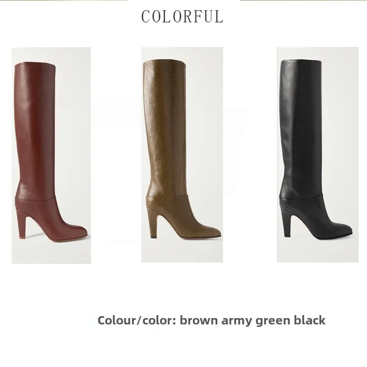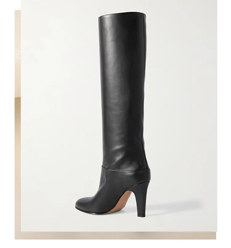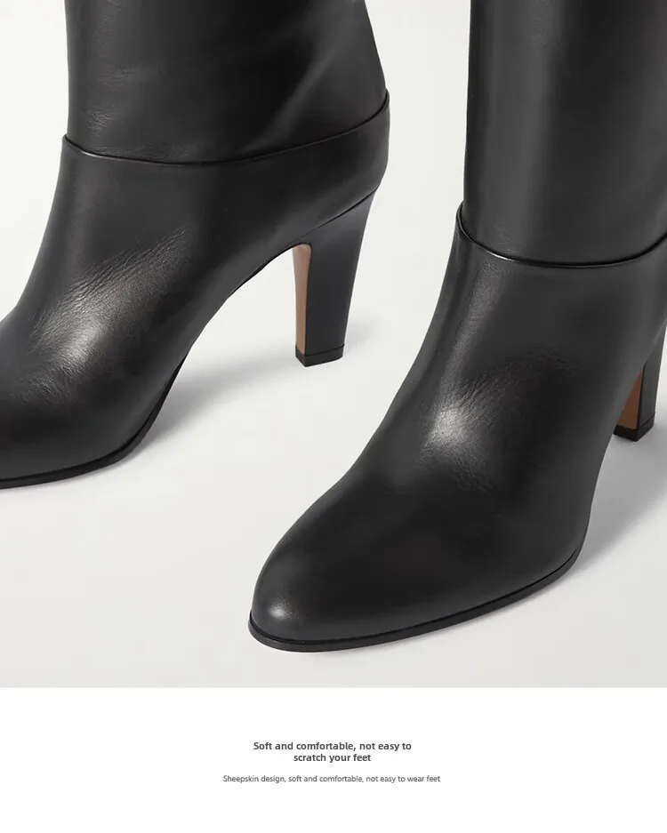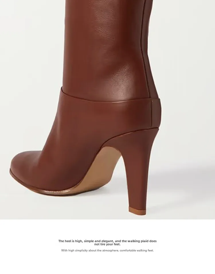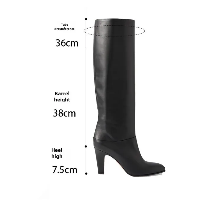 Ladies' Autumn and Winter Knee Length Boots, Round Toe Fashionable Leather Slim Fit High Heels, Size 34-46 Medium Length Boots
