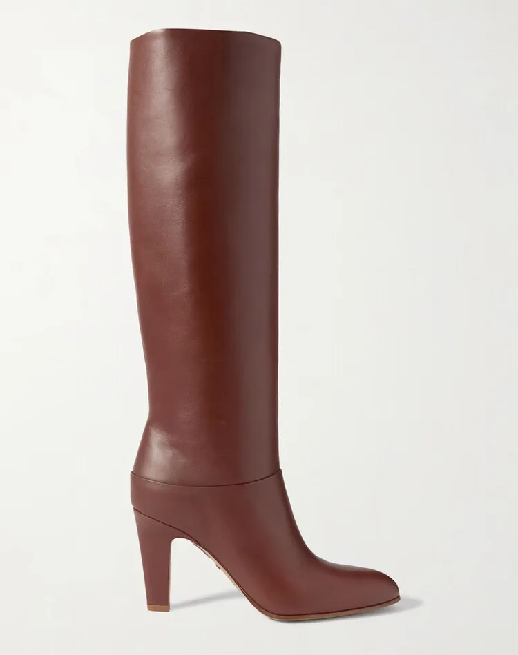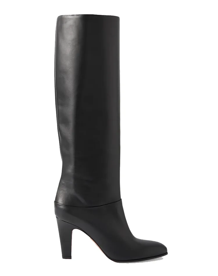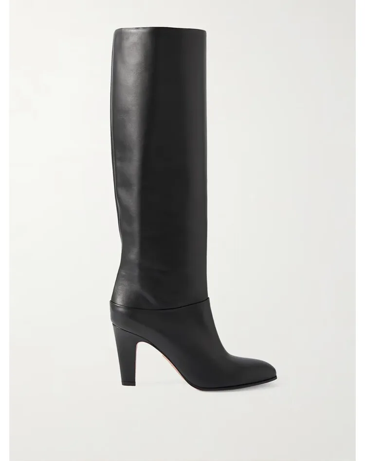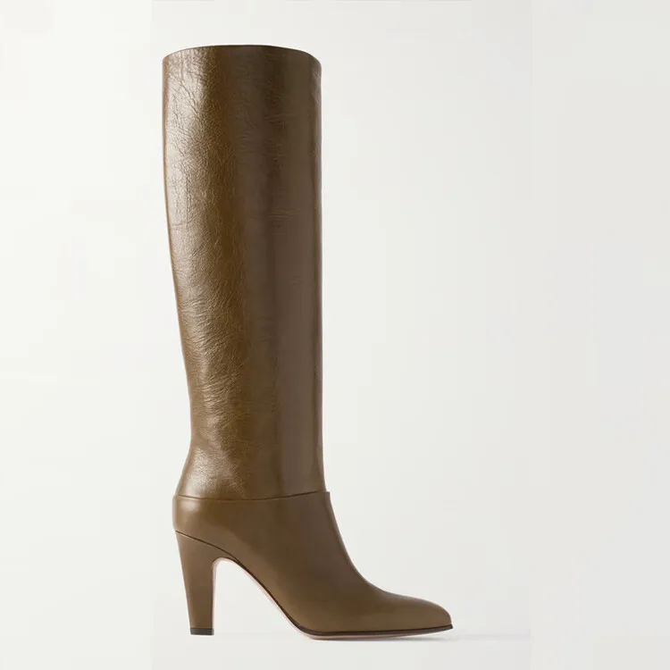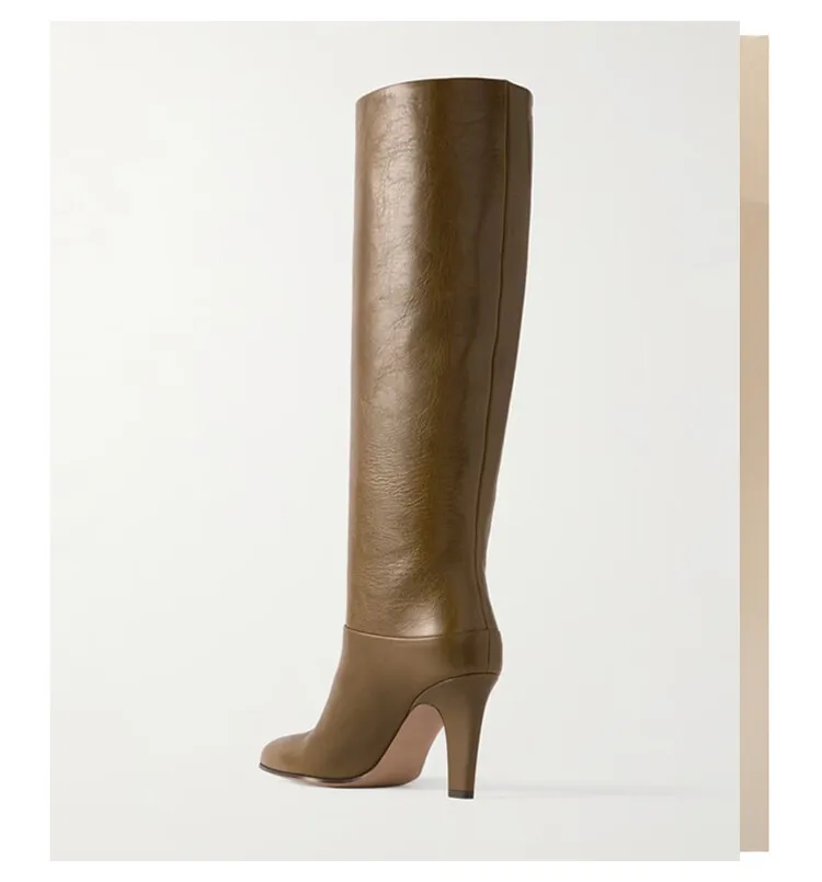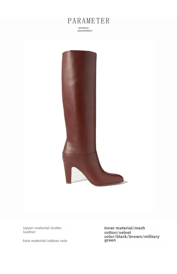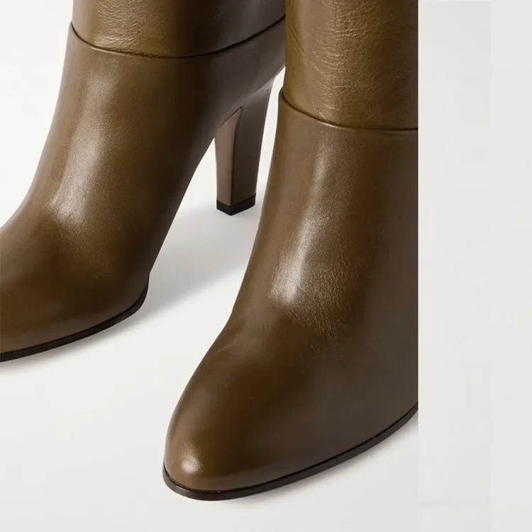 Ladies' Autumn and Winter Knee Length Boots, Round Toe Fashionable Leather Slim Fit High Heels, Size 34-46 Medium Length Boots