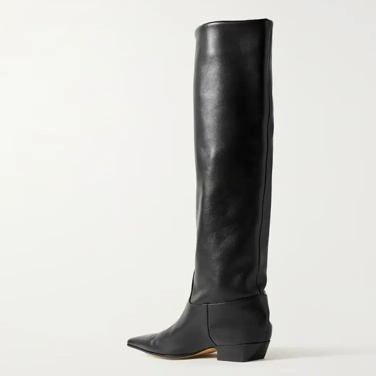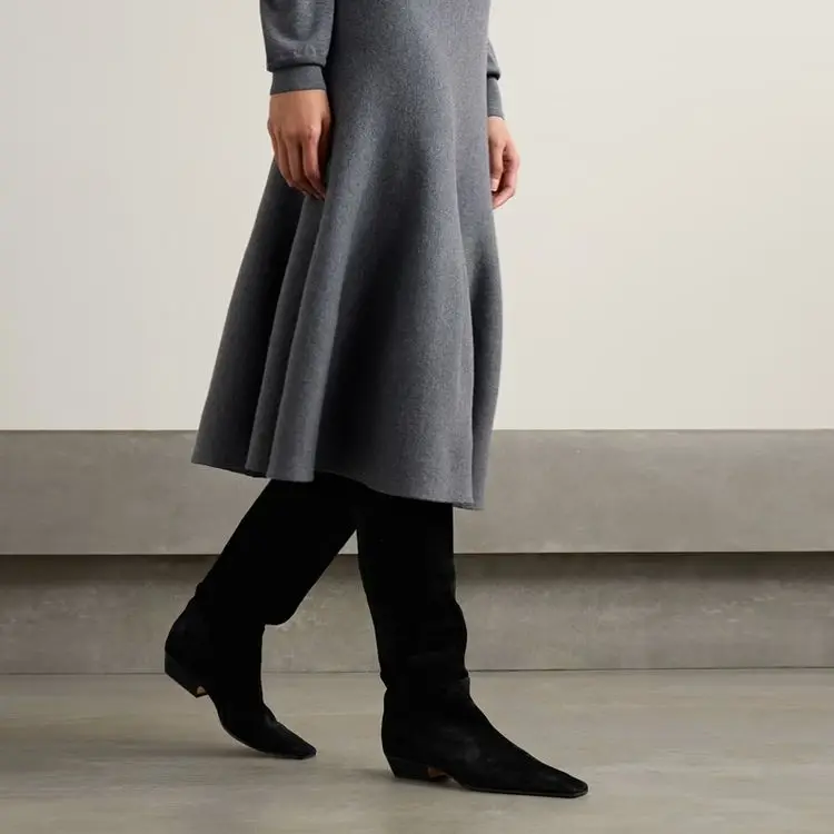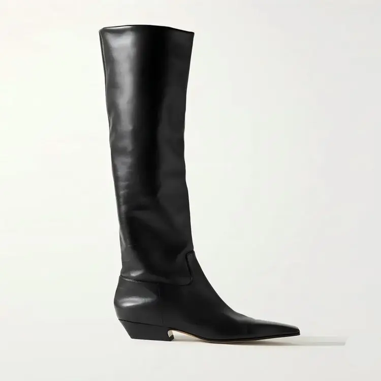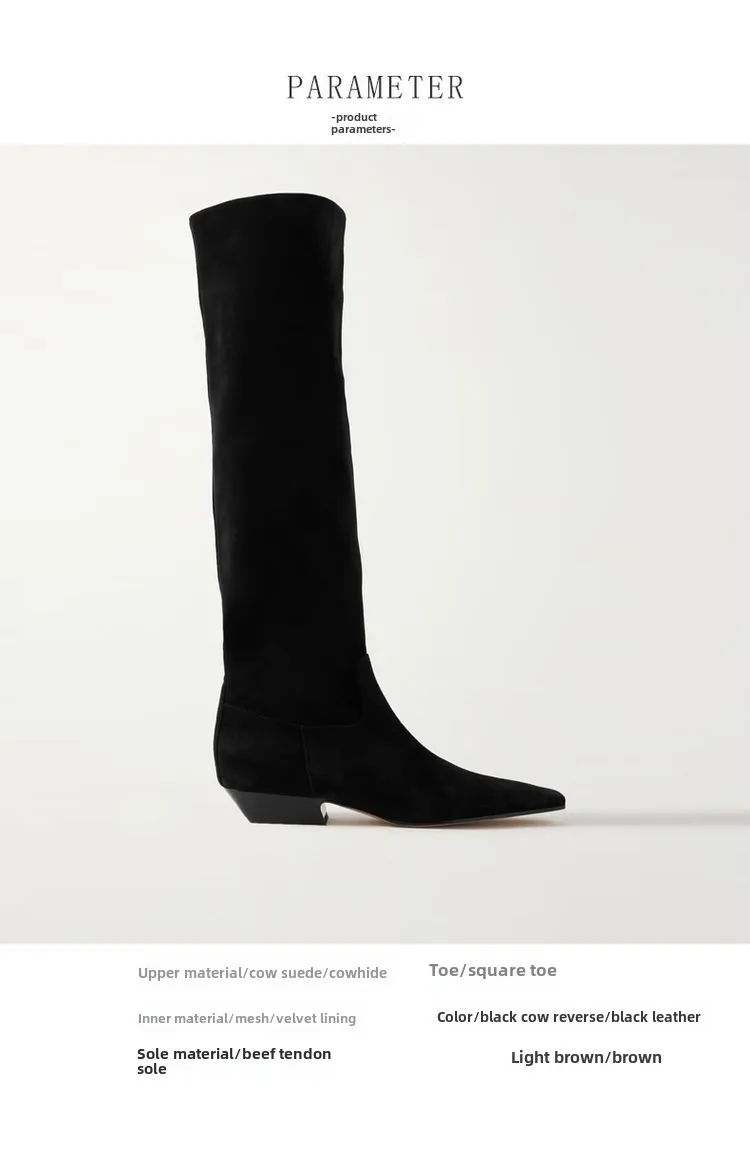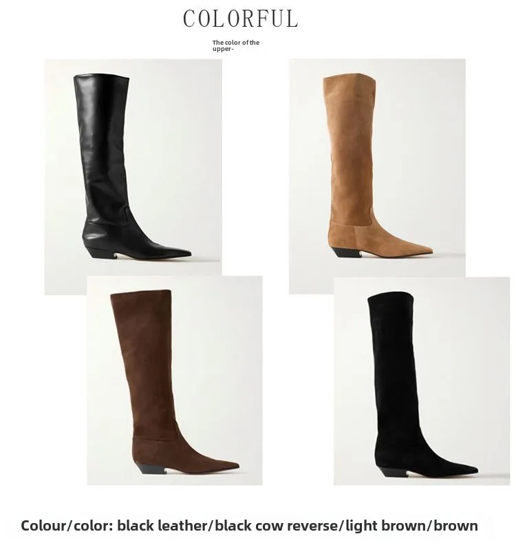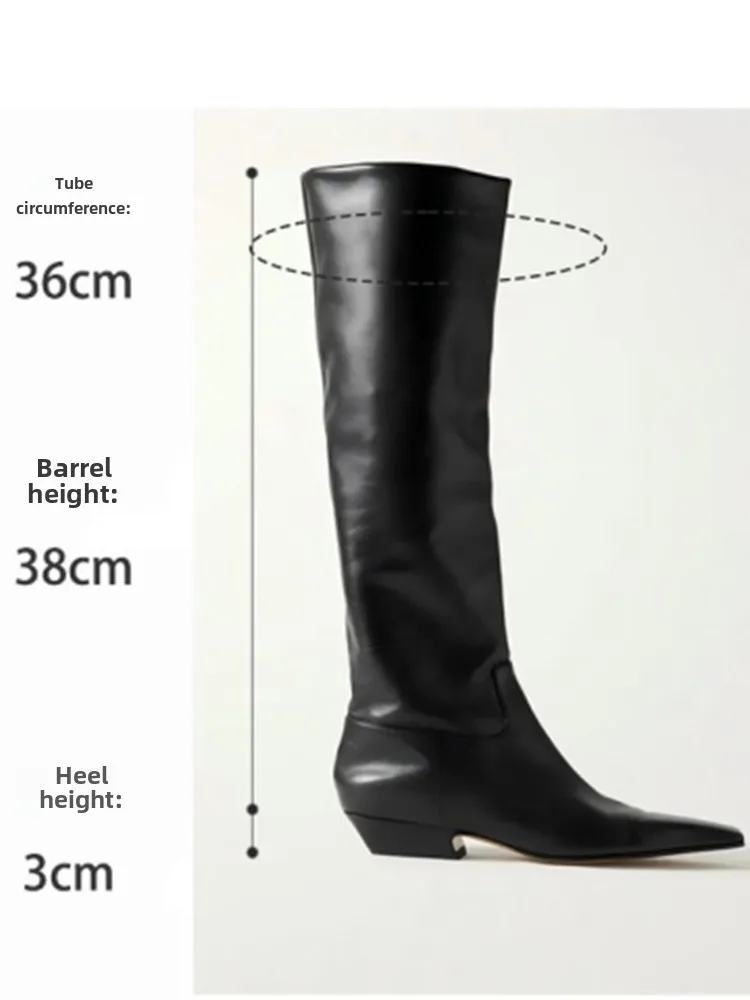 2026 Ladies' Low Heel Knee High Women's Boots Autumn and Winter Square Toe Leather Fashionable 34-46 Large Mid Length Boots