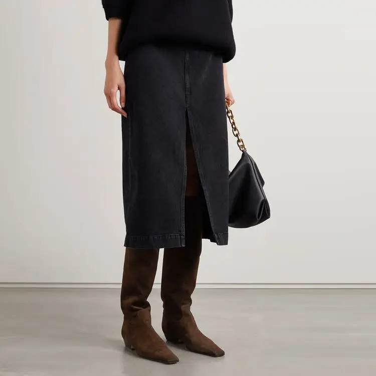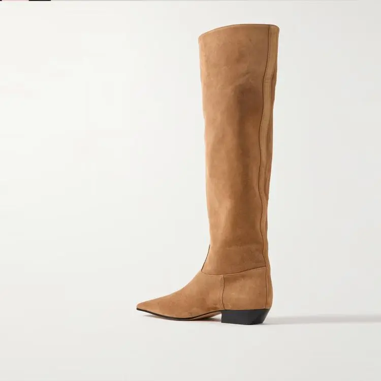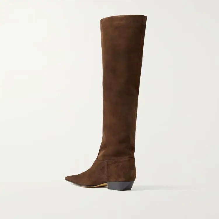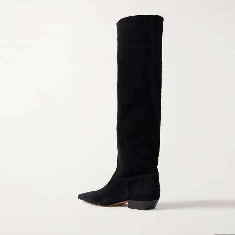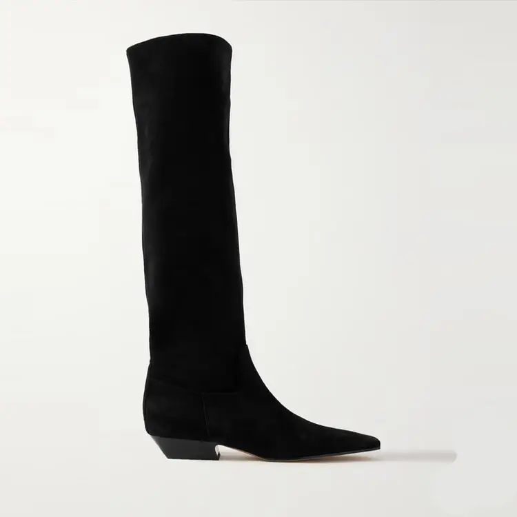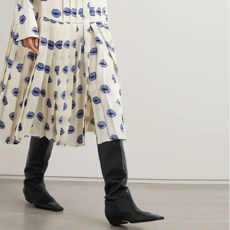 2026 Ladies' Low Heel Knee High Women's Boots Autumn and Winter Square Toe Leather Fashionable 34-46 Large Mid Length Boots