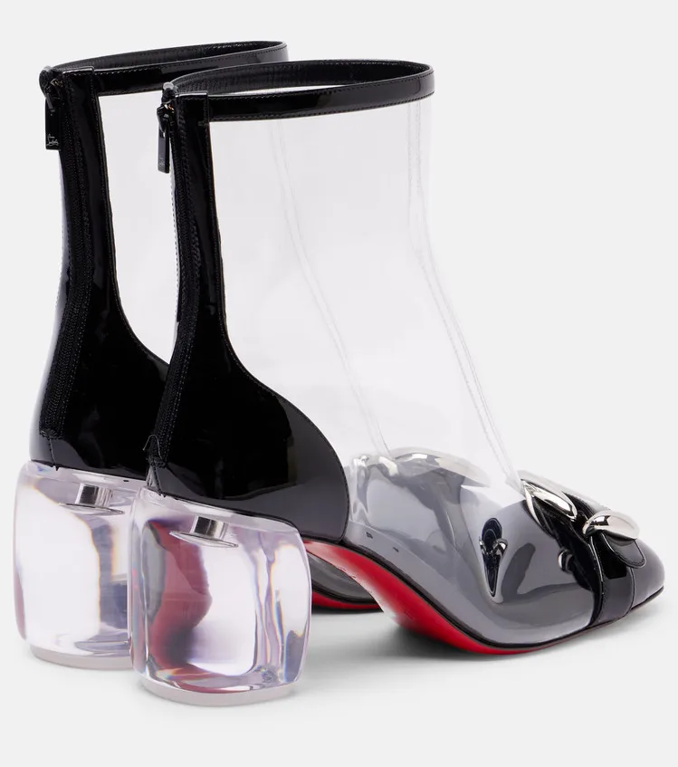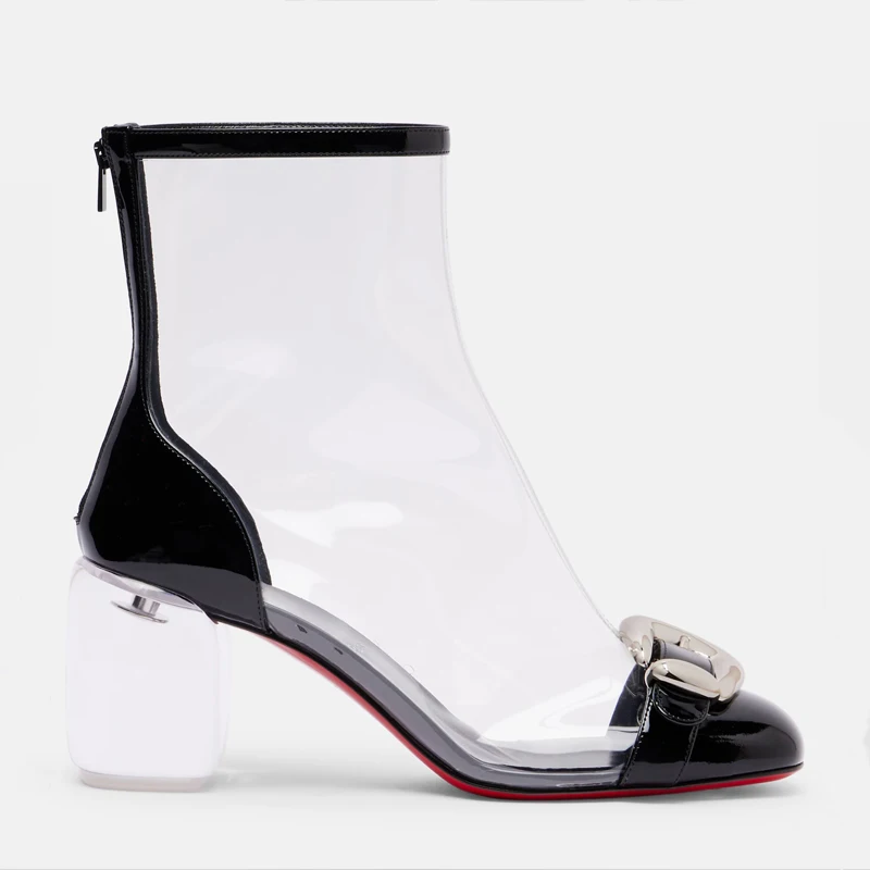 Ladies' Spring and Summer Transparent Thick High-heeled Short Boots with Round Toe and Back Zipper Sexy 34-46 Large Cool Boots