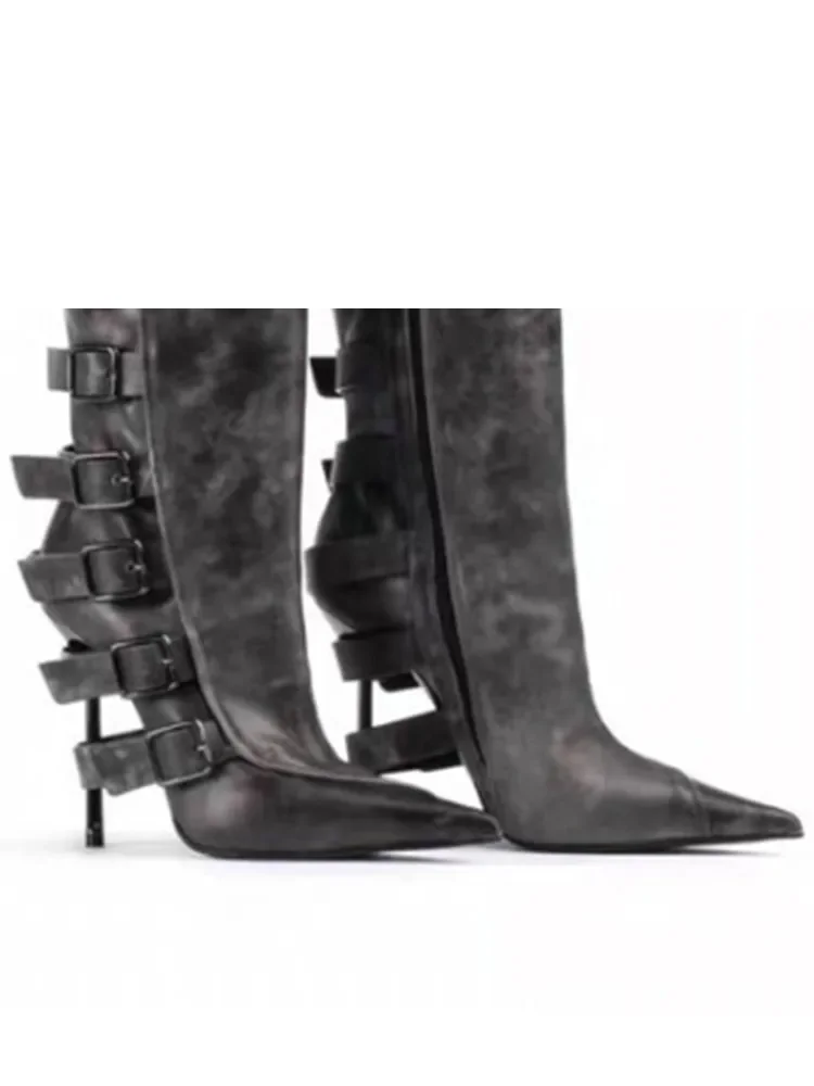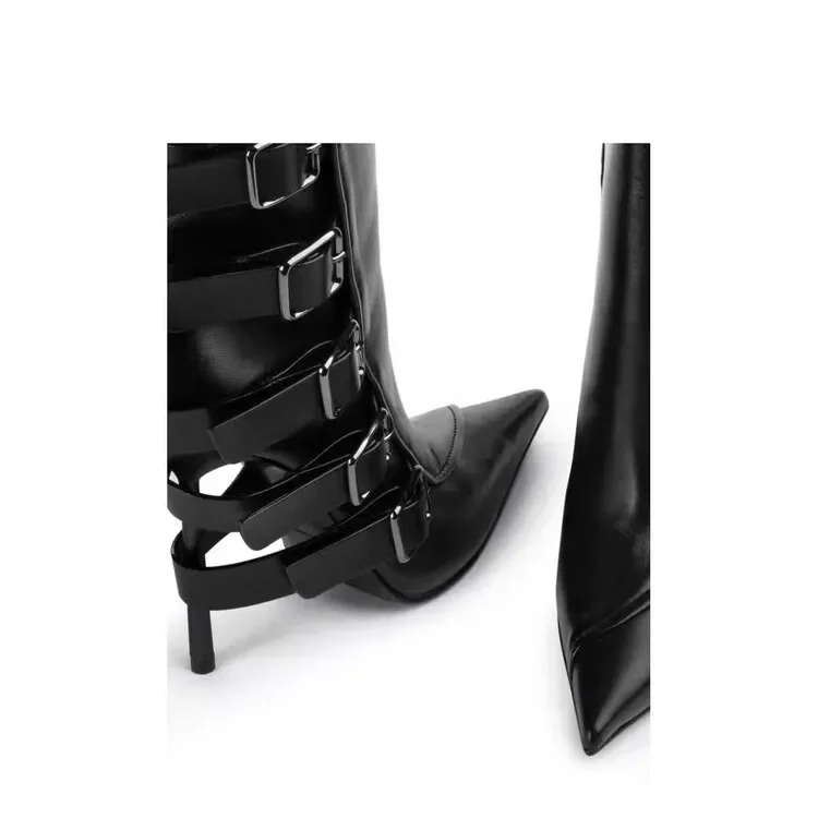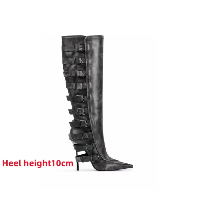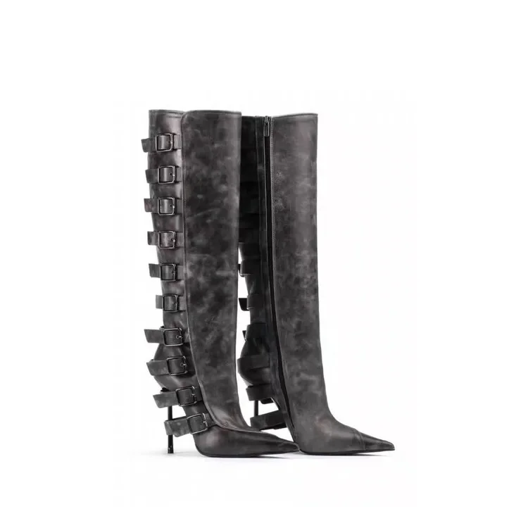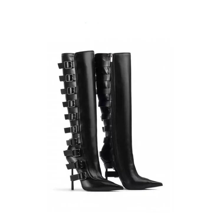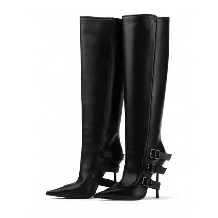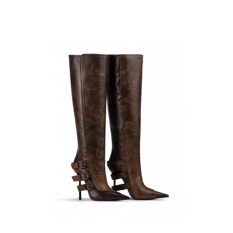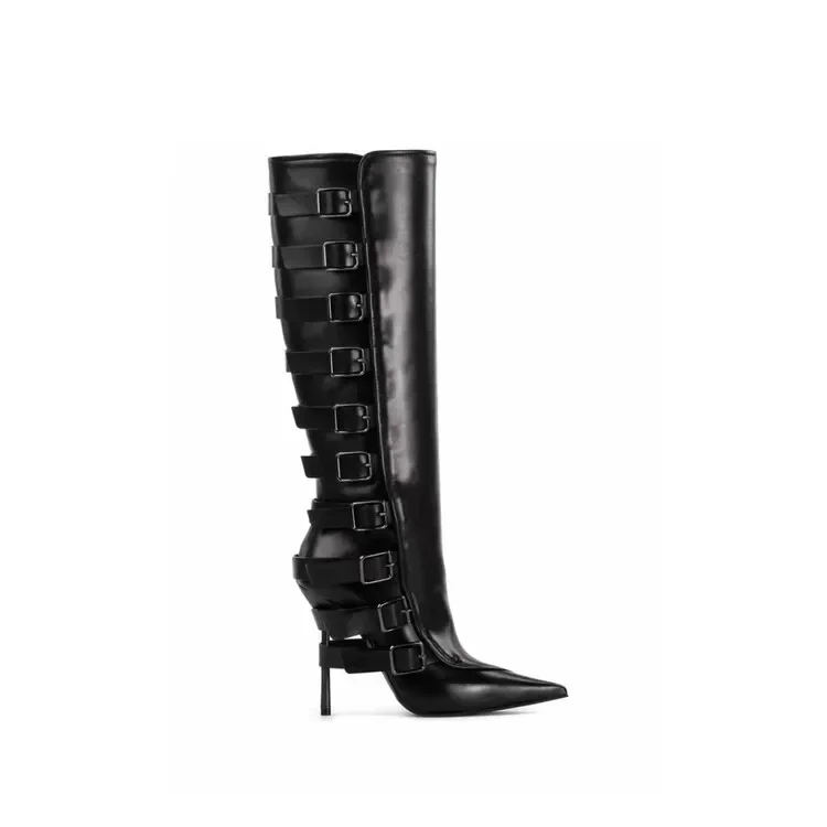 2026 New Belt Buckle Stiletto High Heels Knee Length Boots Autumn/Winter Women's Fashion Pointed Party 34-46 Large Medium Boots