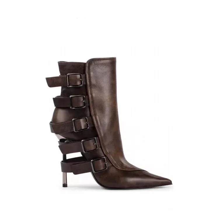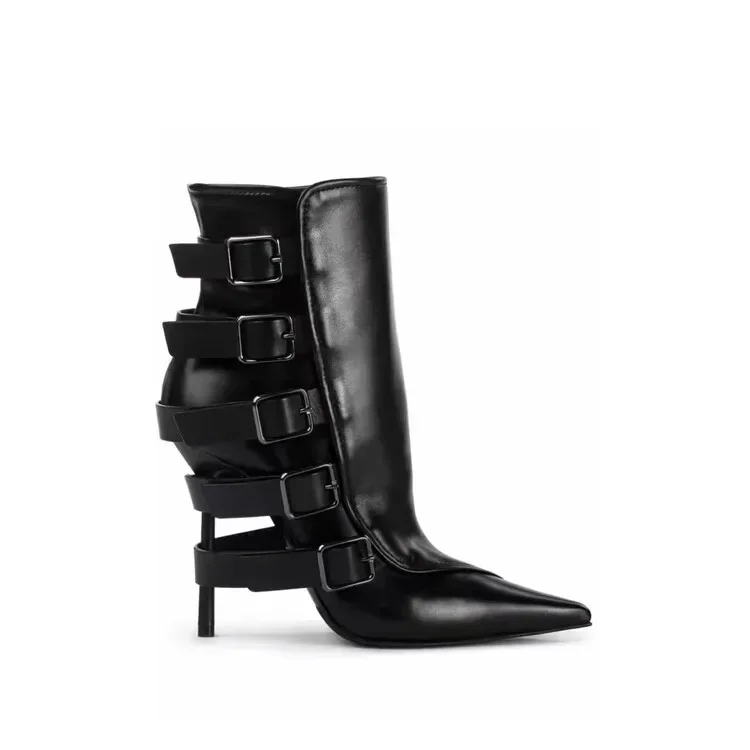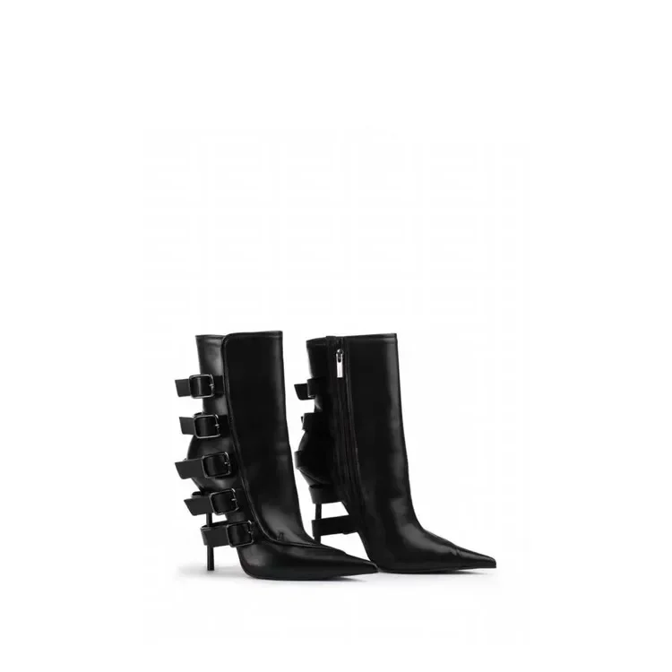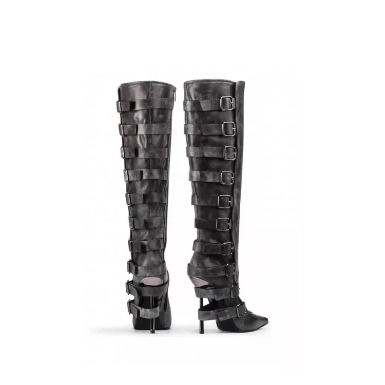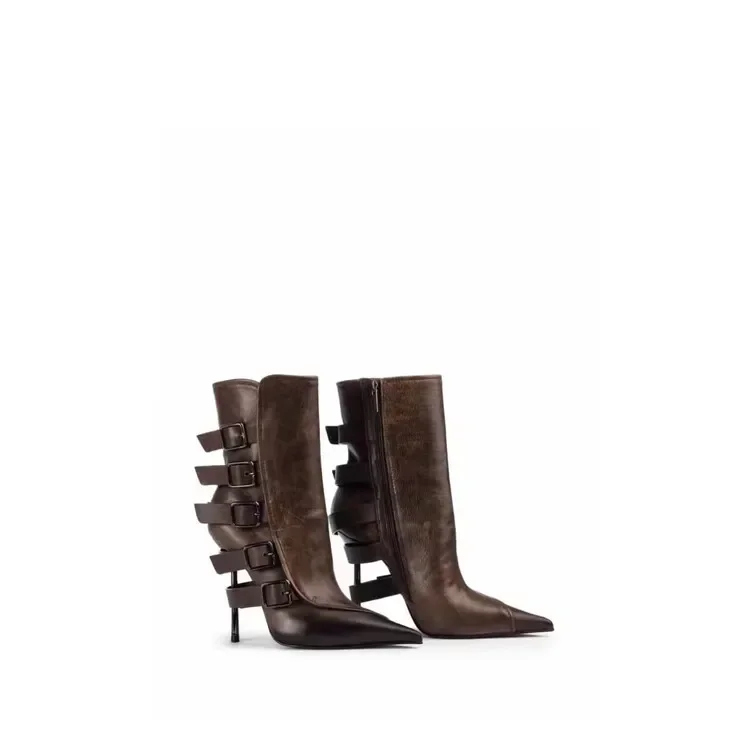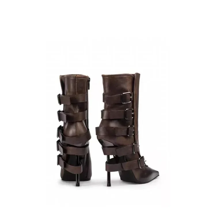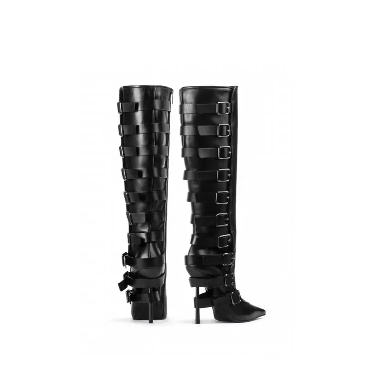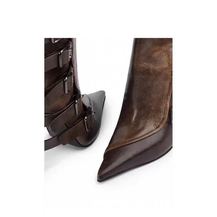 2026 New Belt Buckle Stiletto High Heels Knee Length Boots Autumn/Winter Women's Fashion Pointed Party 34-46 Large Medium Boots