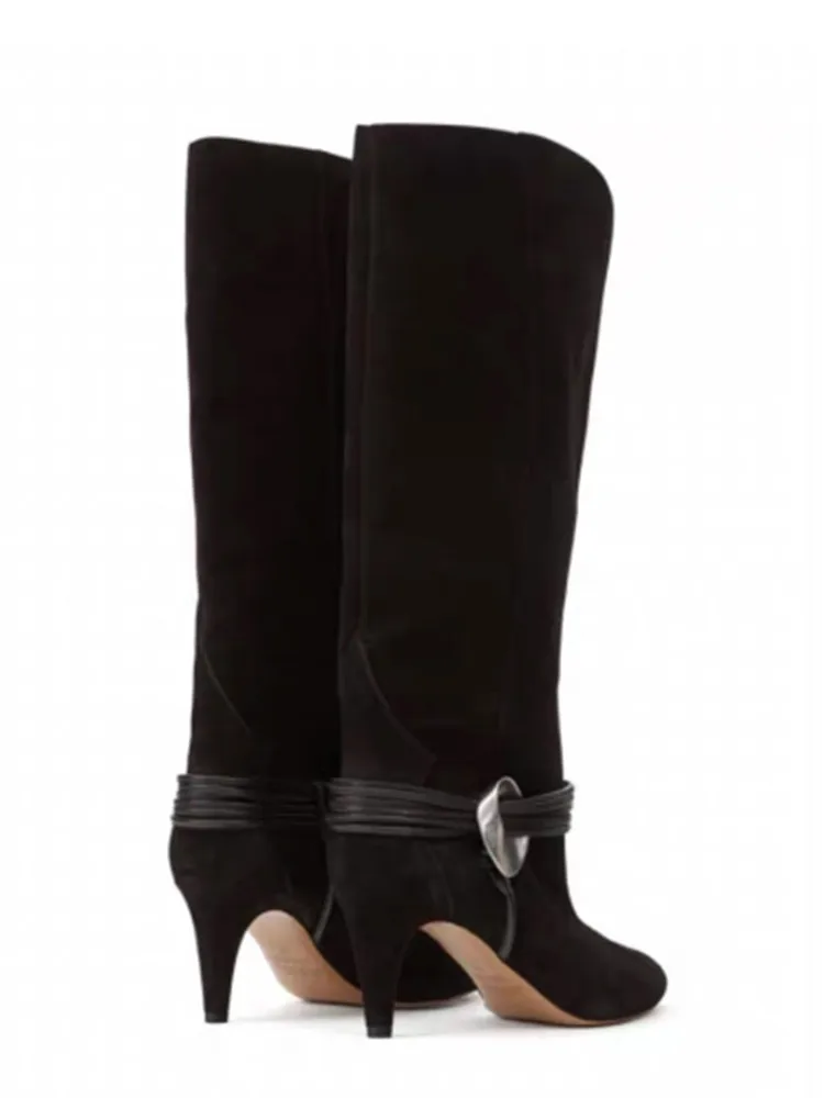 New Round Toe Slim Fit High Heels Knee High Women's Boots Autumn and Winter Fashion Mid Length Boots Women's Short Boots