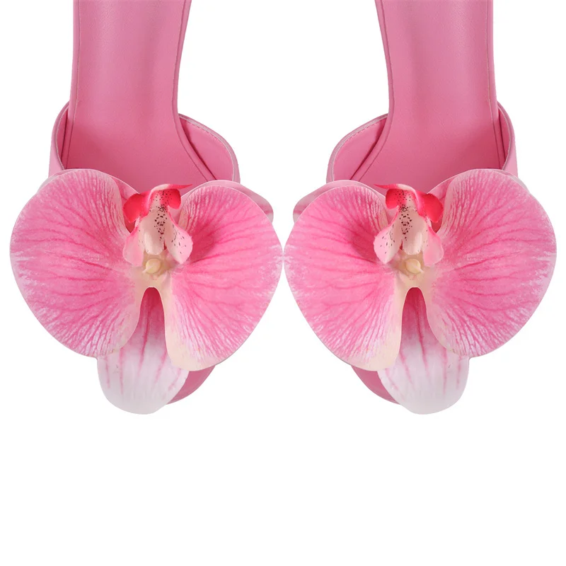 Women Flower Open Toe Pink Platform High Heeled Big Size Women Lace Up Stiletto Sexy Summer Sandals